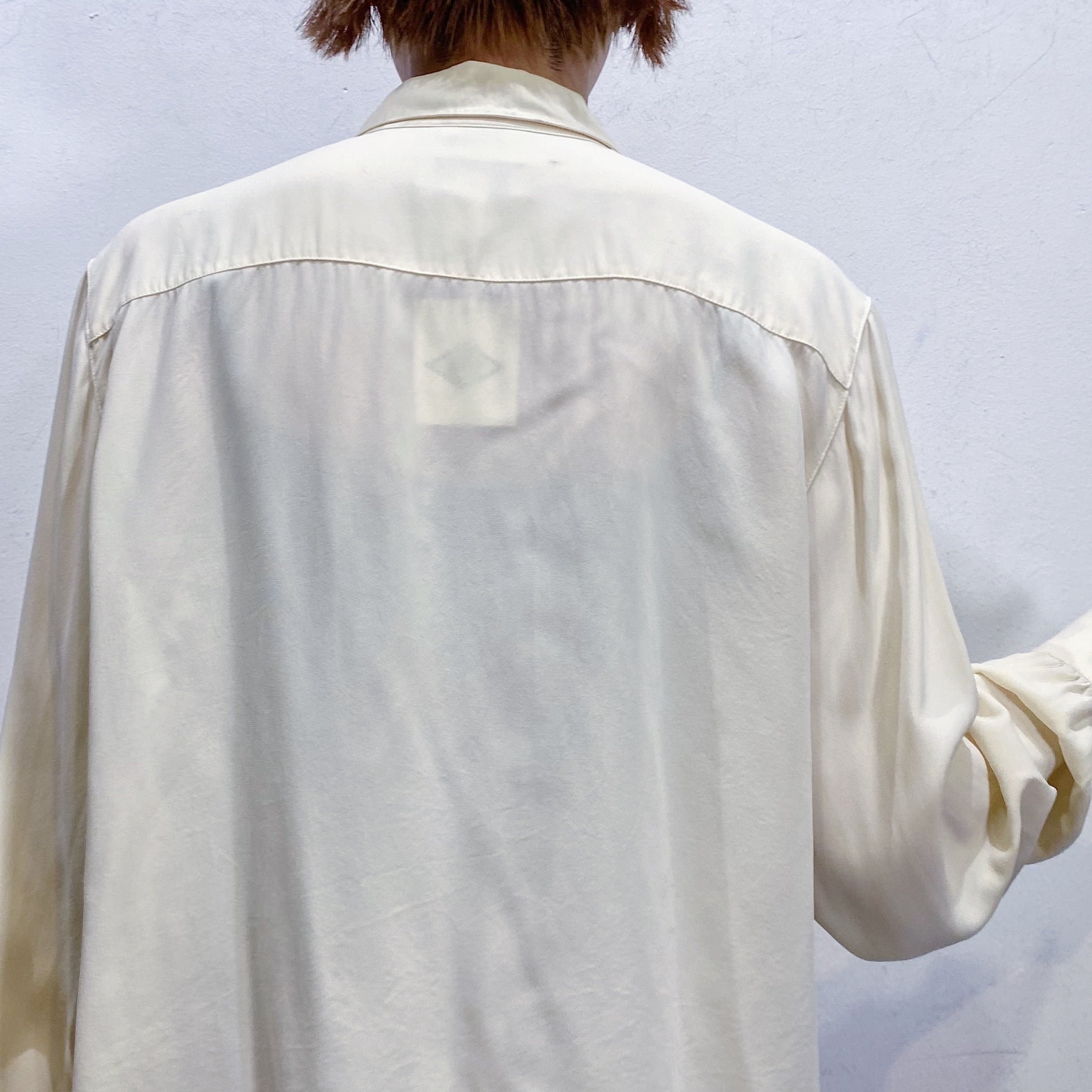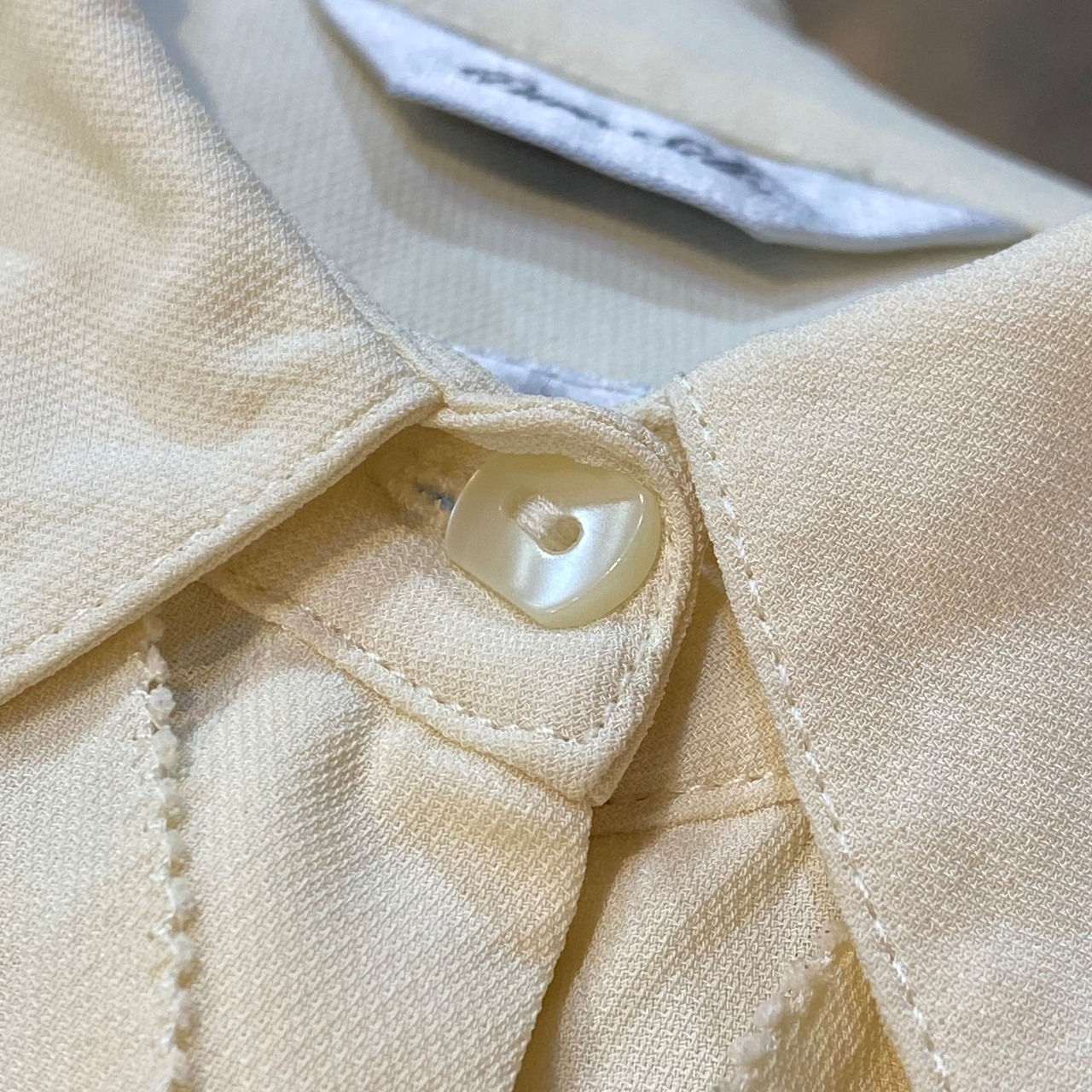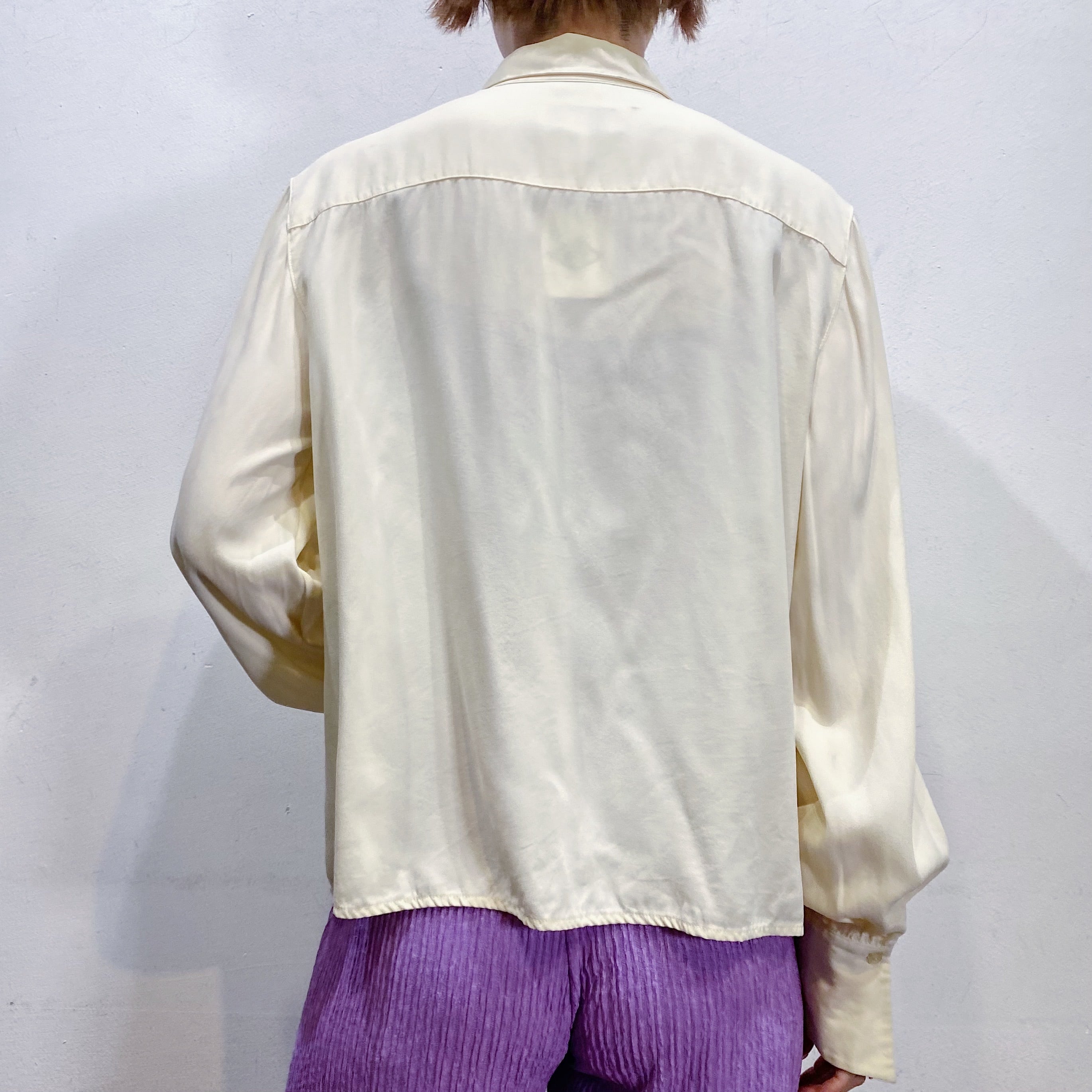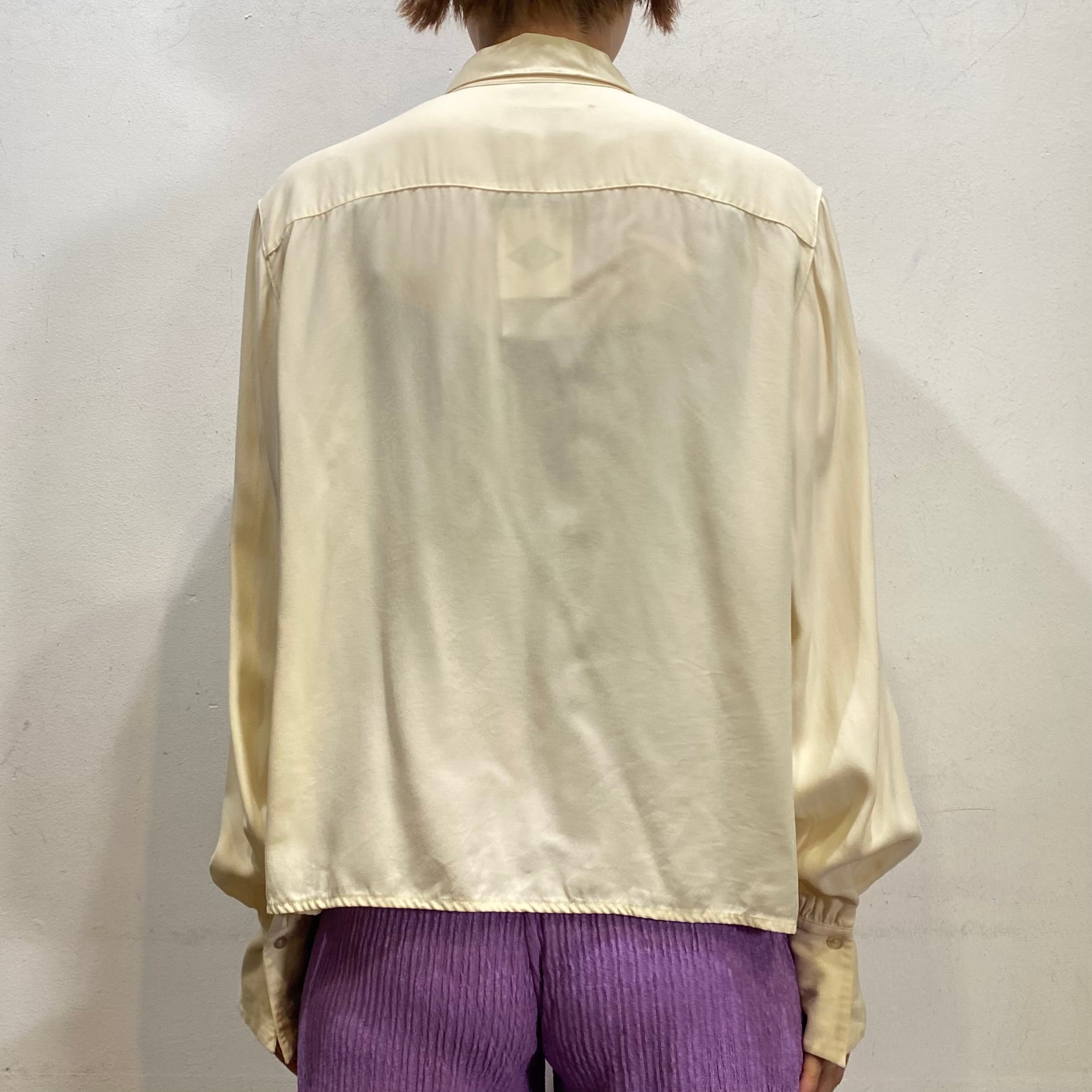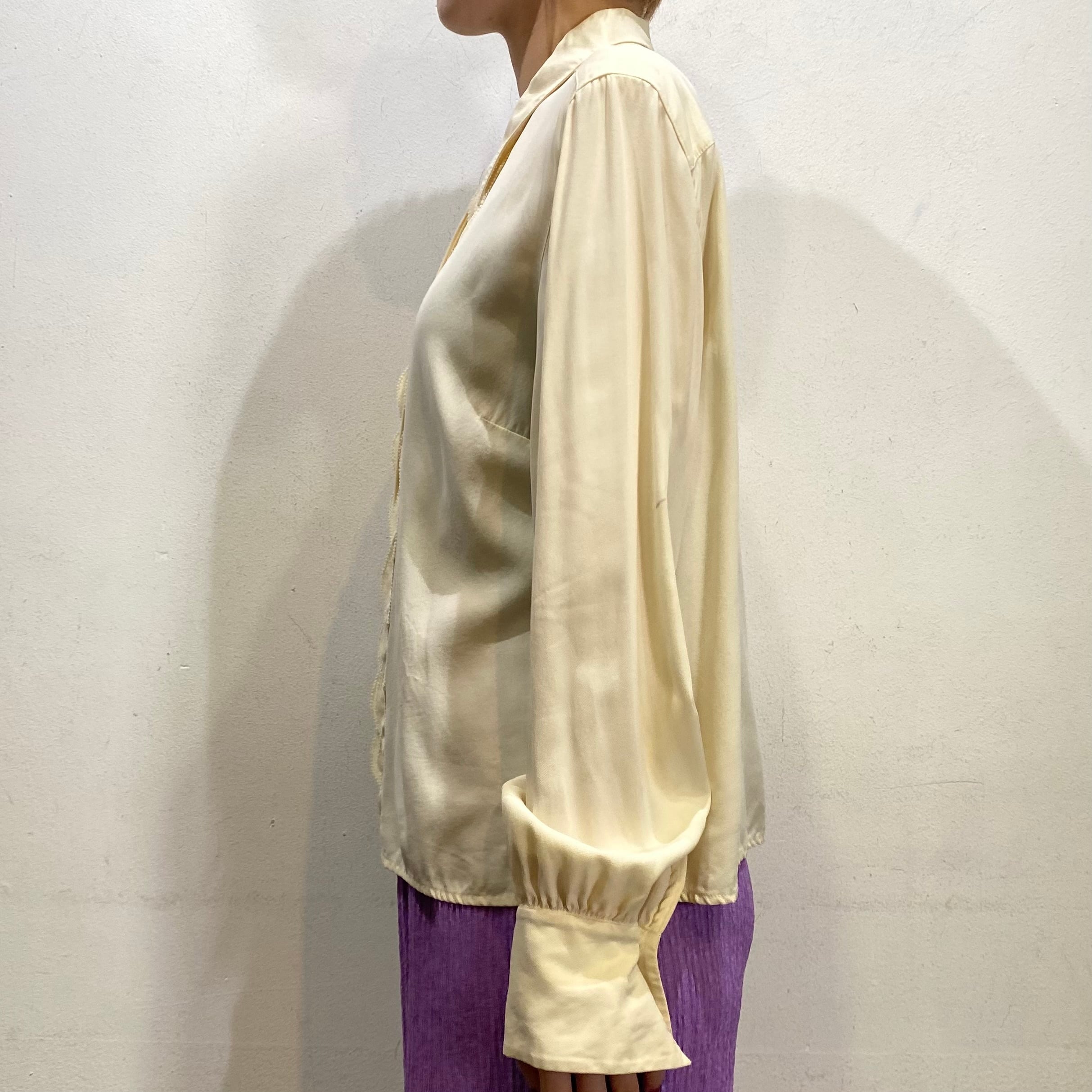 フロントのフリルデザインが可愛い、シルクシャツです。