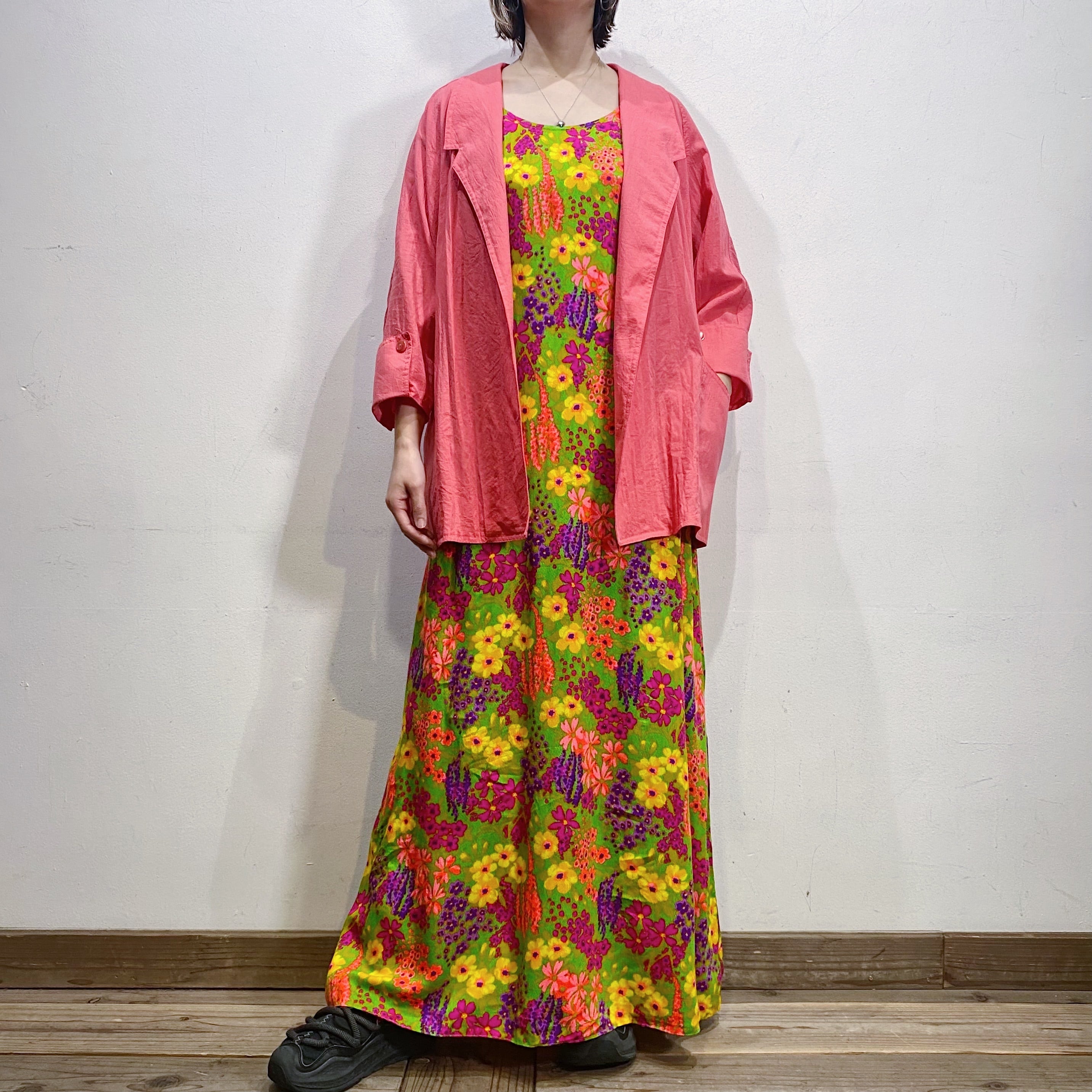 着用写真のように柄ワンピースなどの上から羽織っても、パンツやスカートと合わせても良いですね。