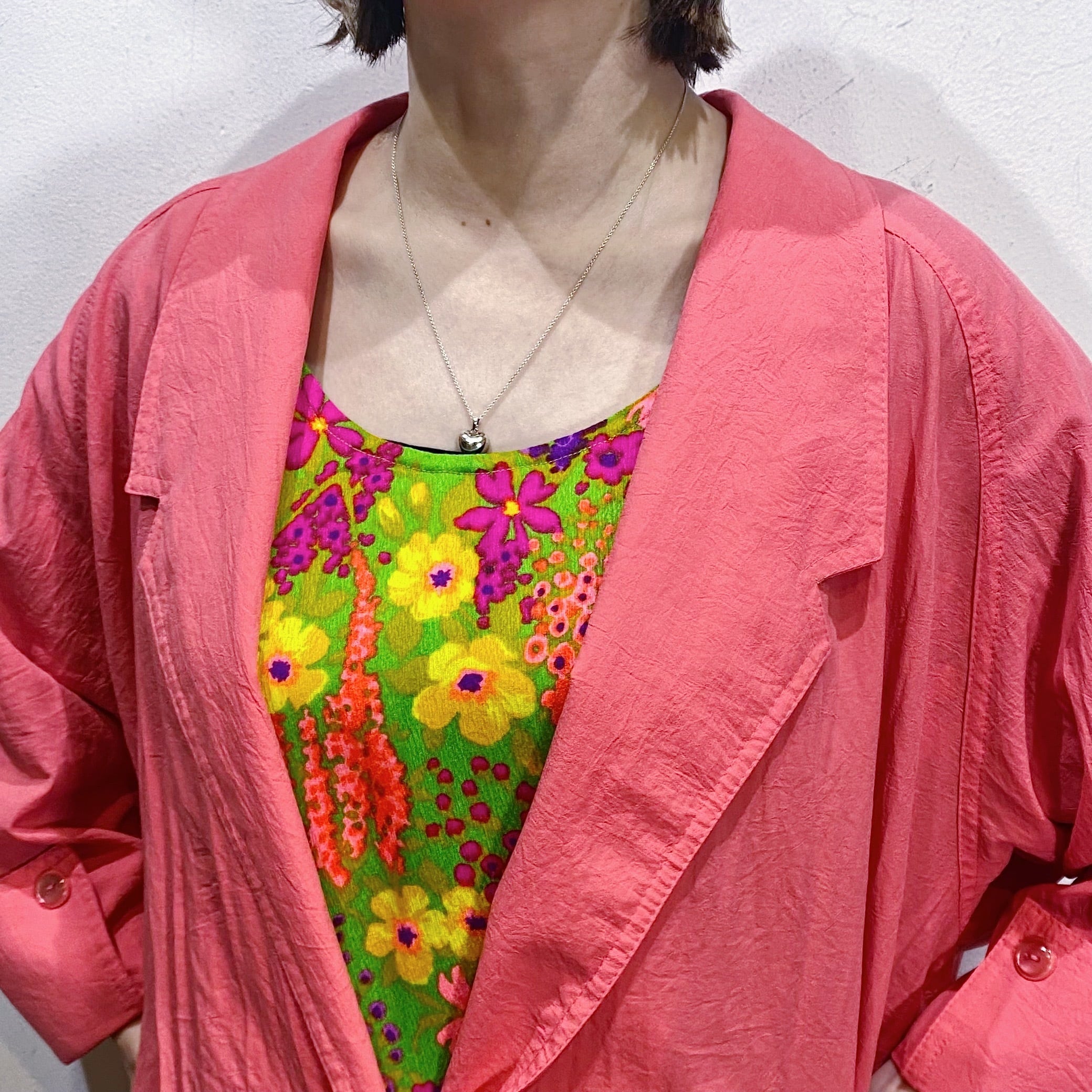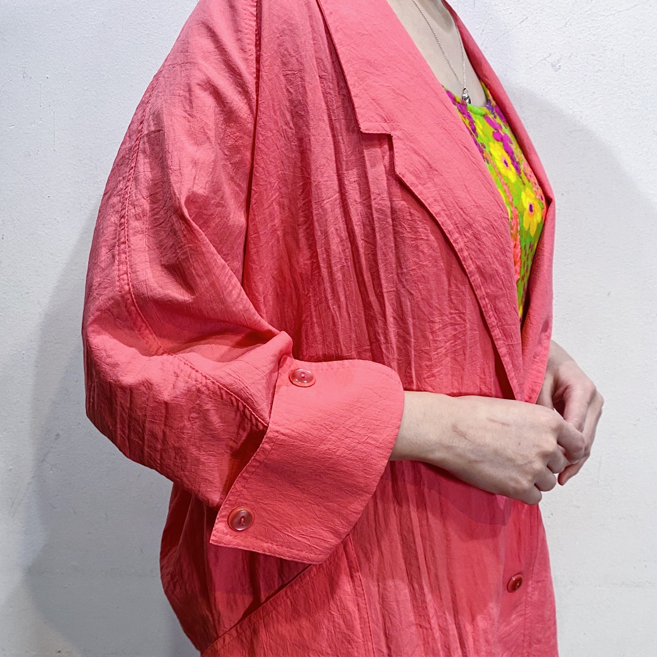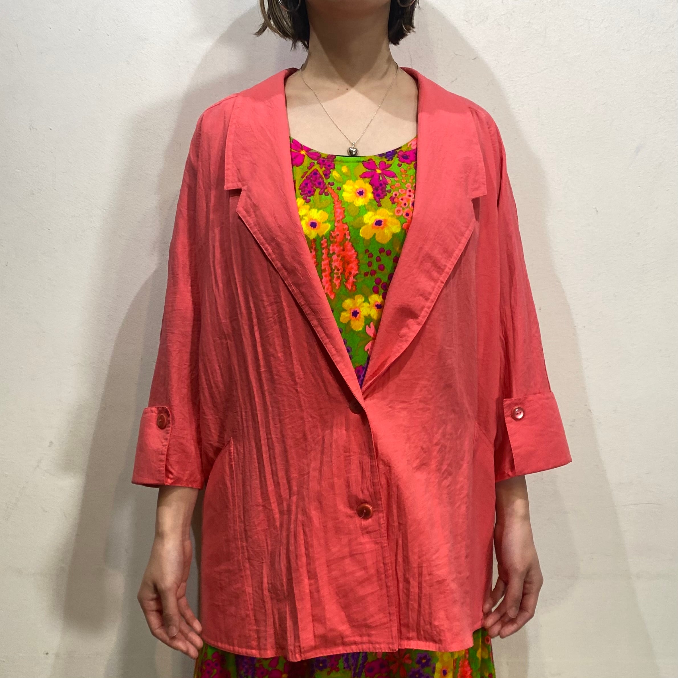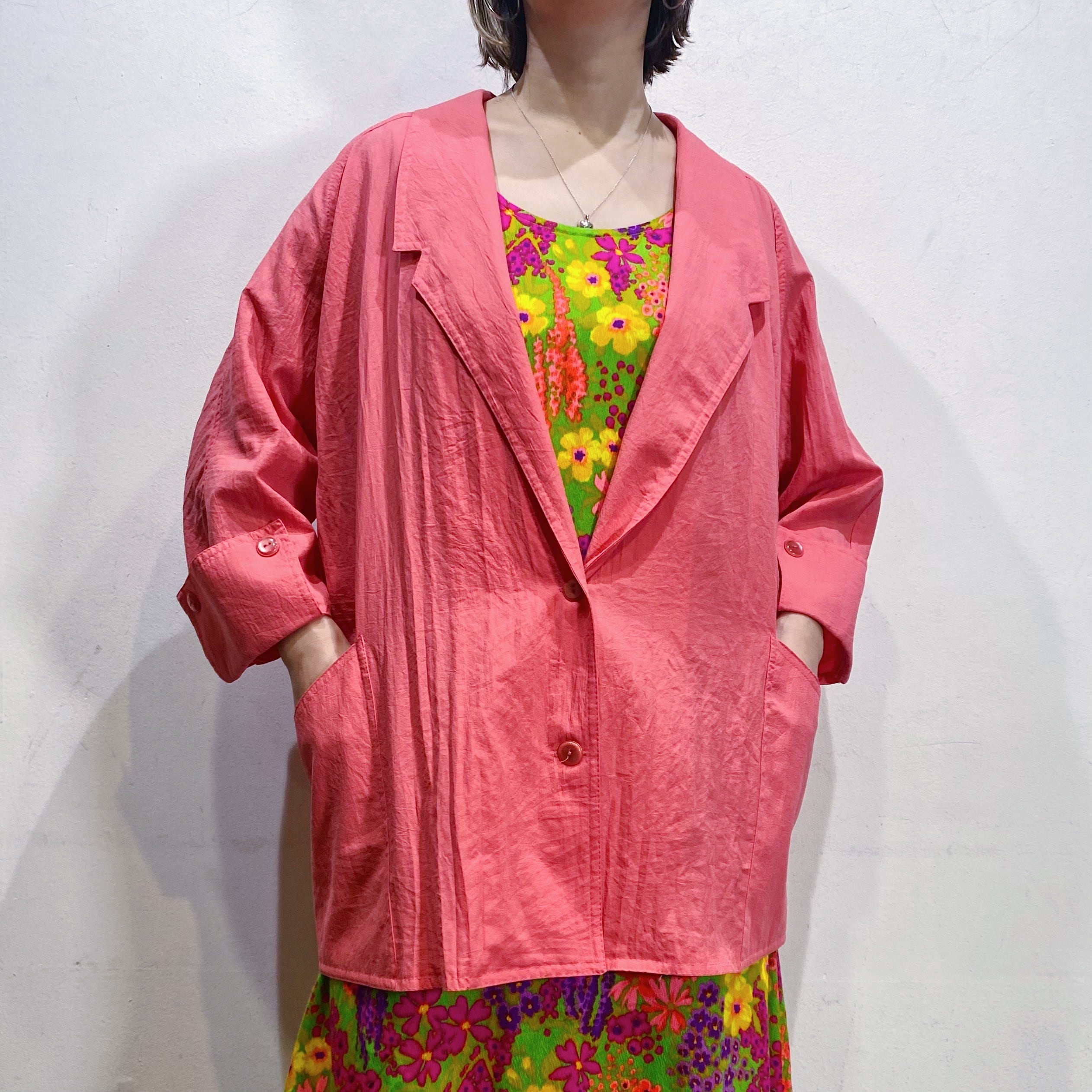 鮮やかなピンクがコーディネートをパッと明るくする、80年代のジャケットです。