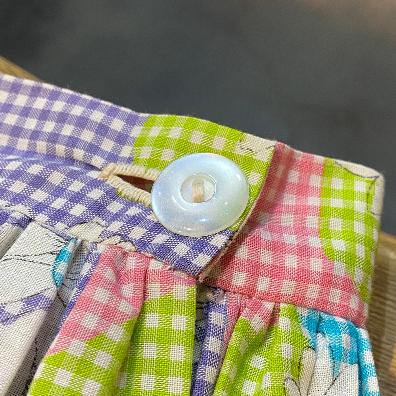デイジー×ギンガムチェックというとっておきにキュートな組み合わせのテキスタイルとなっております。