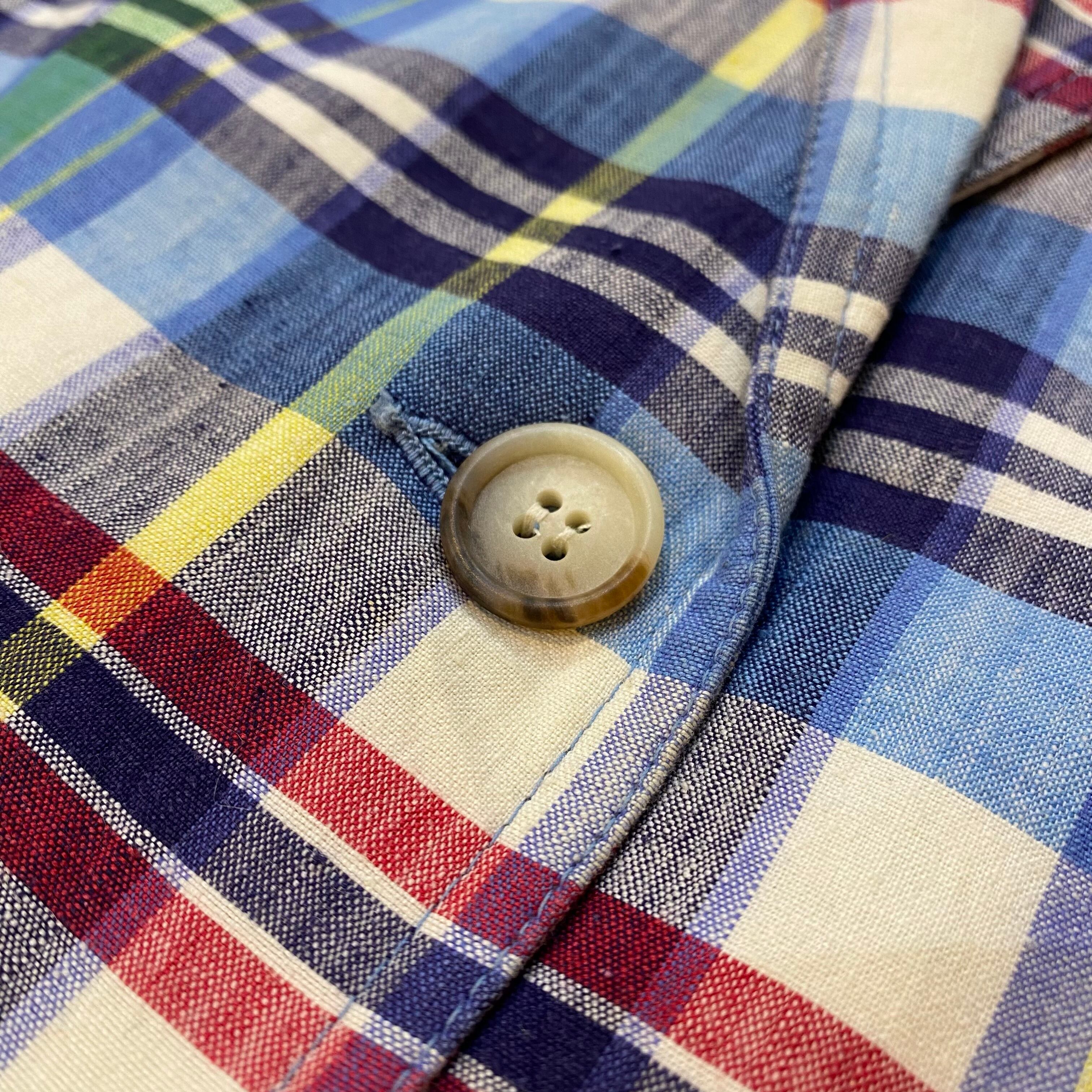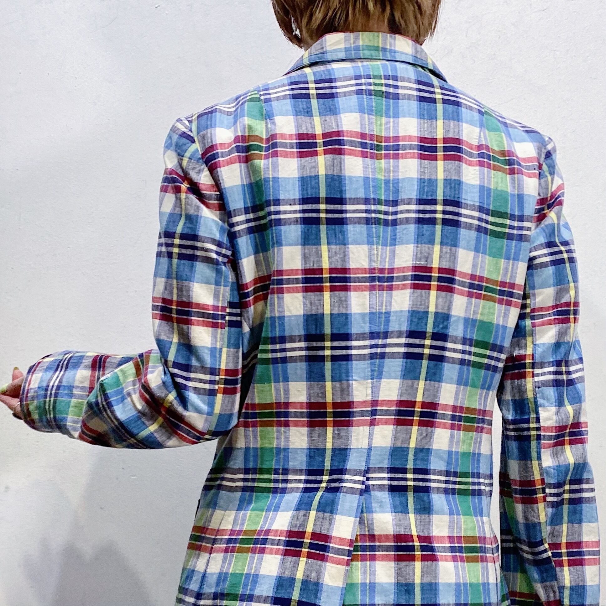 70s cotton red and blue plaid jacket【733】