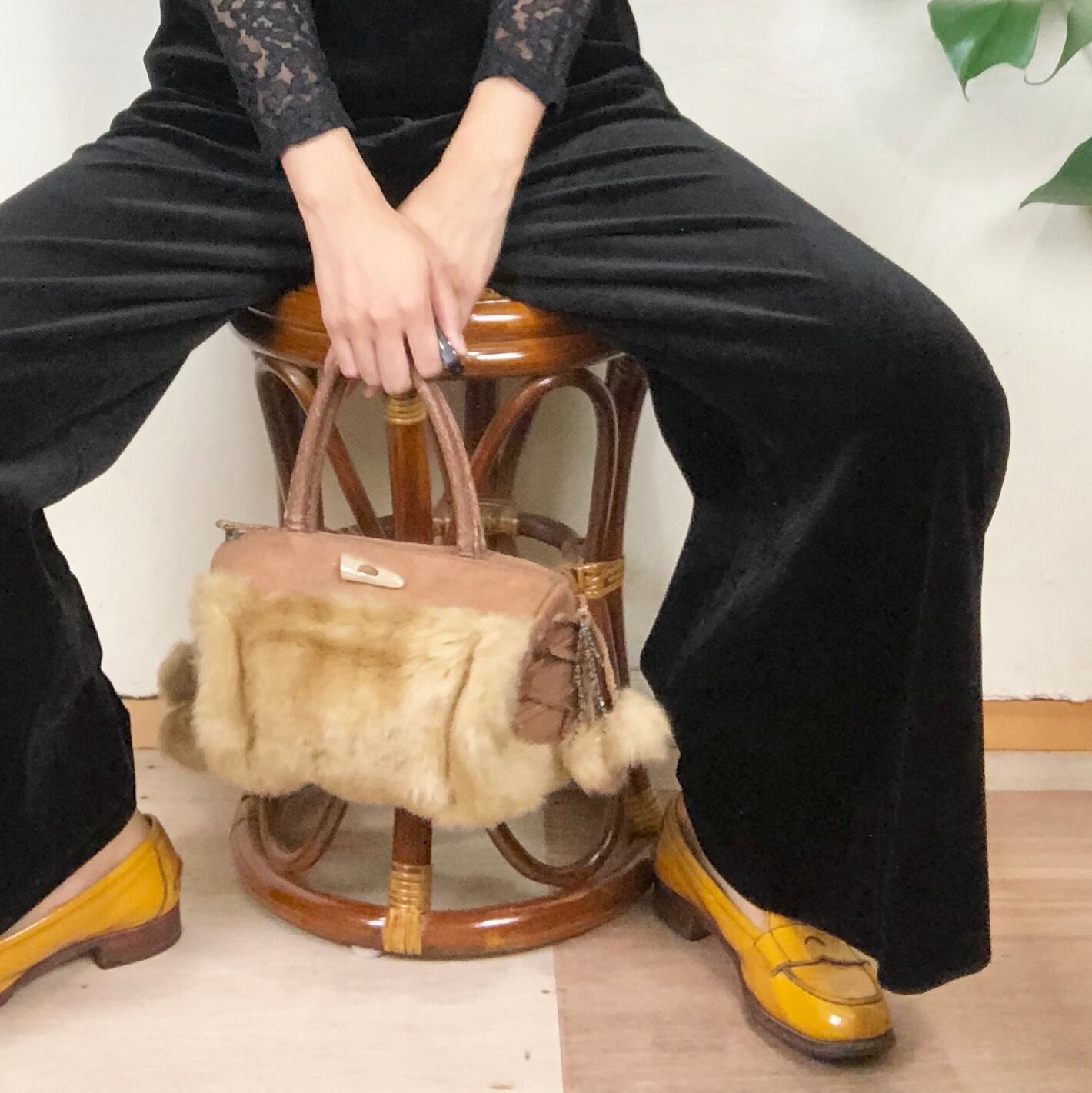 再度の編み上げやポンポンファー、かわいいポイントがたくさん詰まったキュートなミニボストンバッグです。