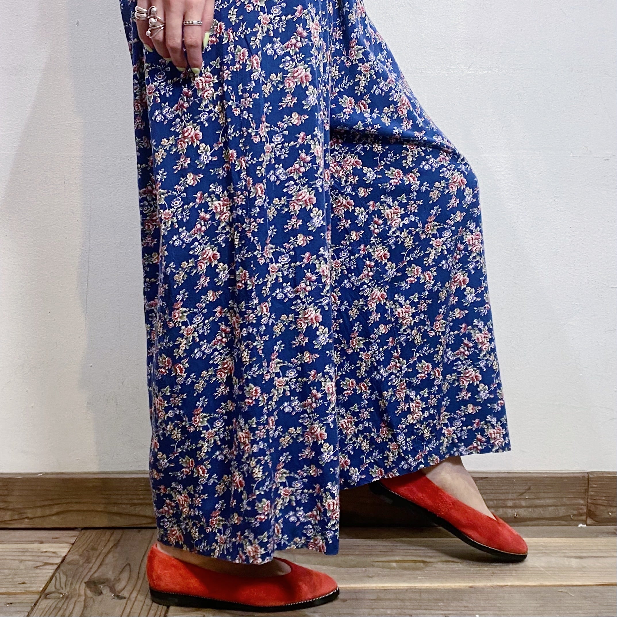 ネイビーベースの花柄が可愛い、90sのジャンプスーツです。