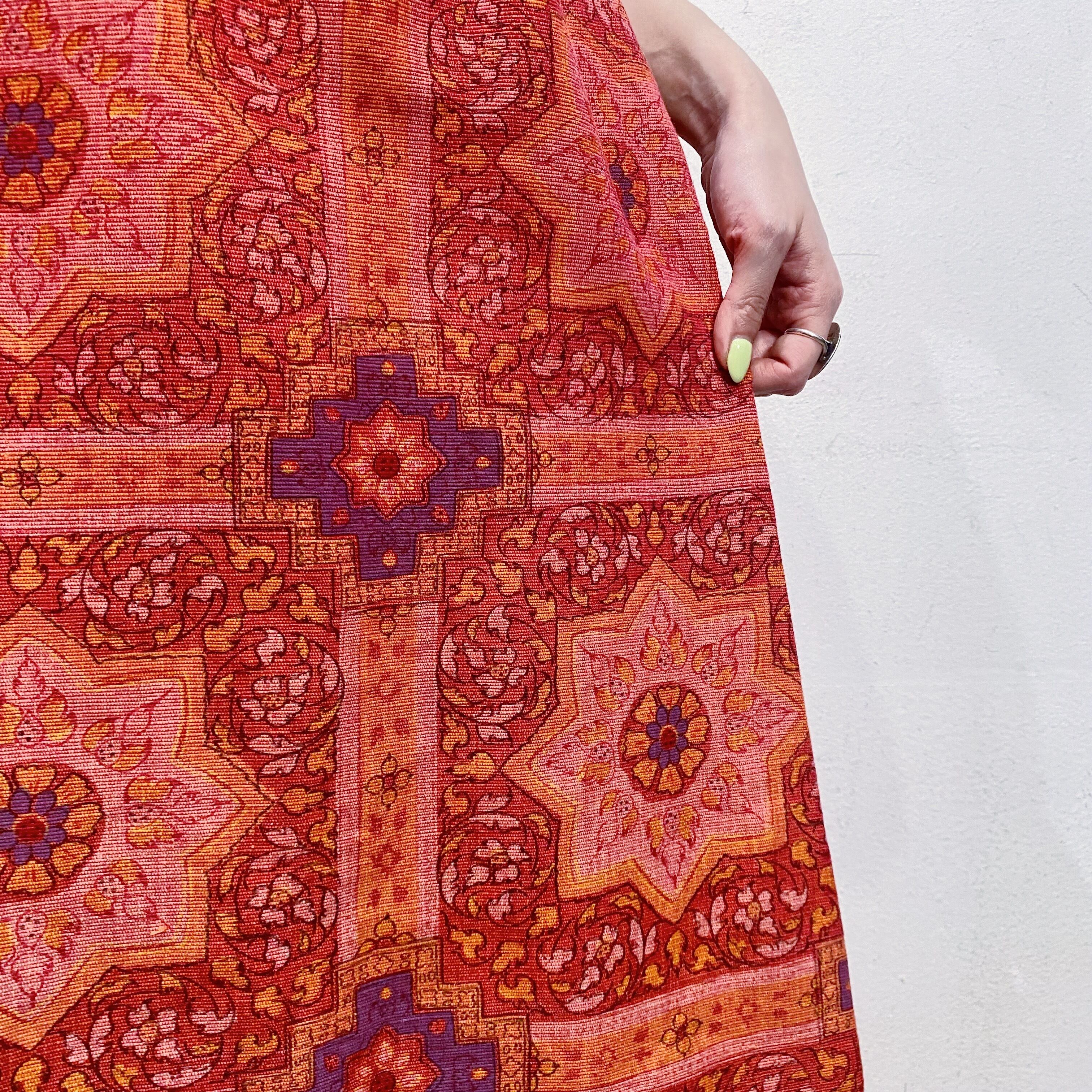レッドベースのタイルのようなテキスタイルが可愛い、60~70年代のスカートです。