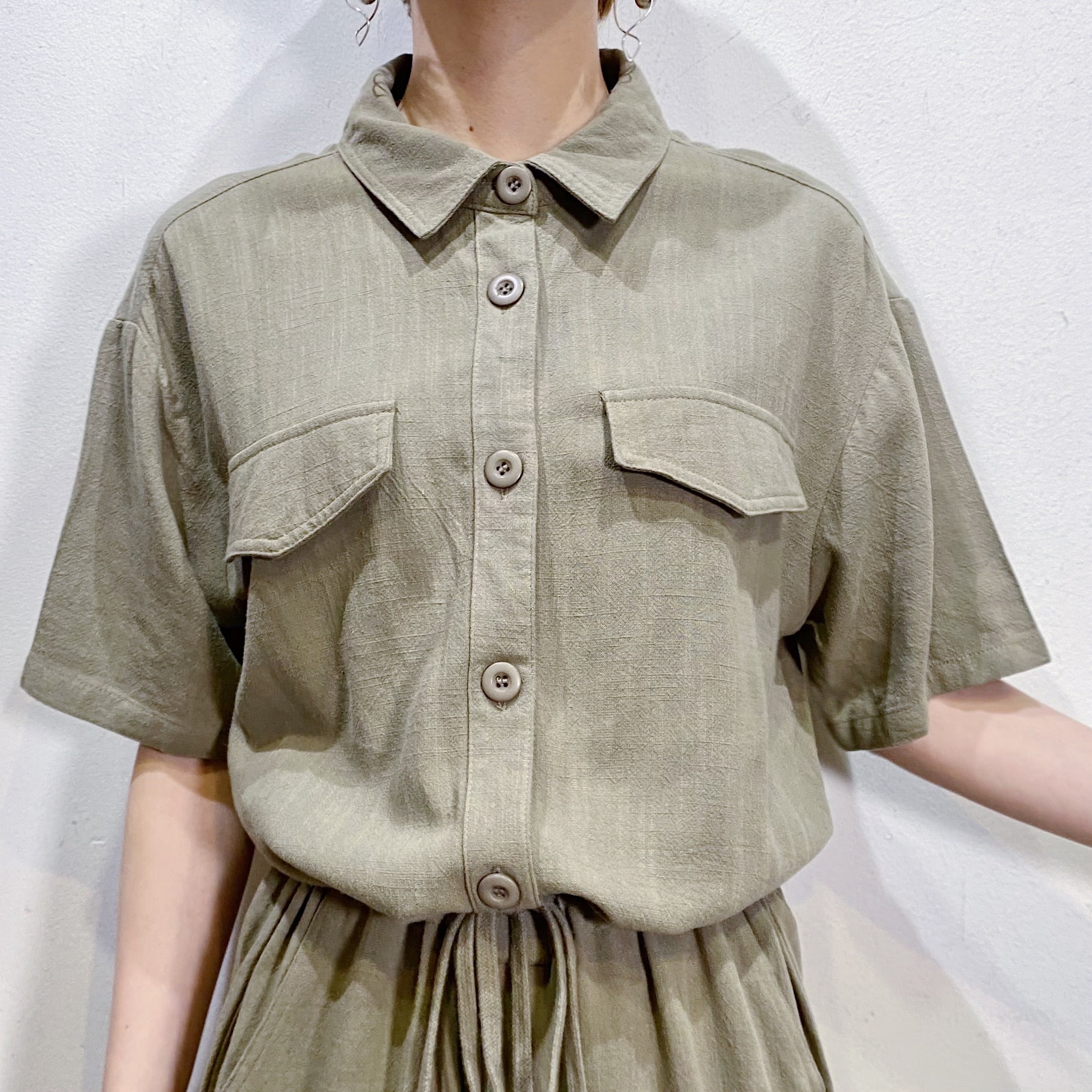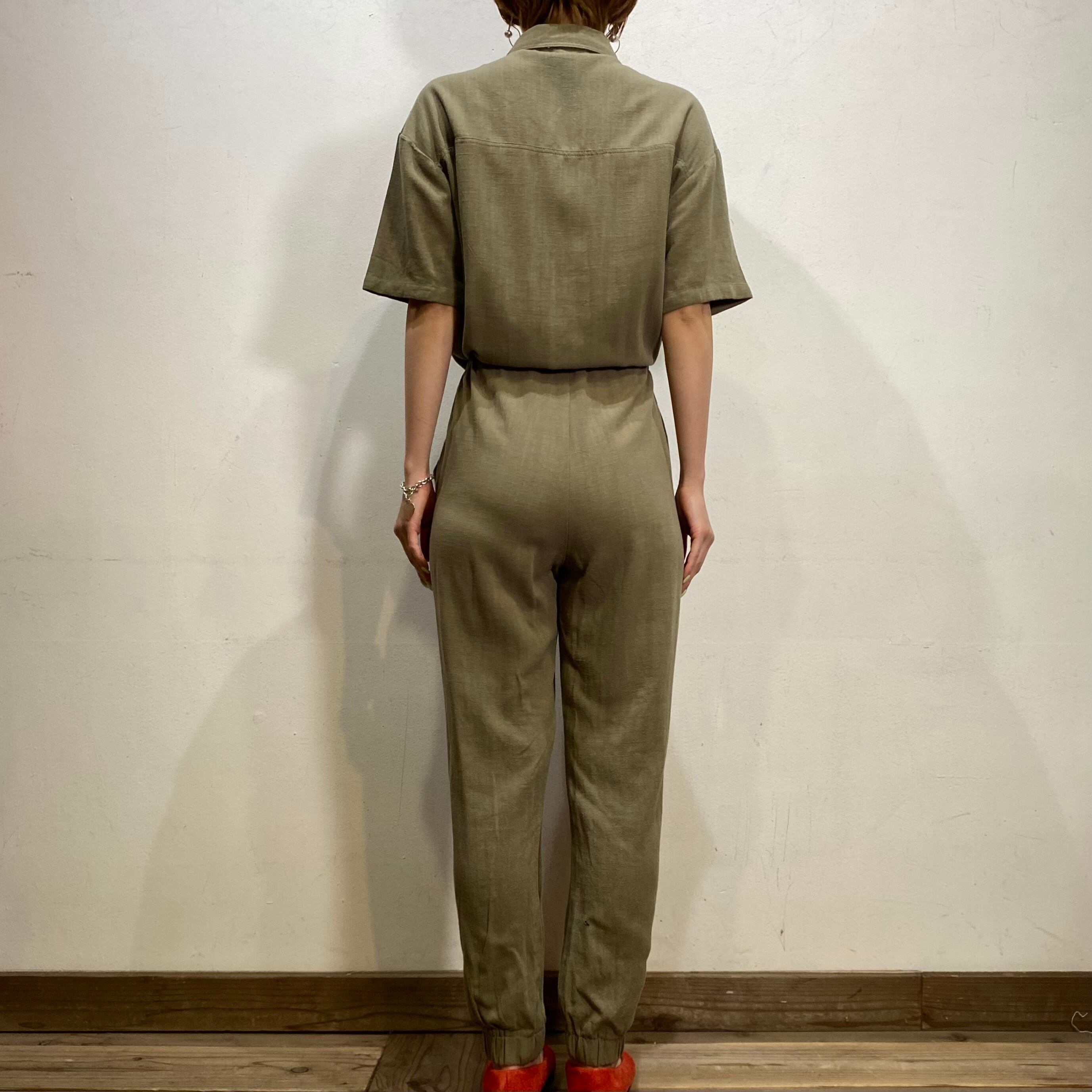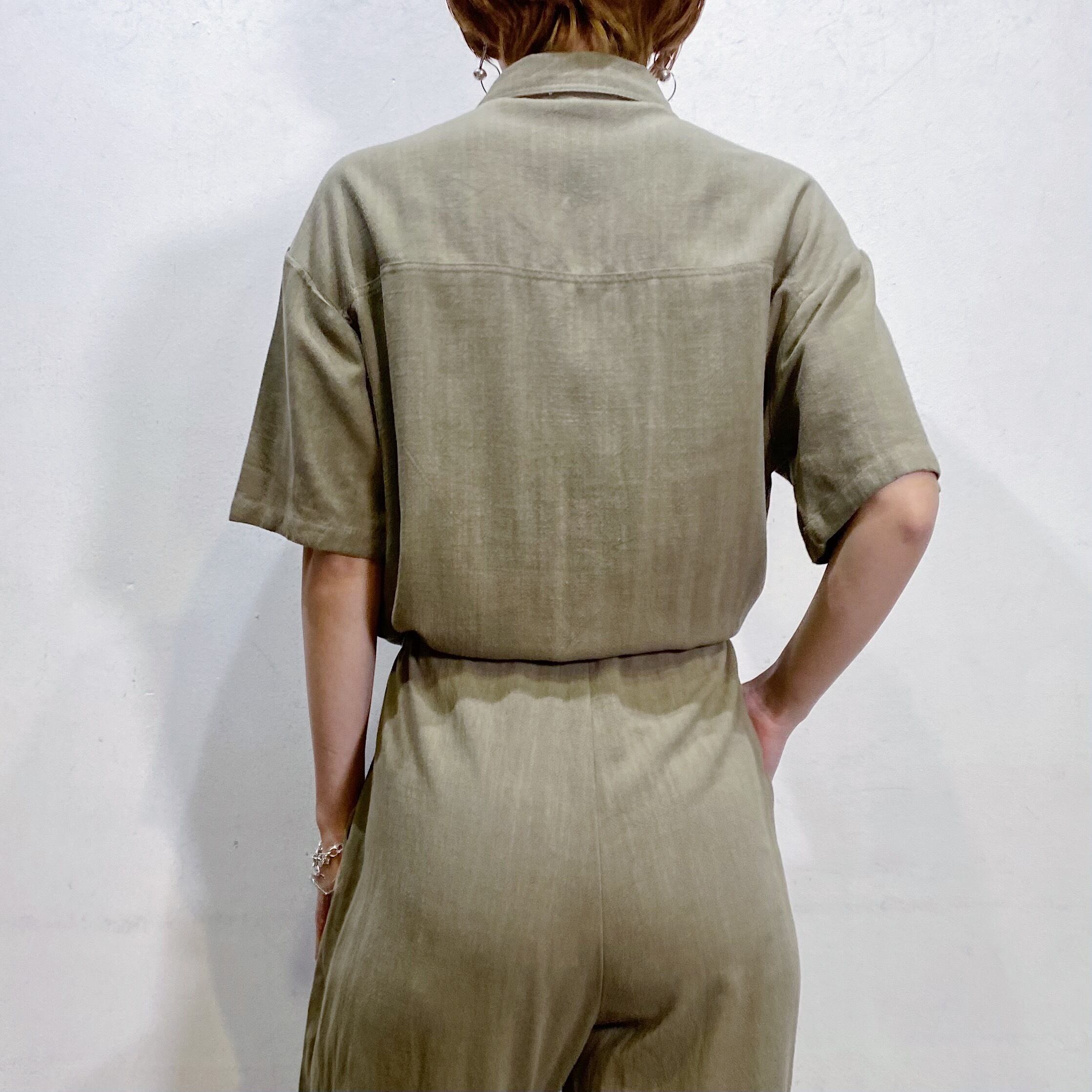 Linen khaki short sleeves jump suits【149】