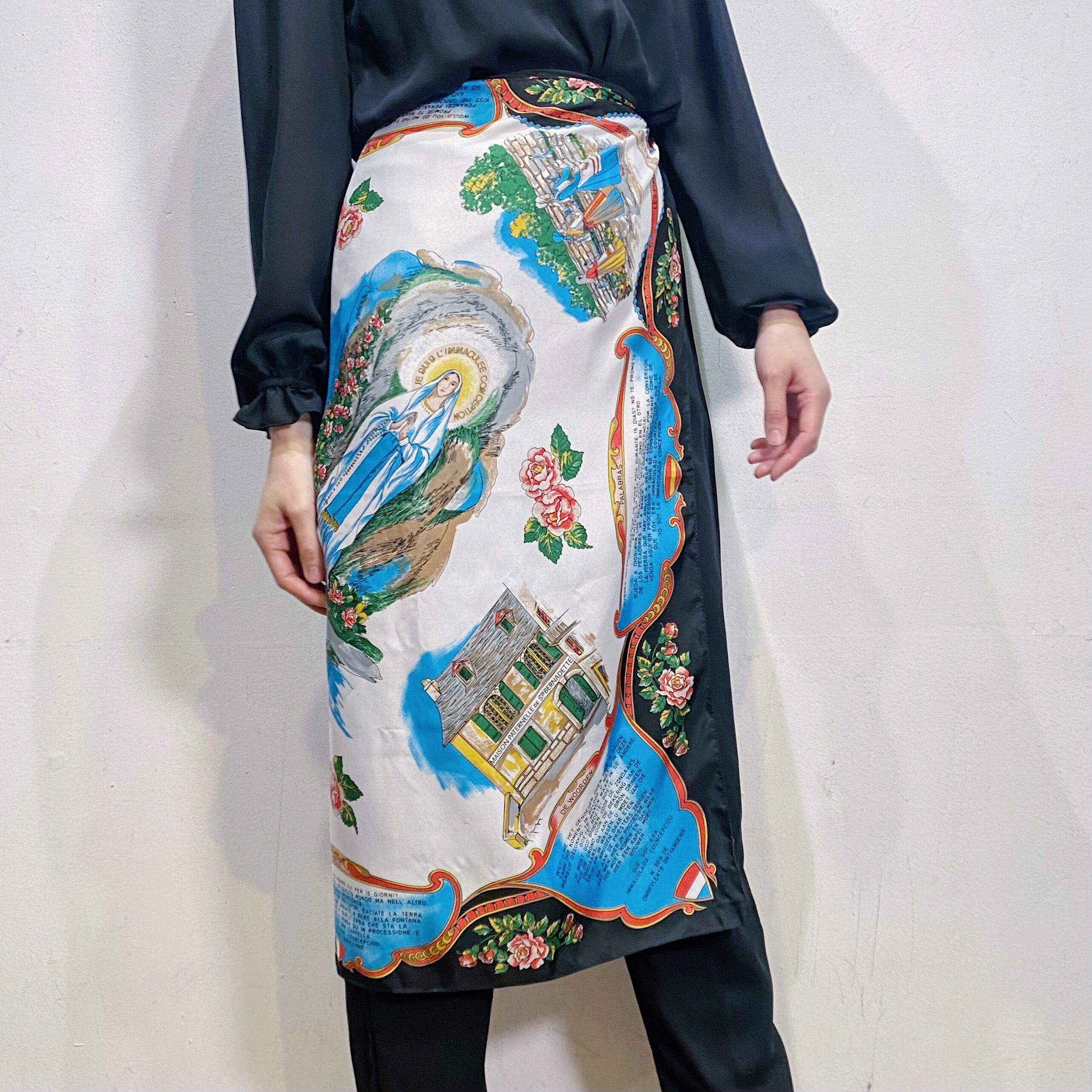 中央に聖母マリアがプリントされたヴィンテージスカーフです。