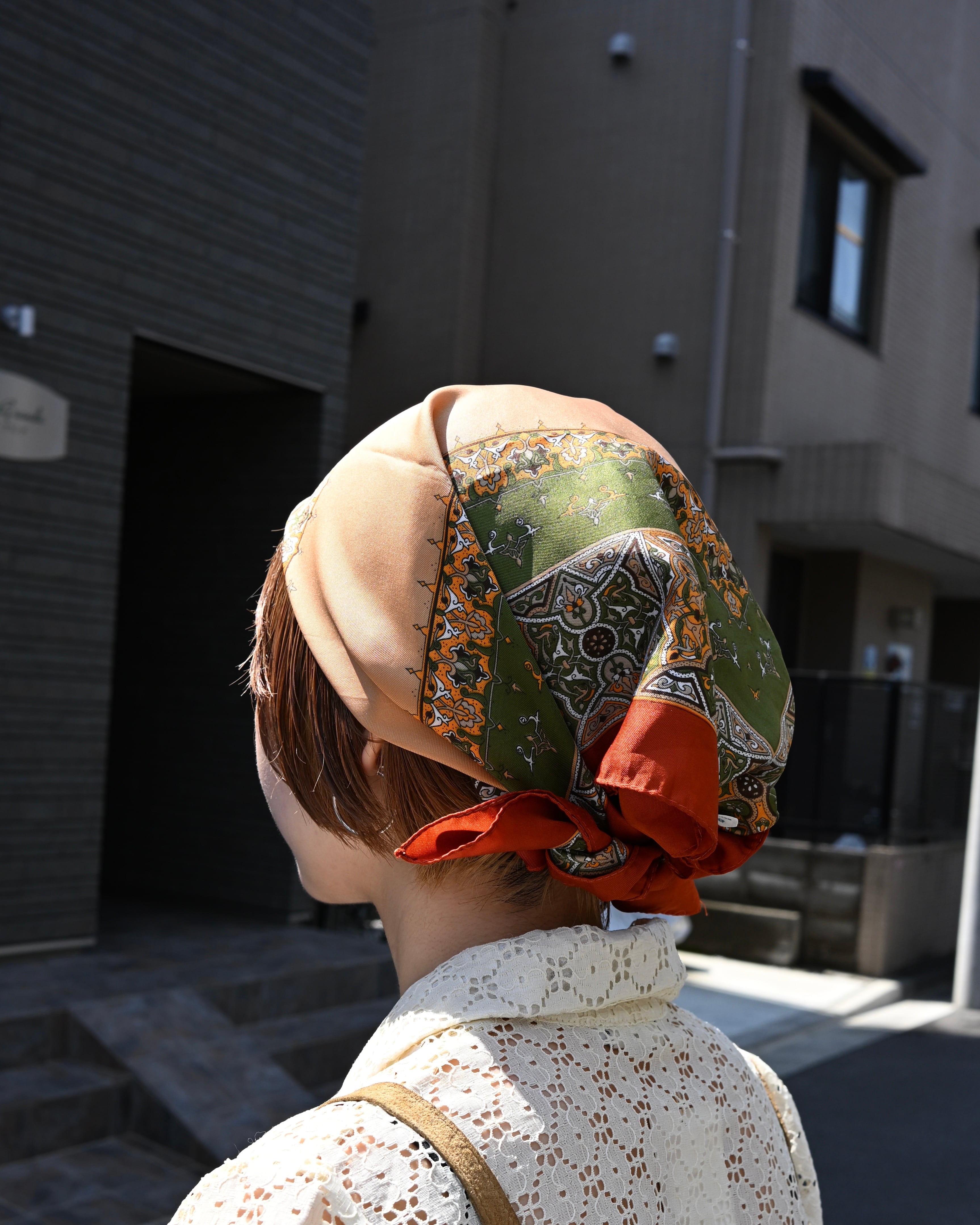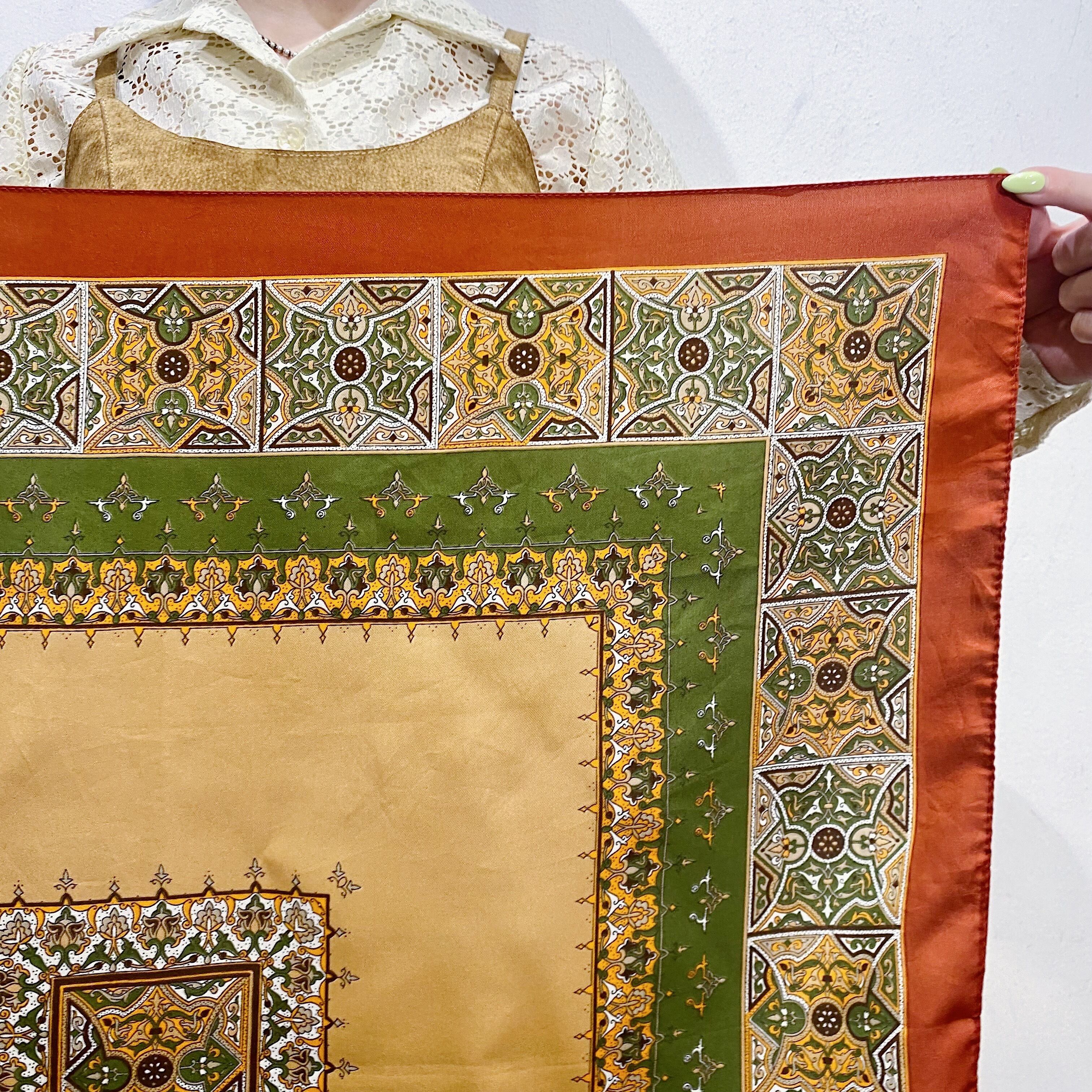 70ー80s made in Italy brown and green scarf【987】