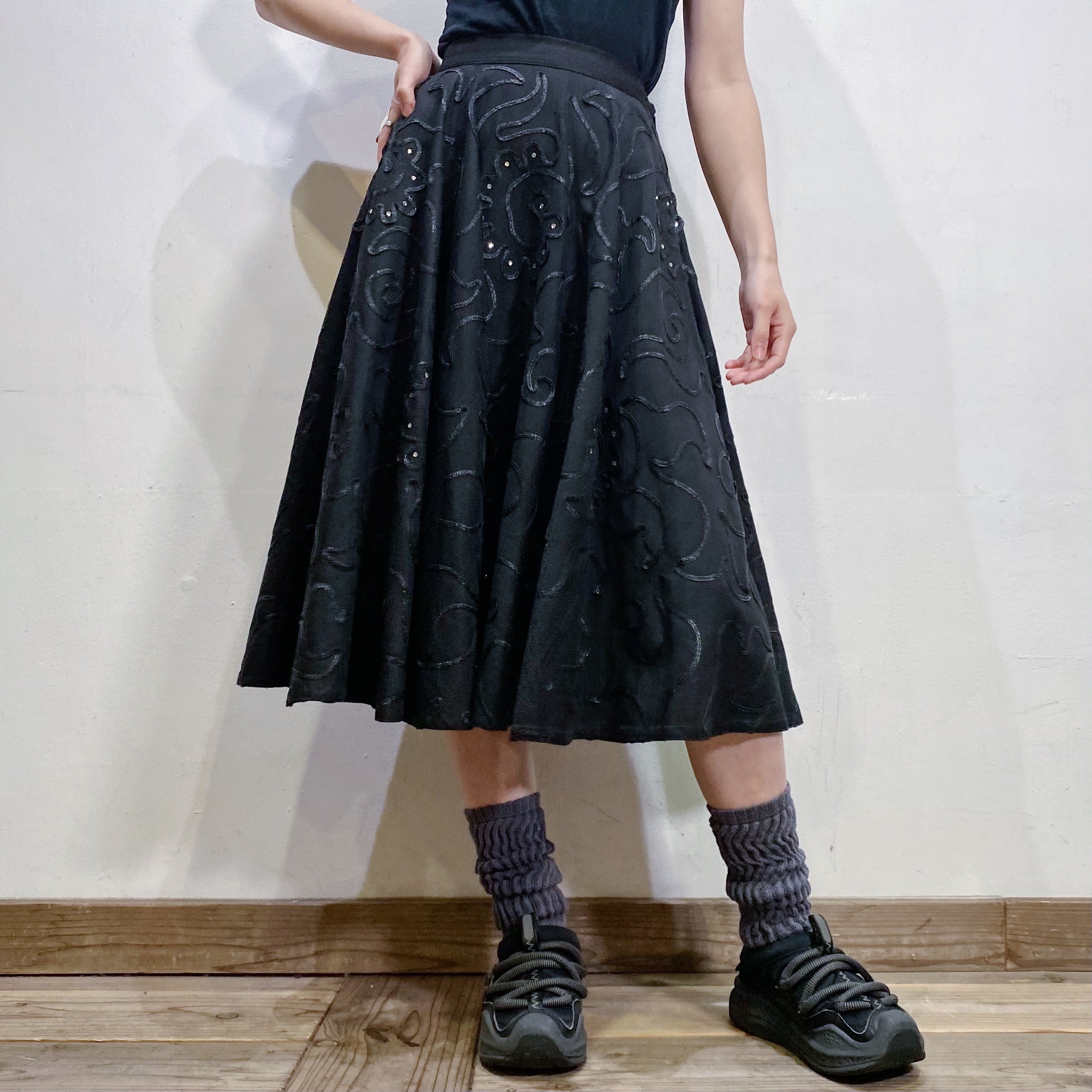 50s black circle skirt【516】