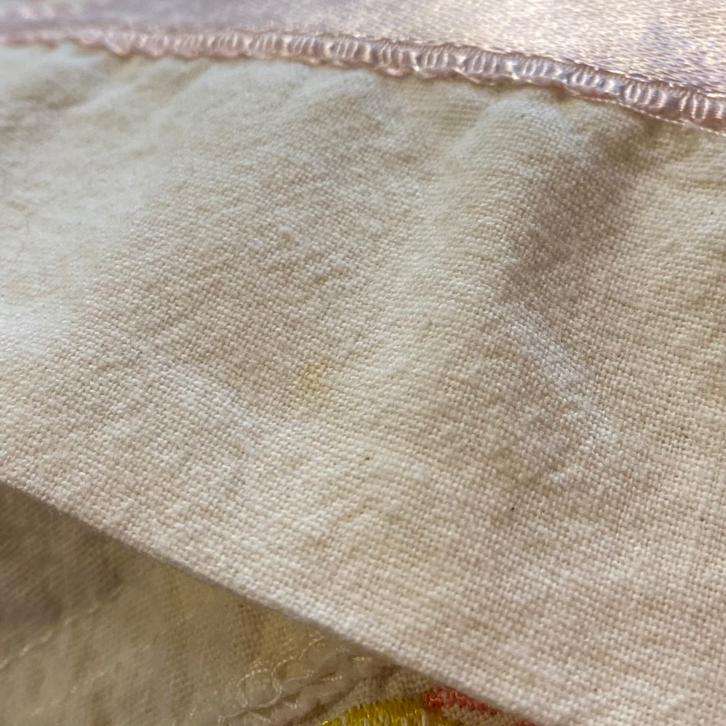ピンクとイエローの刺繍とテープが可愛い、70年代のワンピースです。