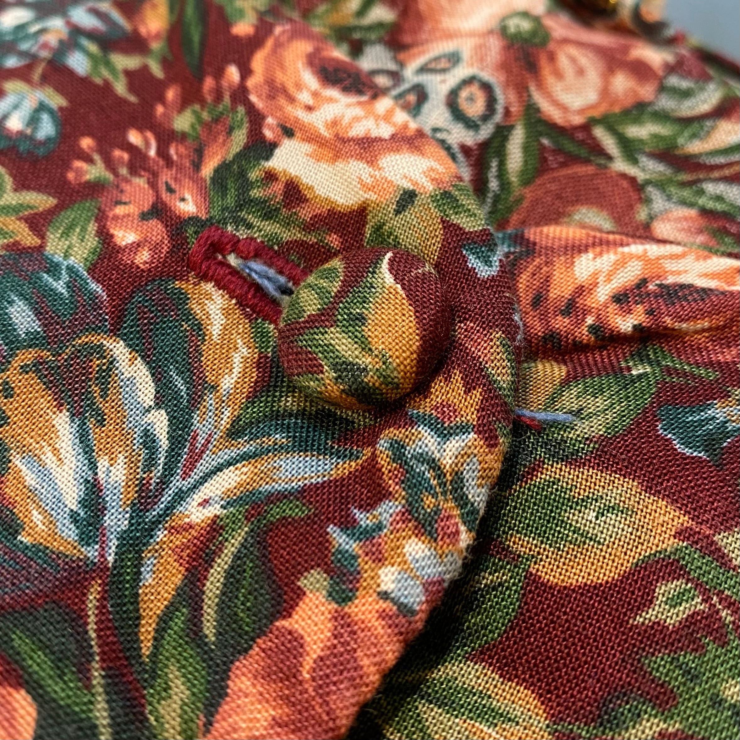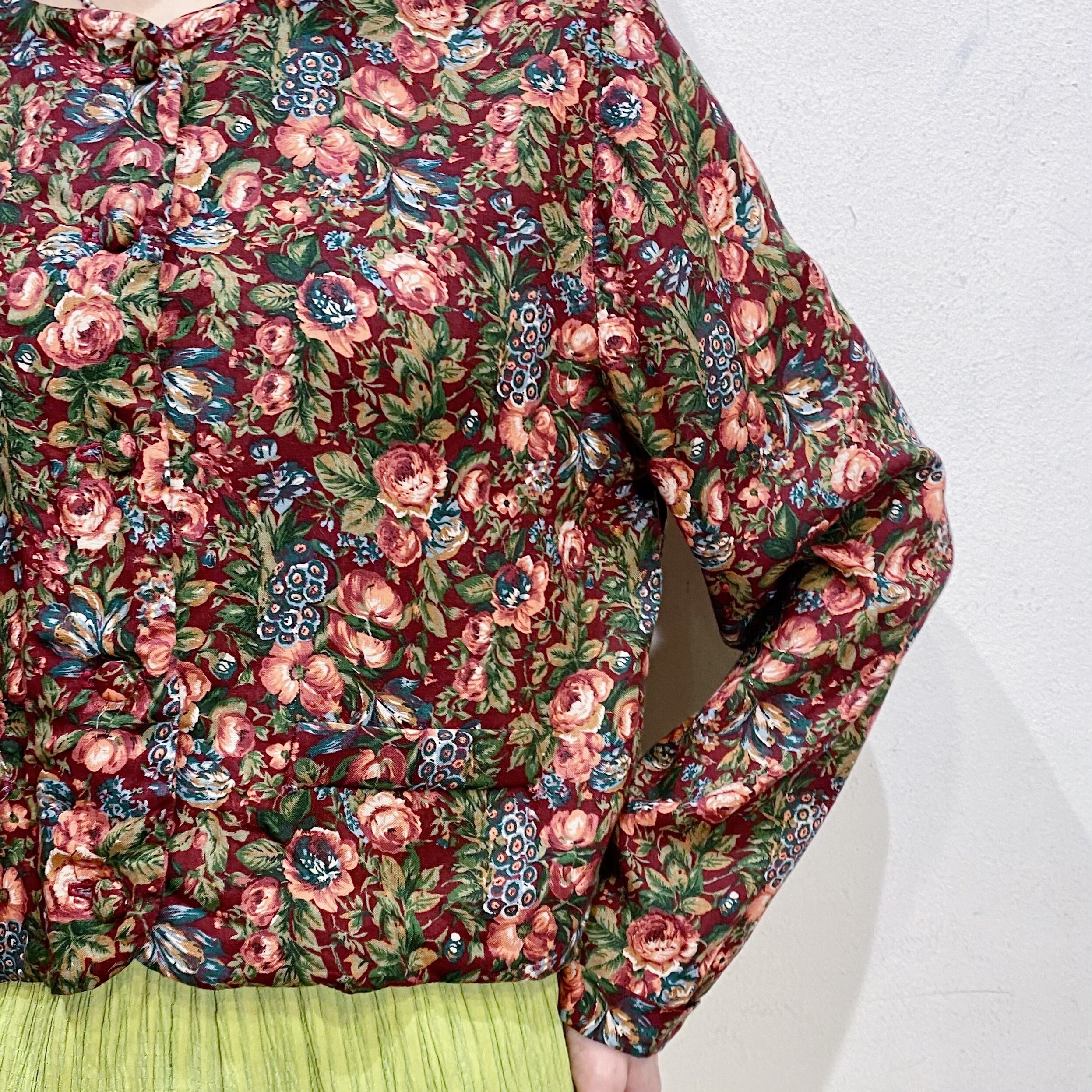 80s bordeaux flower printed rayon cardigan【957】