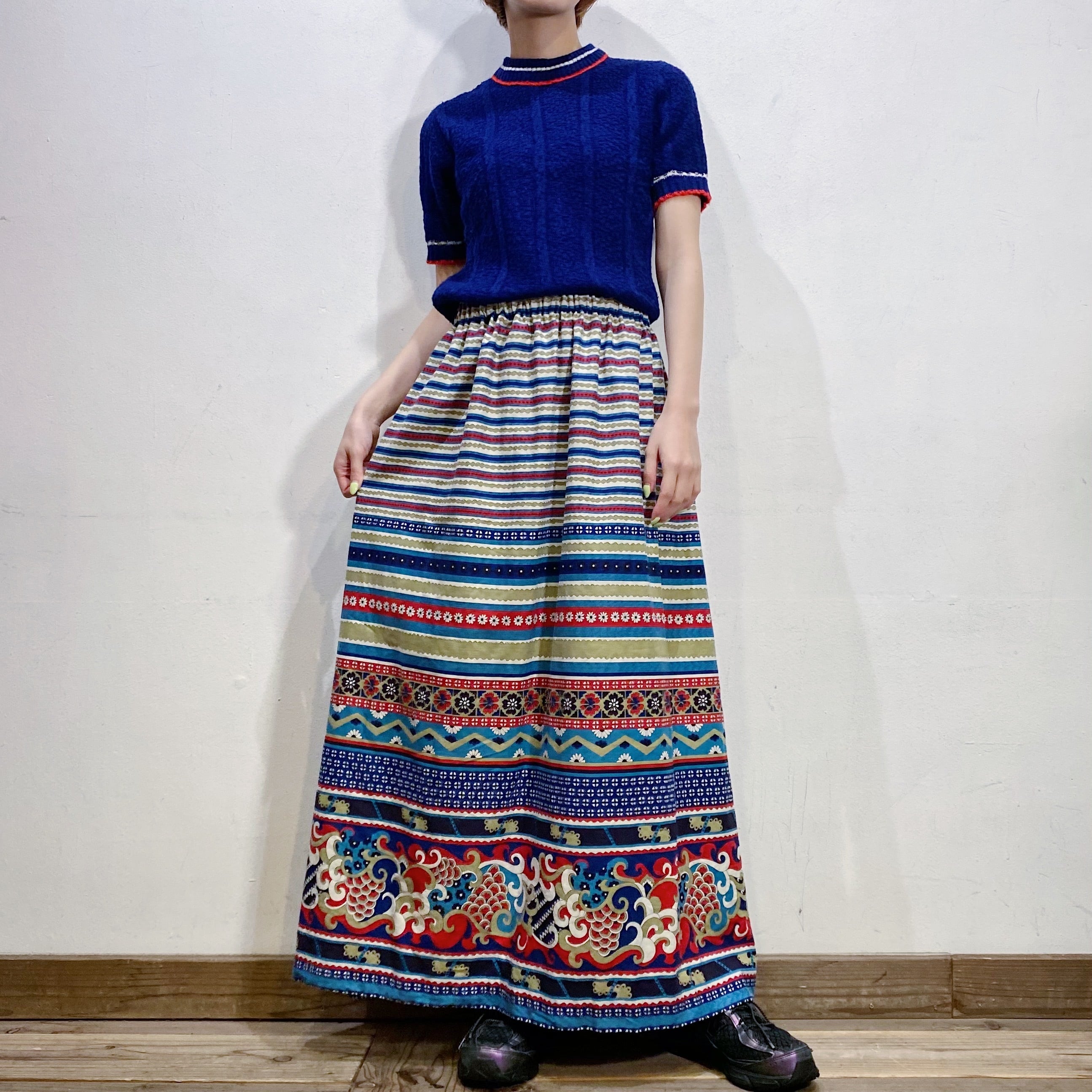 ネイビーベースで着こなしやすい、60年代の半袖ニット。
