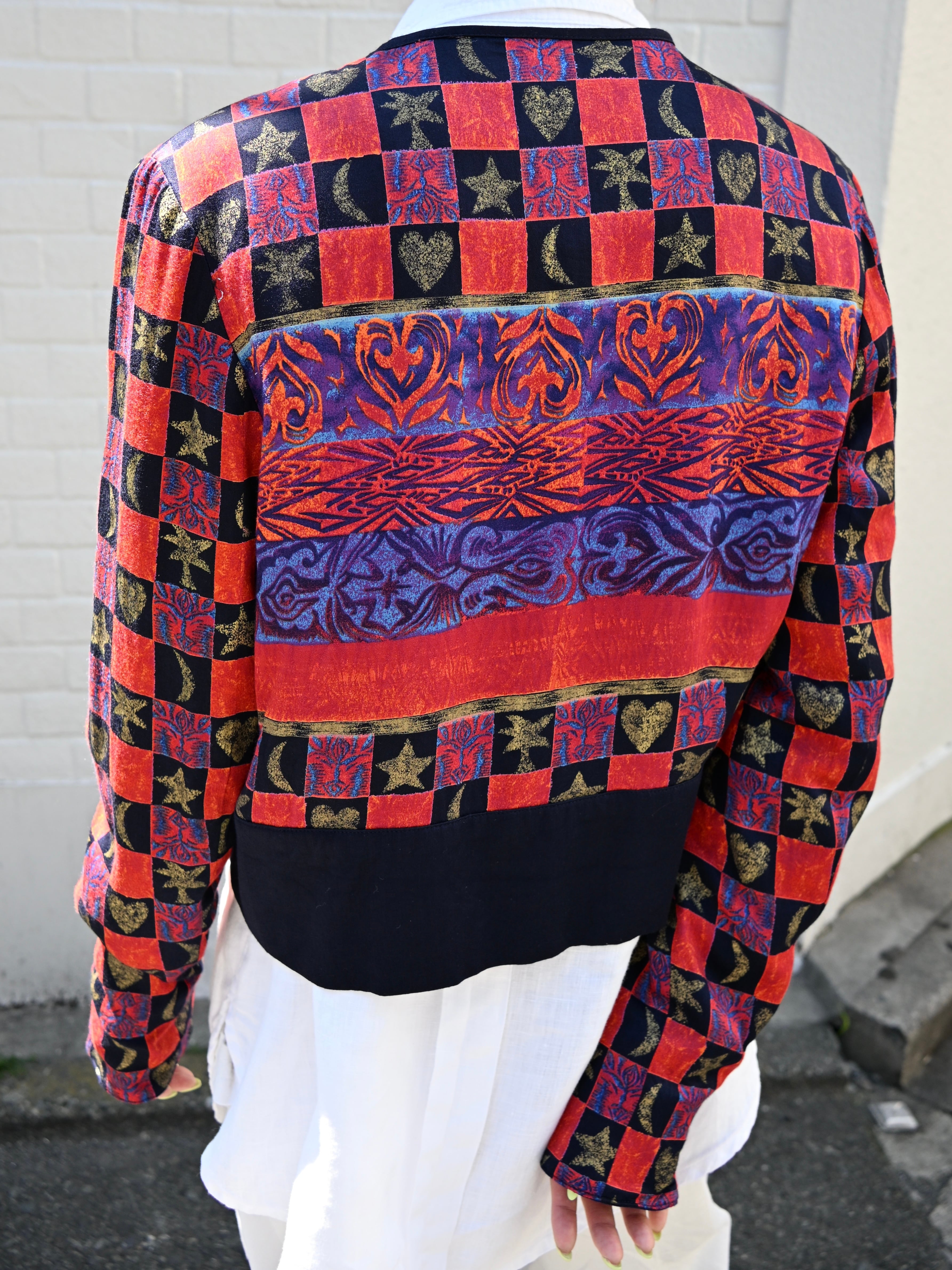 星にハート、月にヤシノキ!のテキスタイルがとっても可愛い80年代のライトジャケットです。