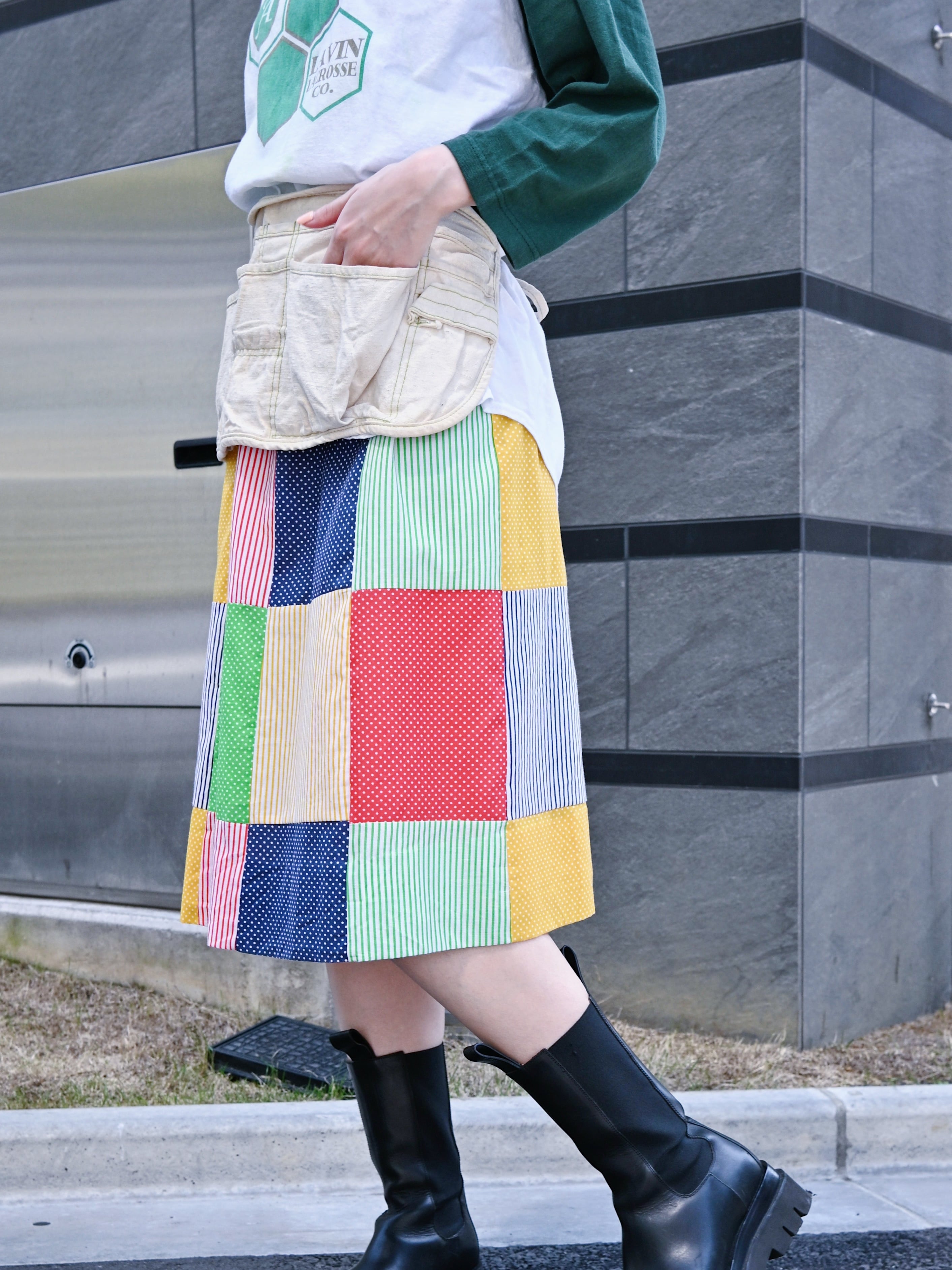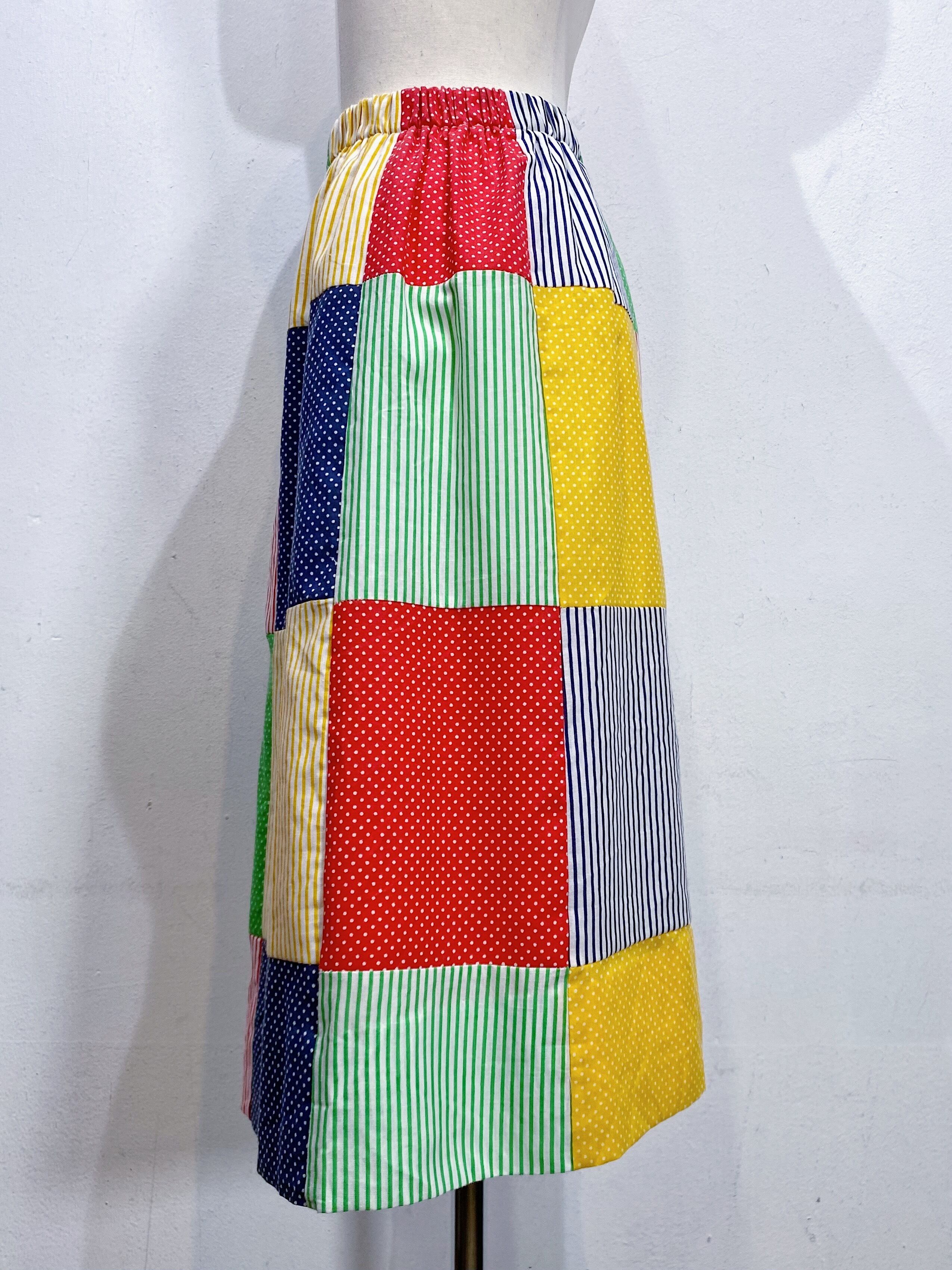 ドットとストライプの組み合わせが可愛い、70sのパッチワークスカートです。