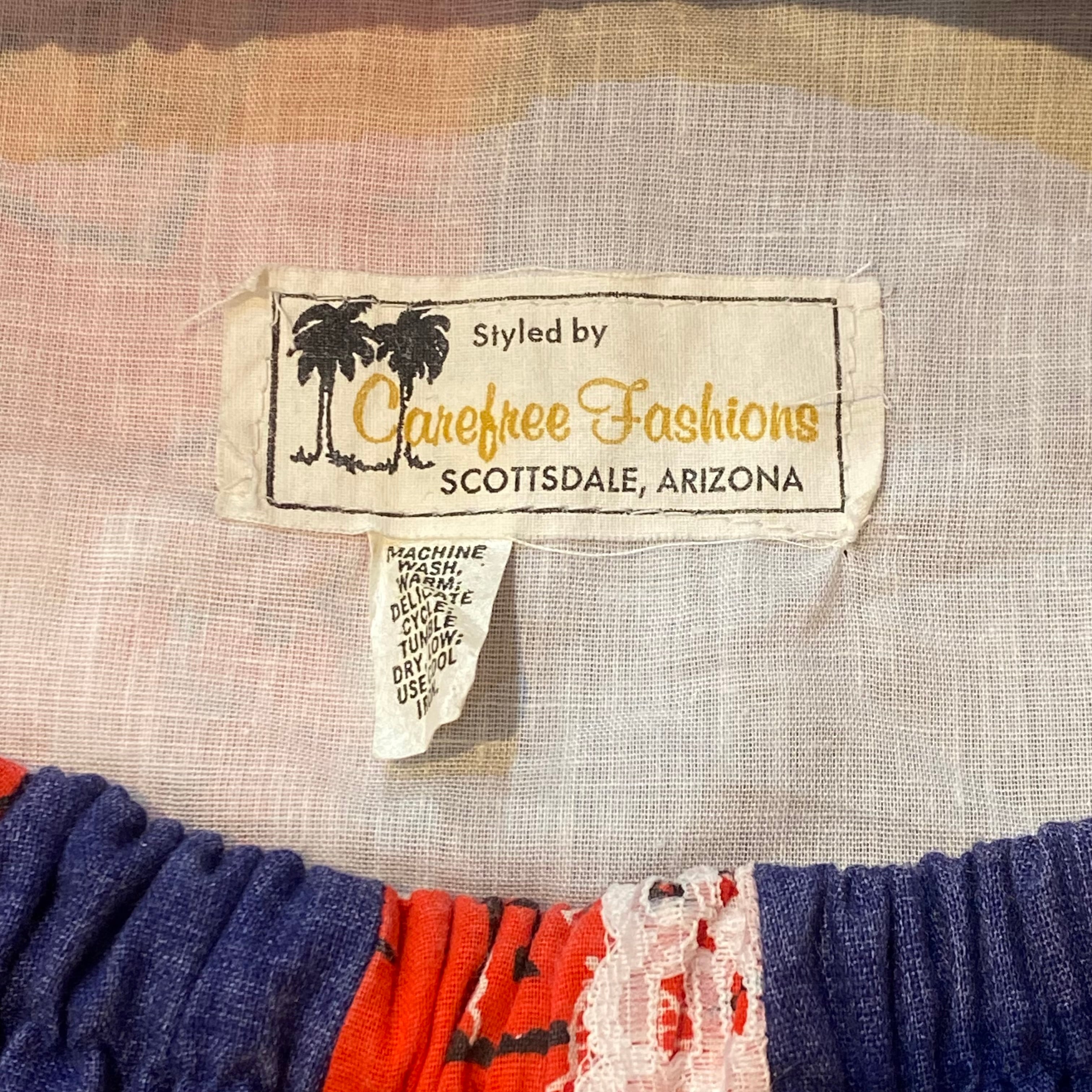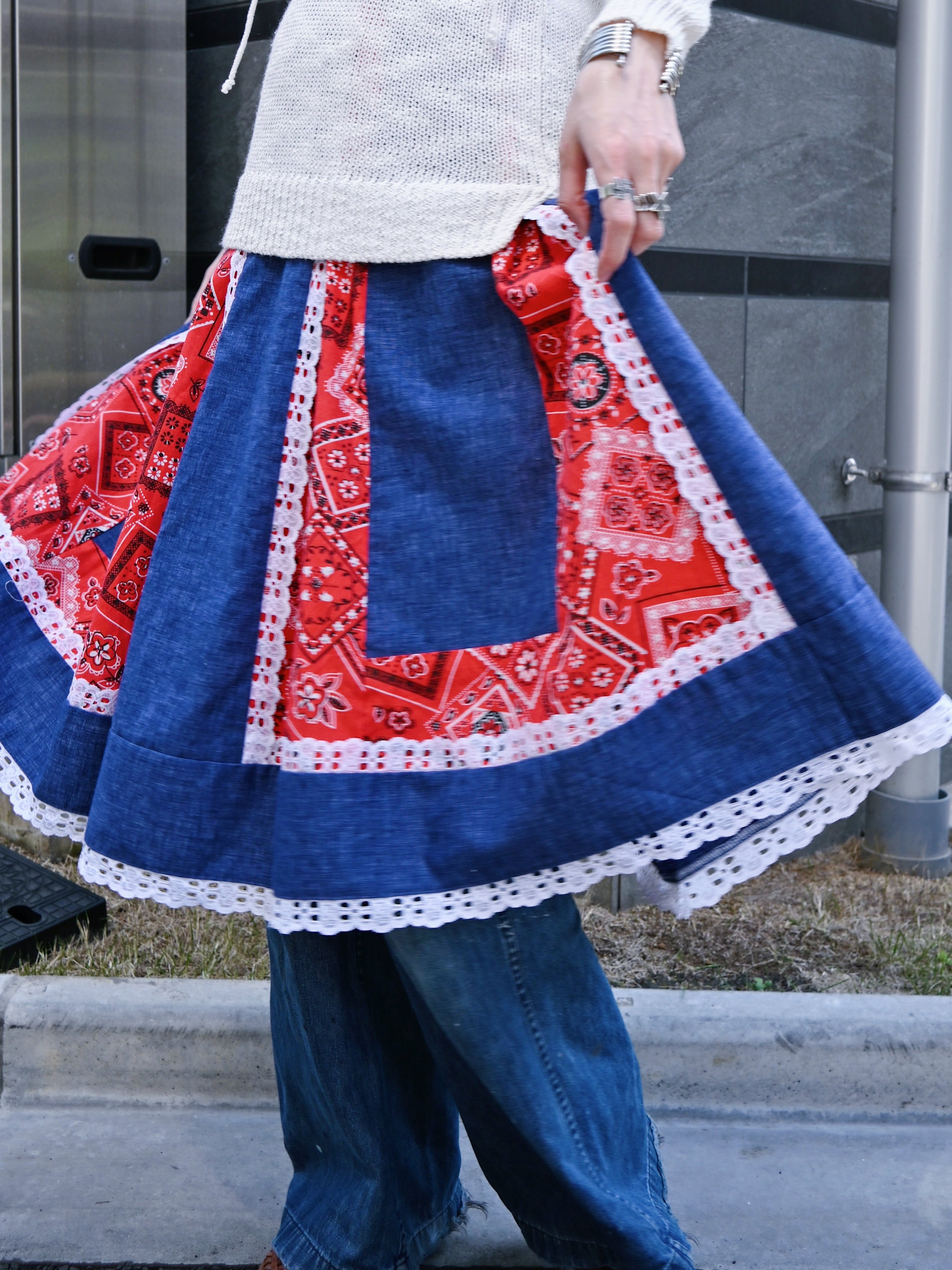 バンダナ柄とデニム地の組み合わせが可愛い、70年代のスカートです。