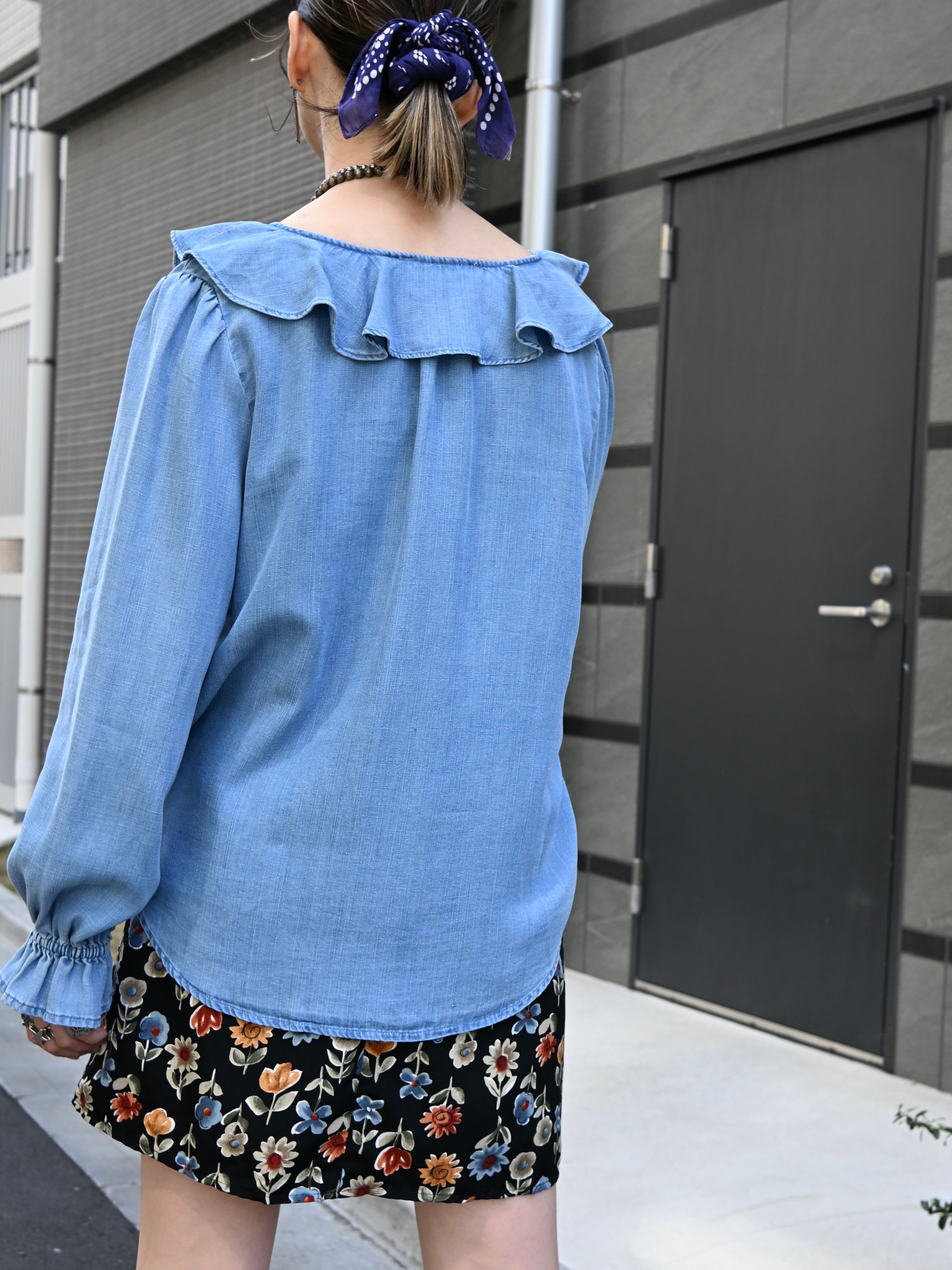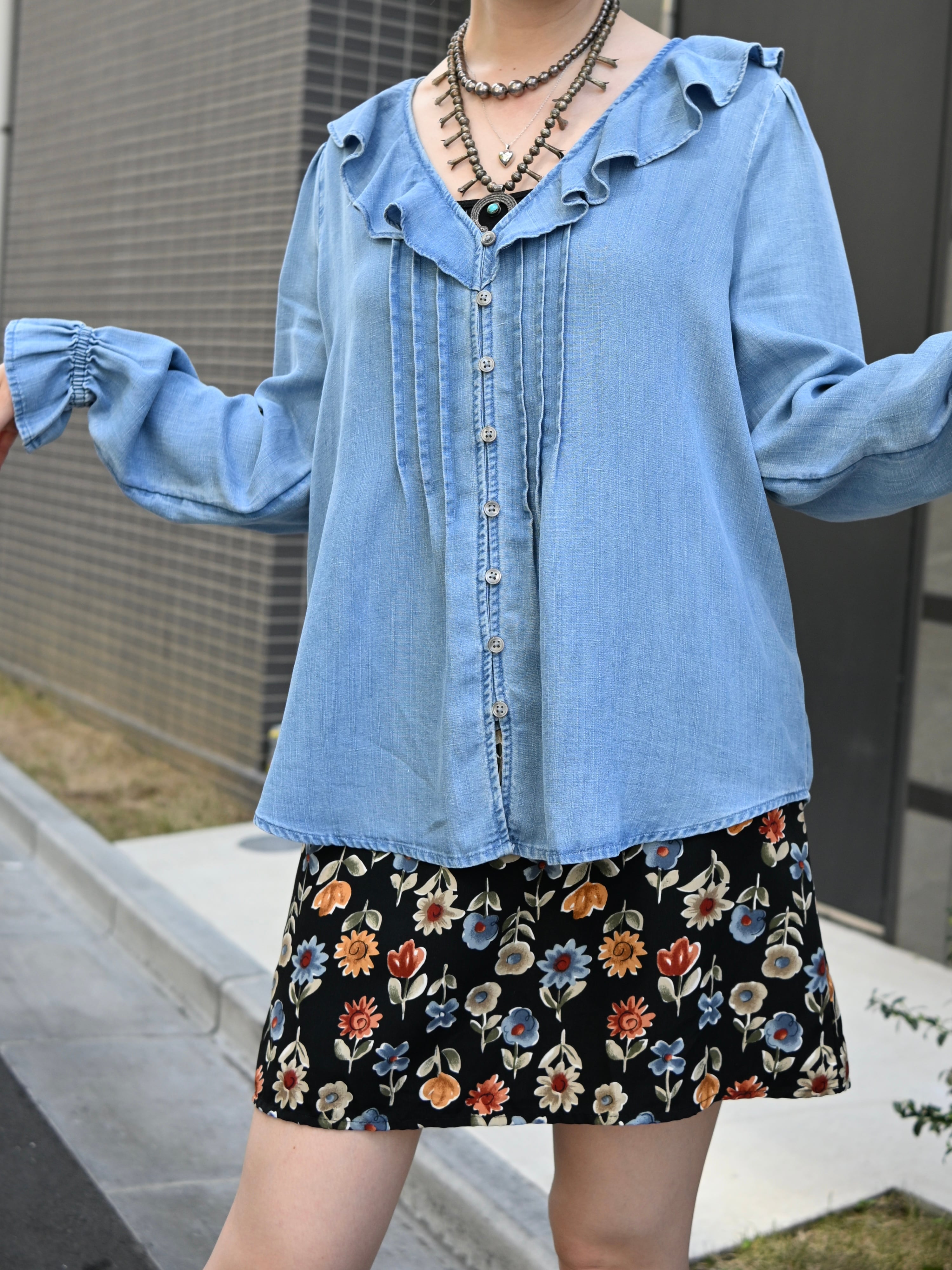 手書きタッチのゆるい花柄が可愛く、軽やかな素材感でデイリーに着こなしやすいですよ。