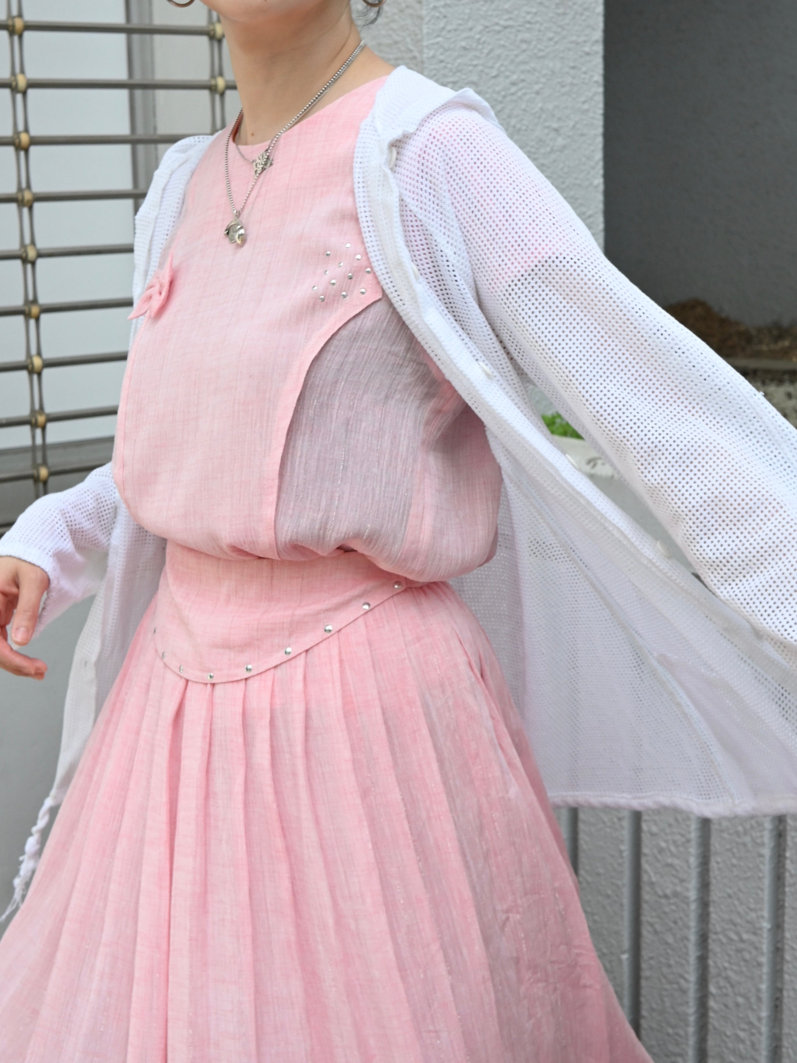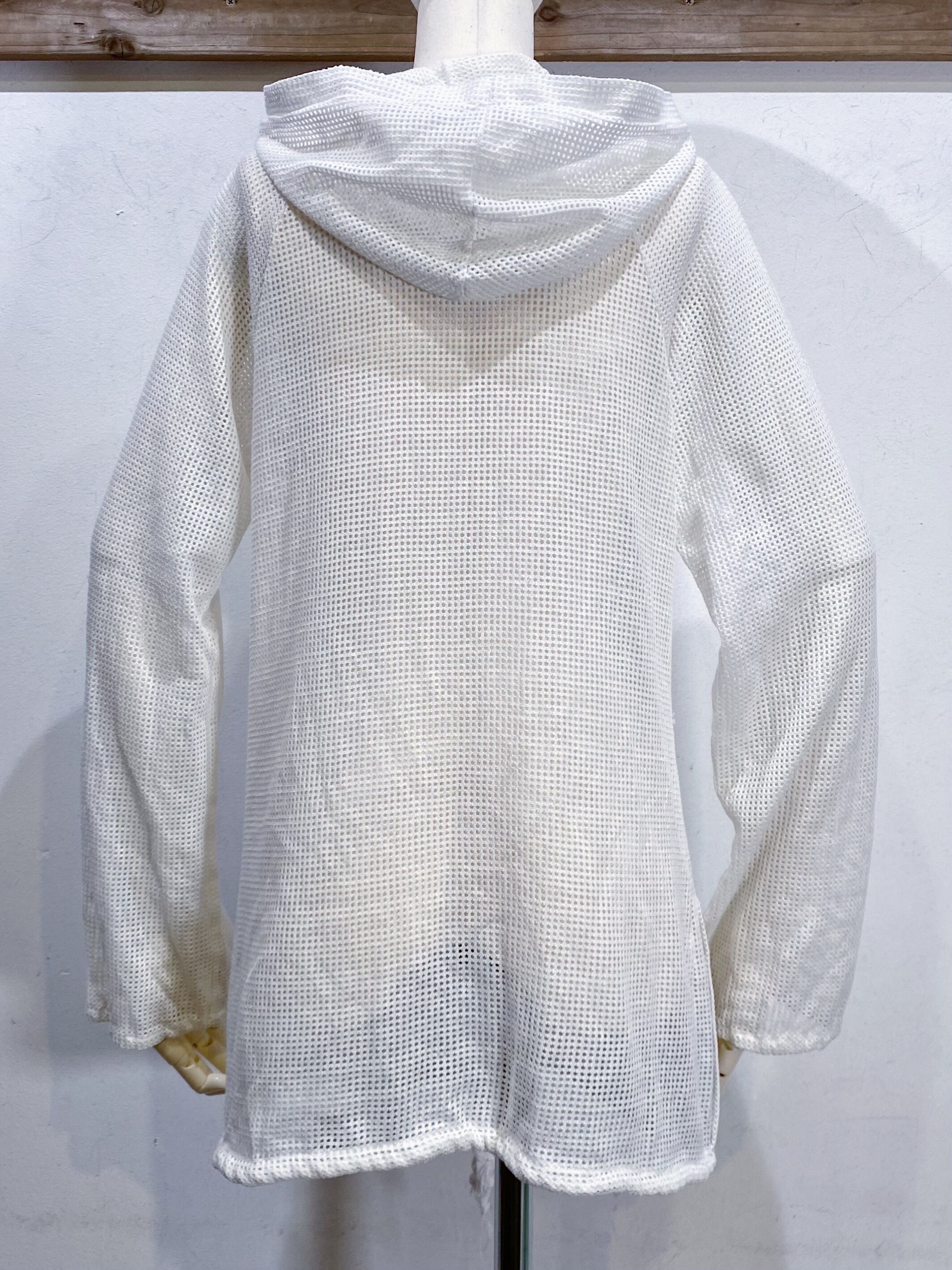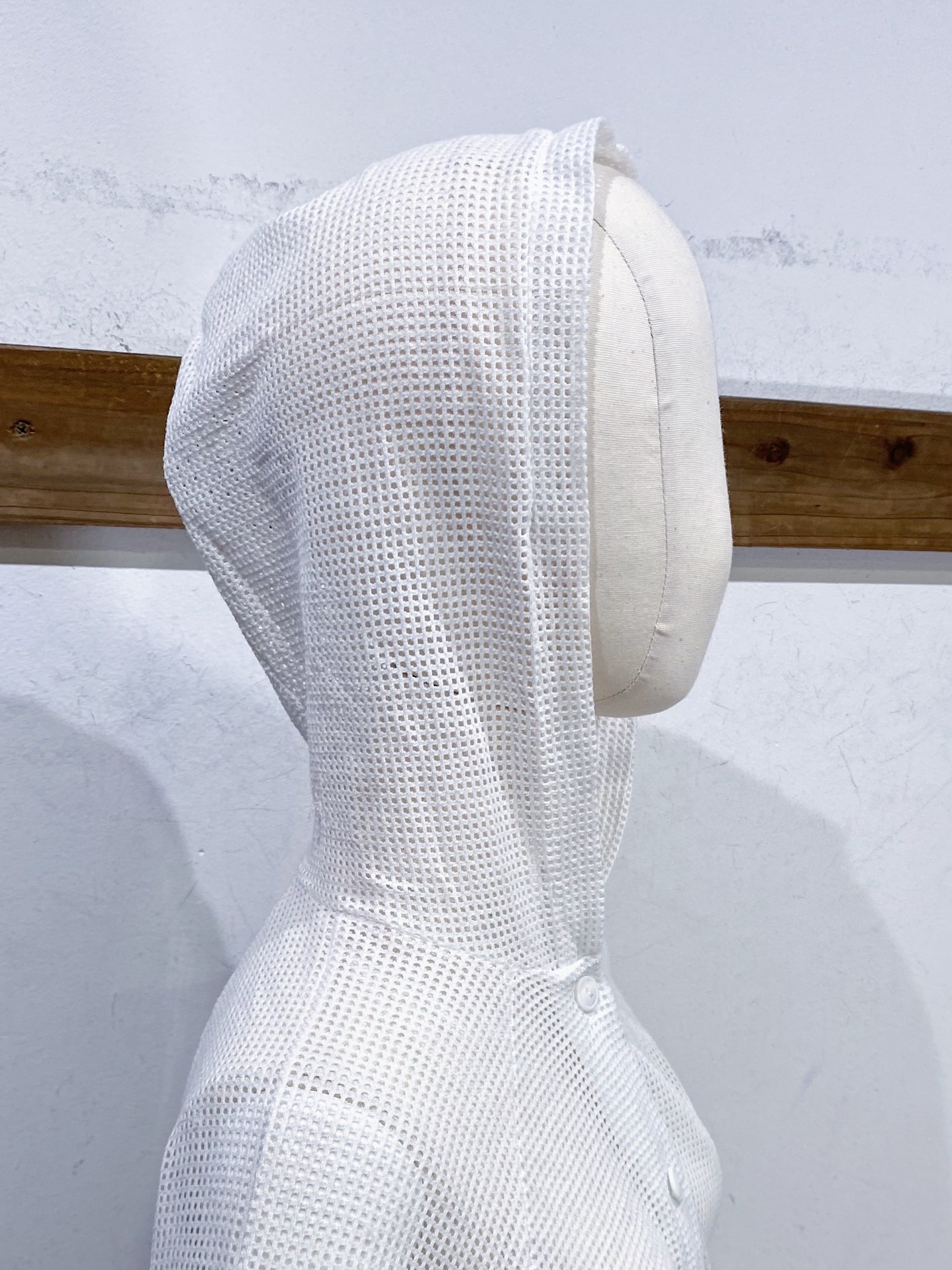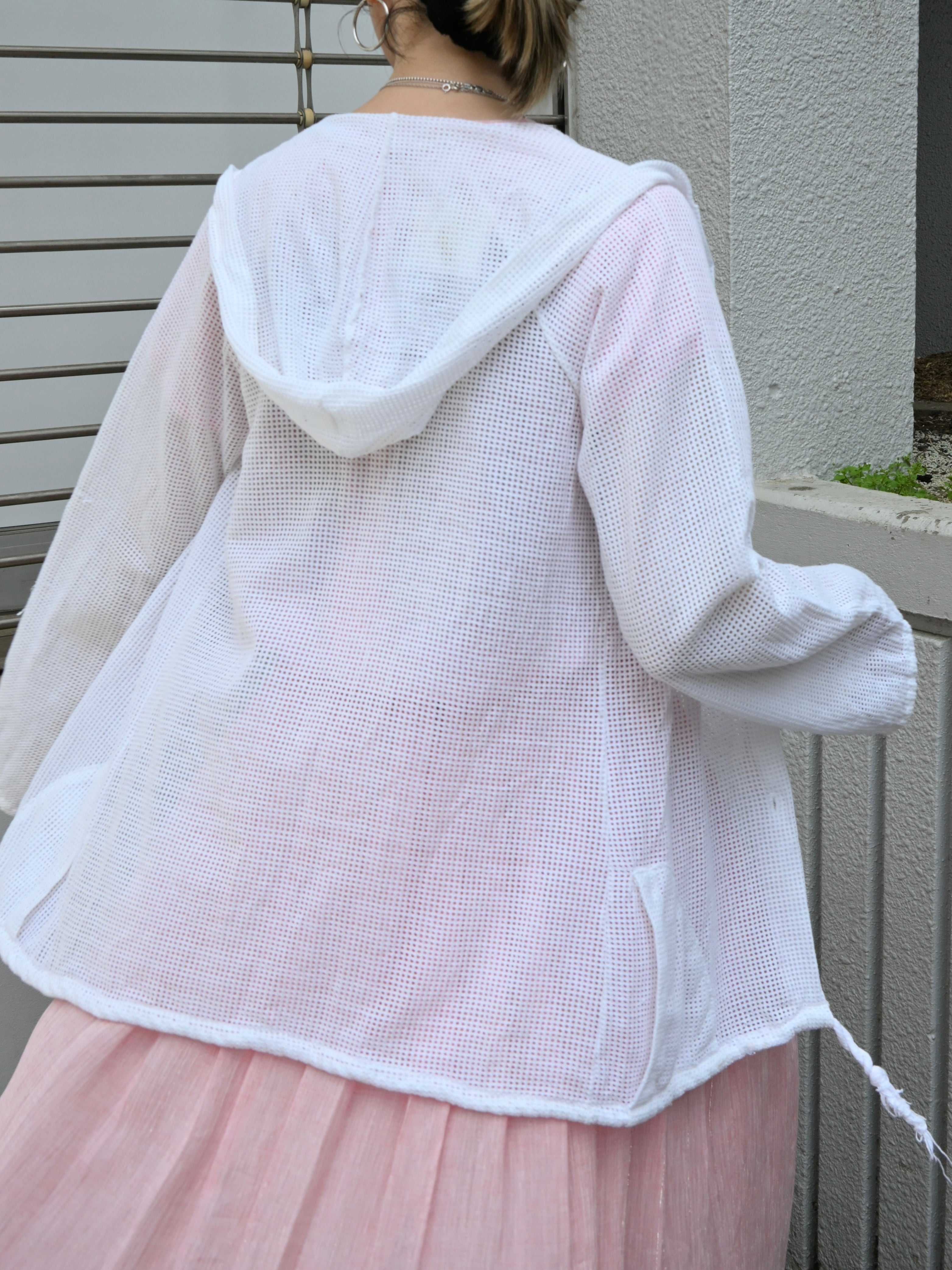 メッシュ素材が可愛い、フード付きのカーディガンです。