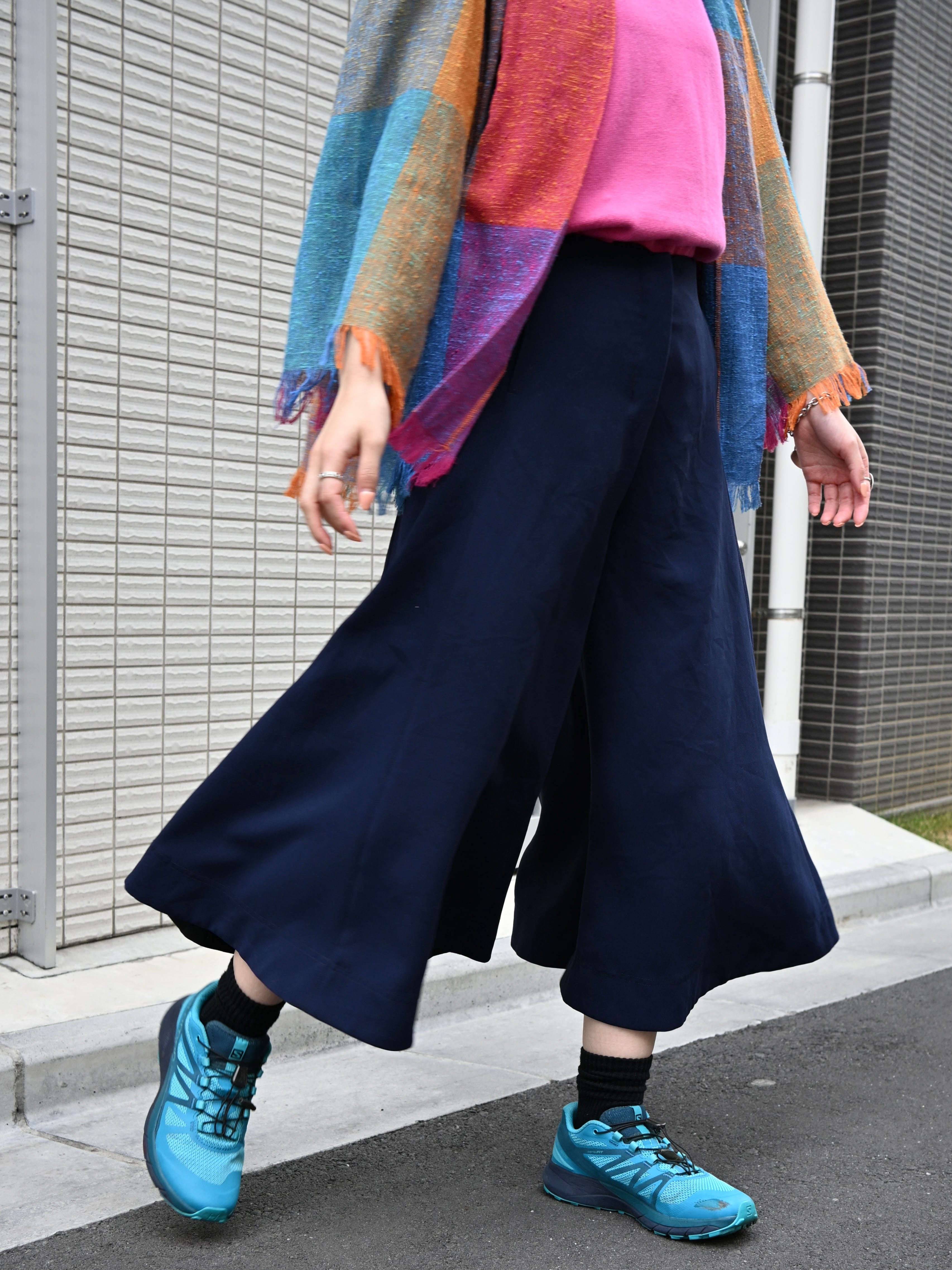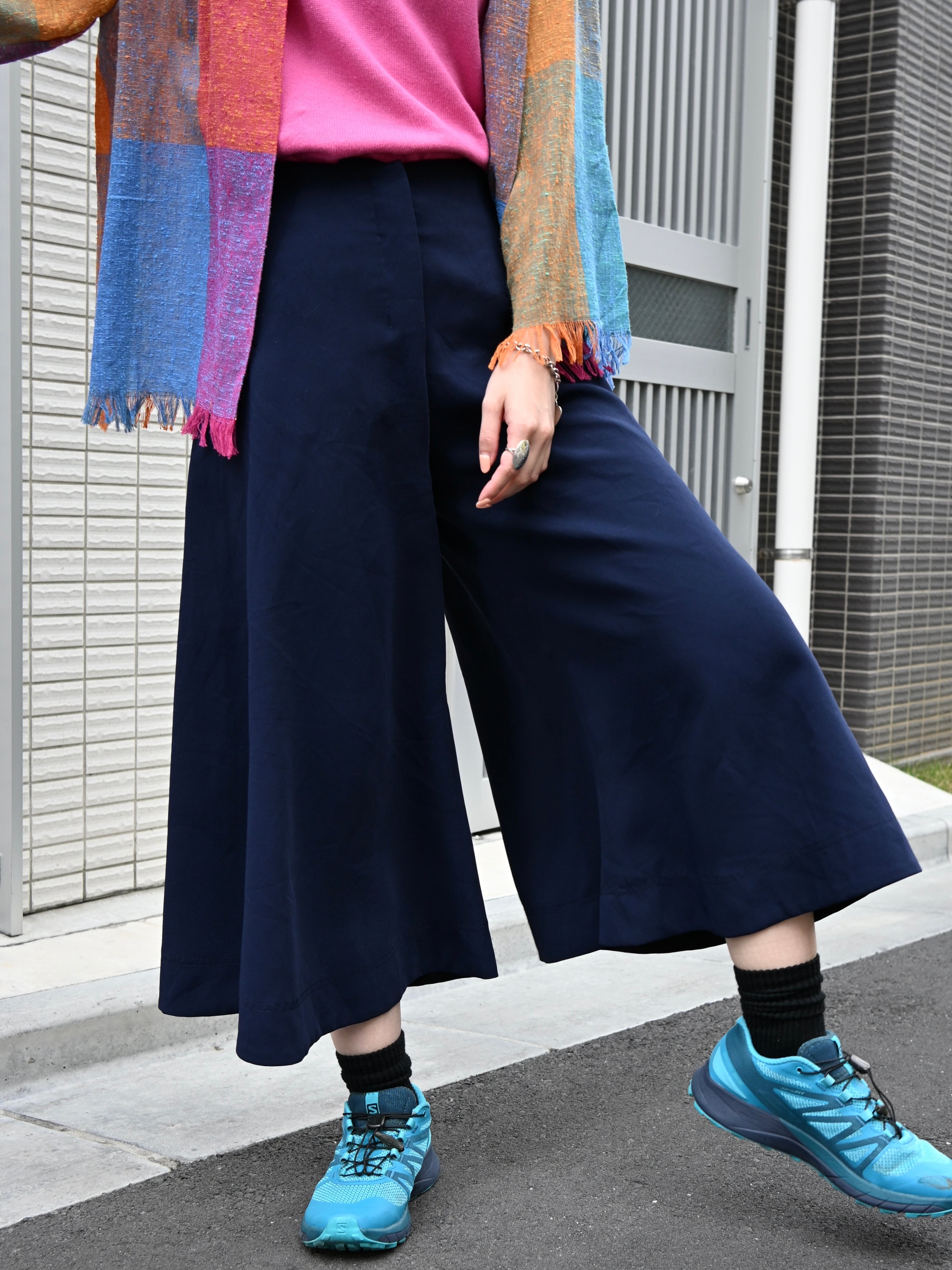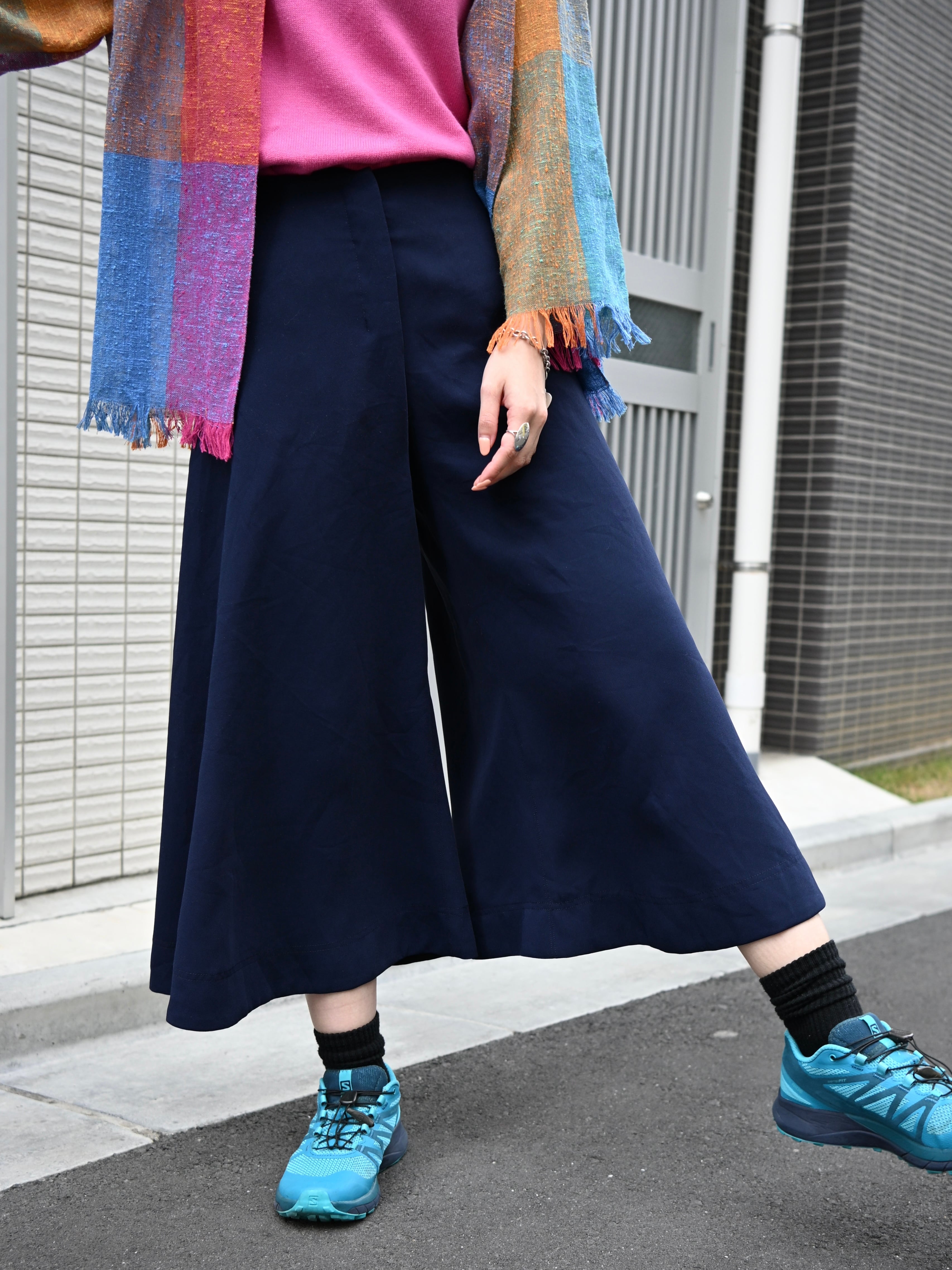 パッと見スカートに見えるほどのワイドでフレアなシルエットが魅力の一枚。