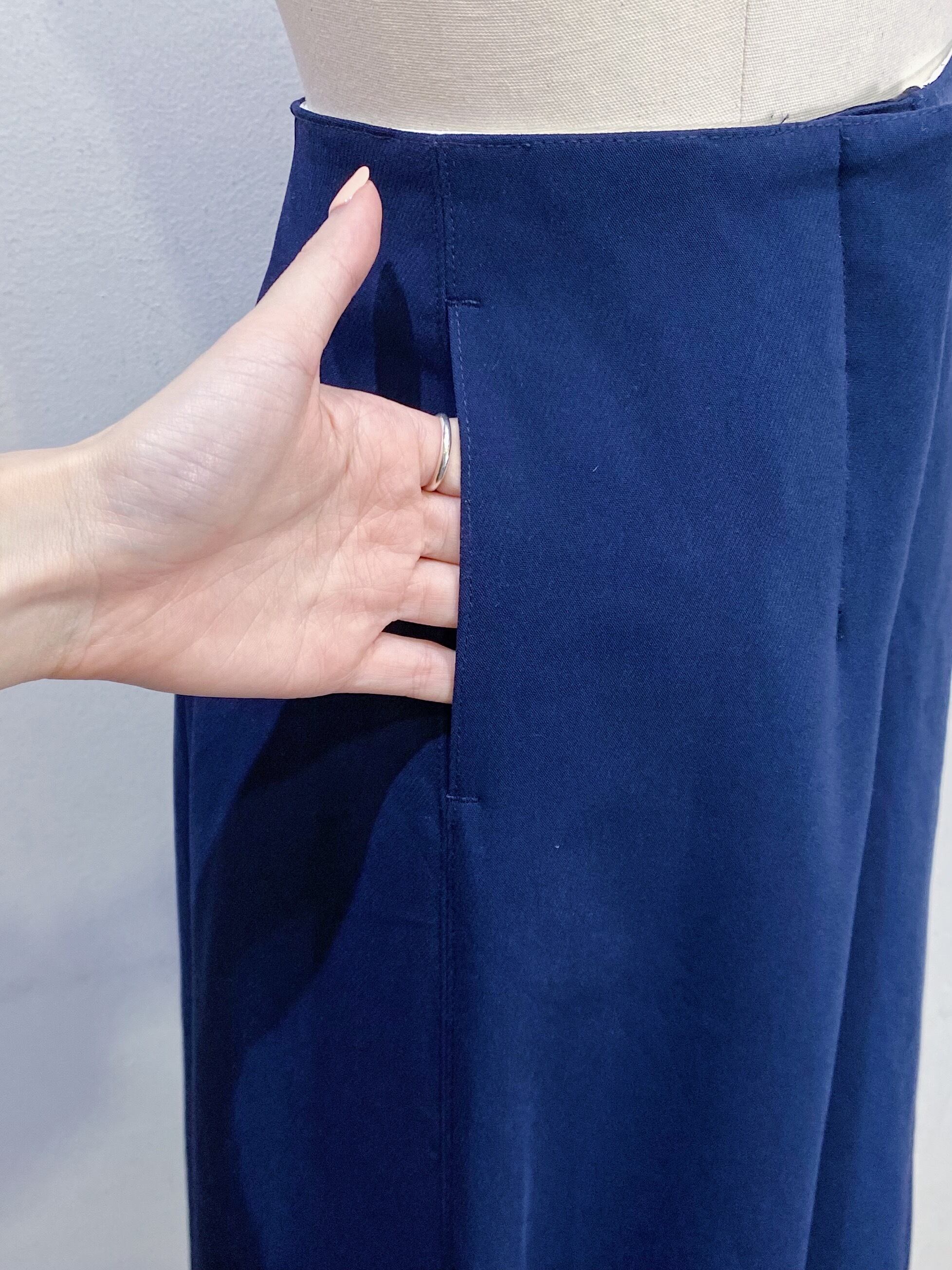 ネイビーカラーでコーディネートに取り入れやすい、パンツです。