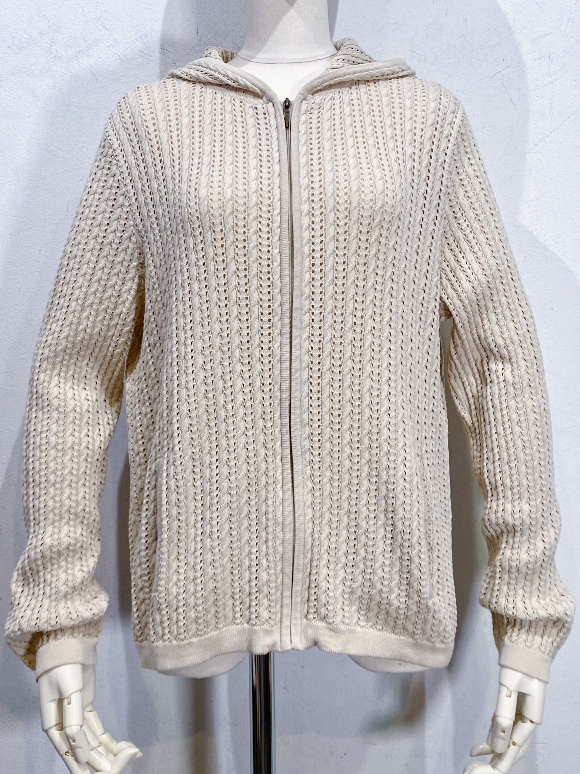 ベージュカラーで大変着こなしやすい、ジップアップフーディーです。