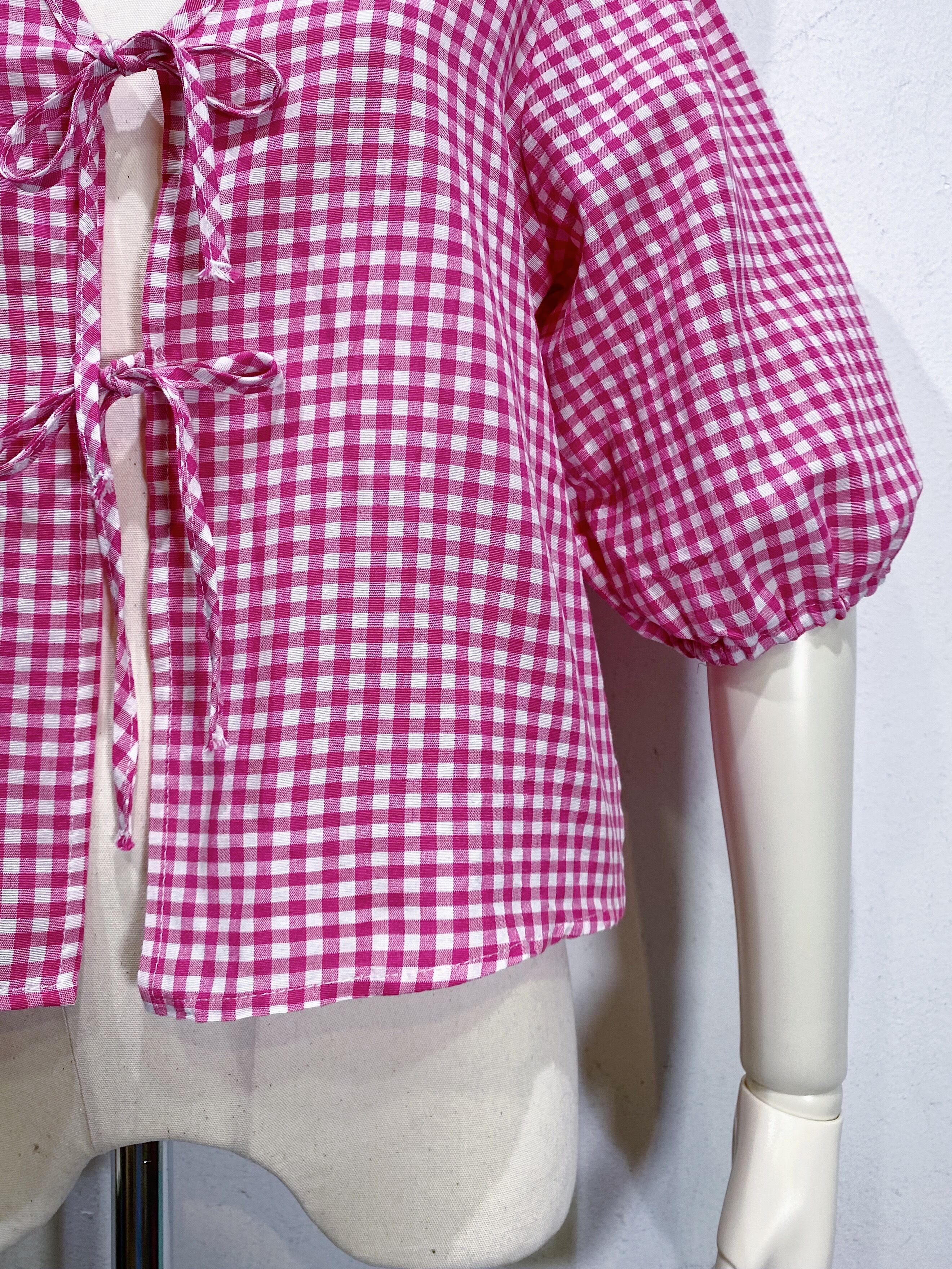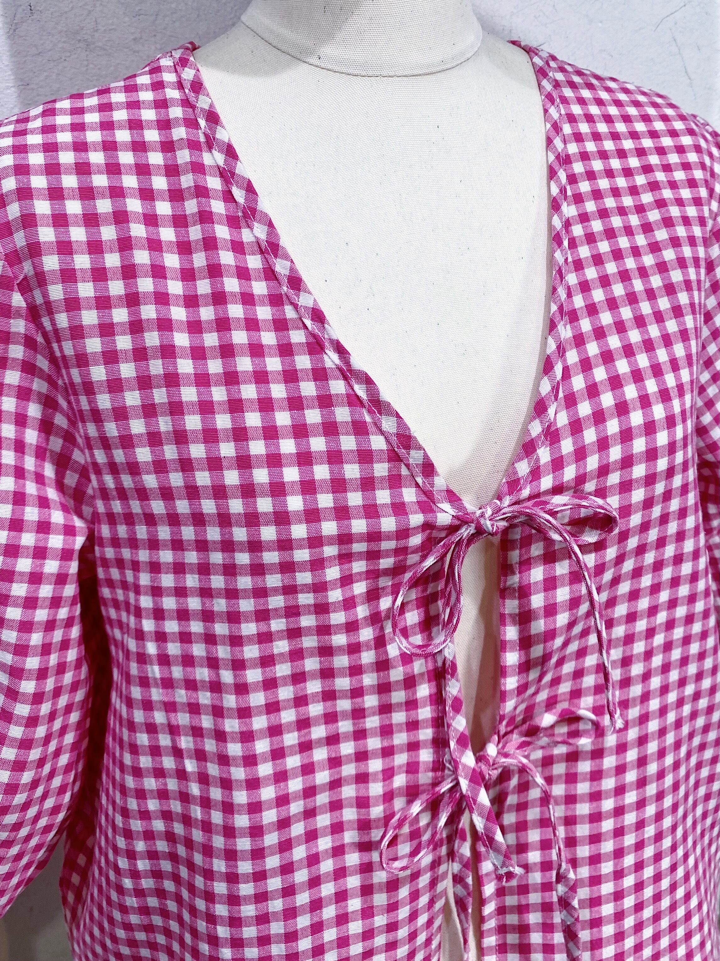 Pink and white gingham check ribbon cardigan【570】