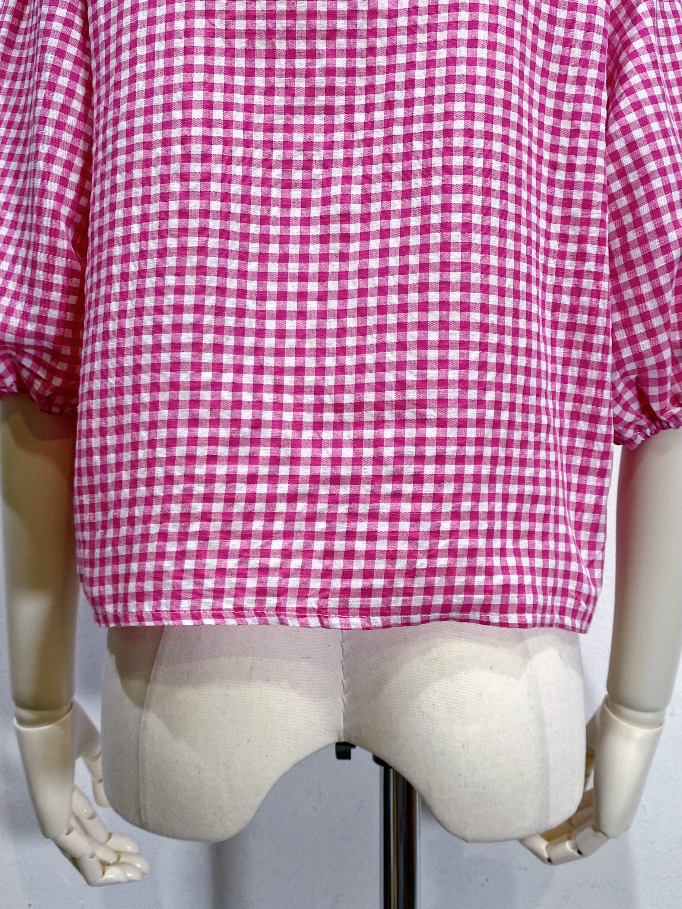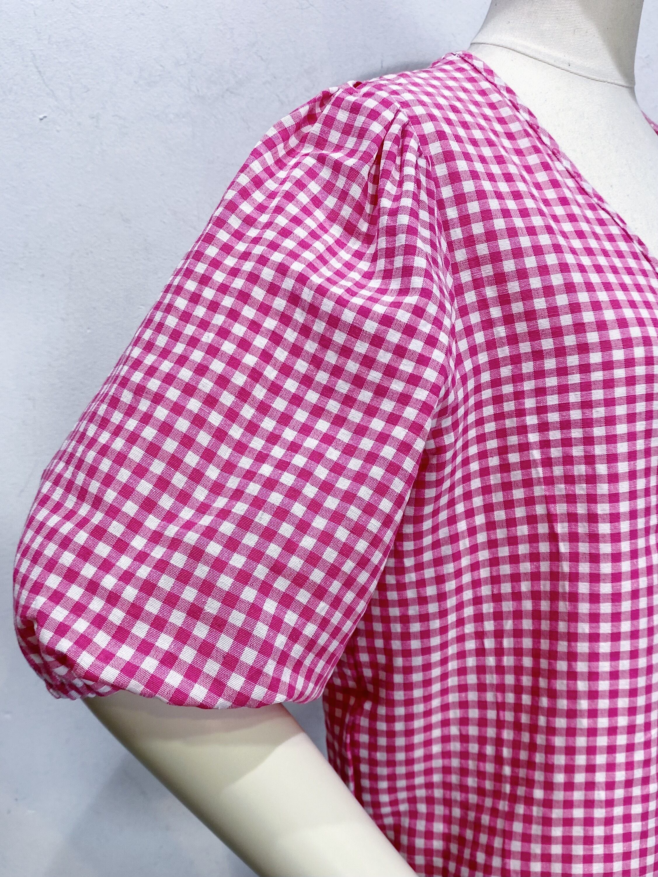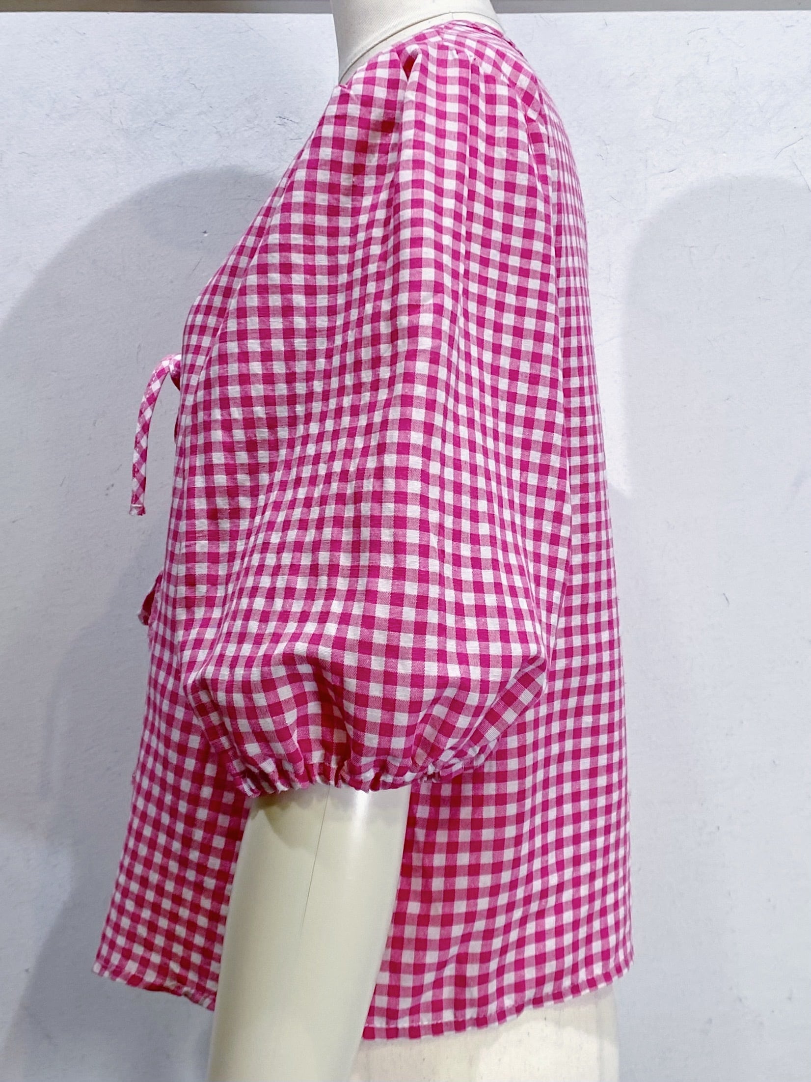 ピンク×ホワイトのギンガムチェックが可愛い、カーディガンです。