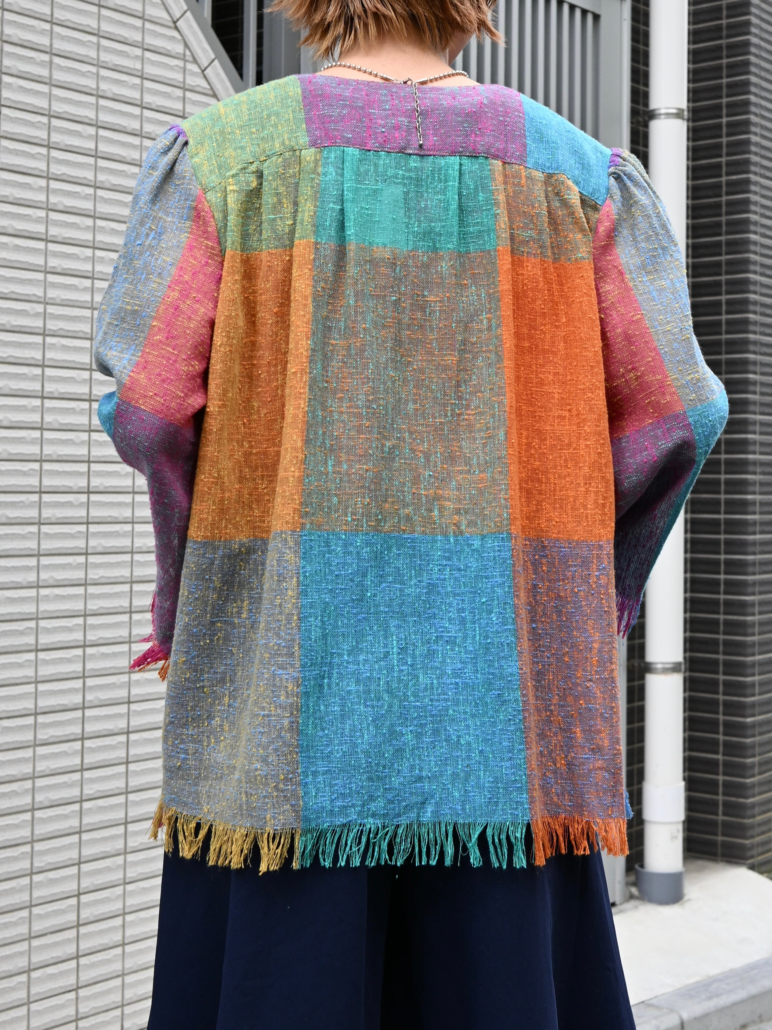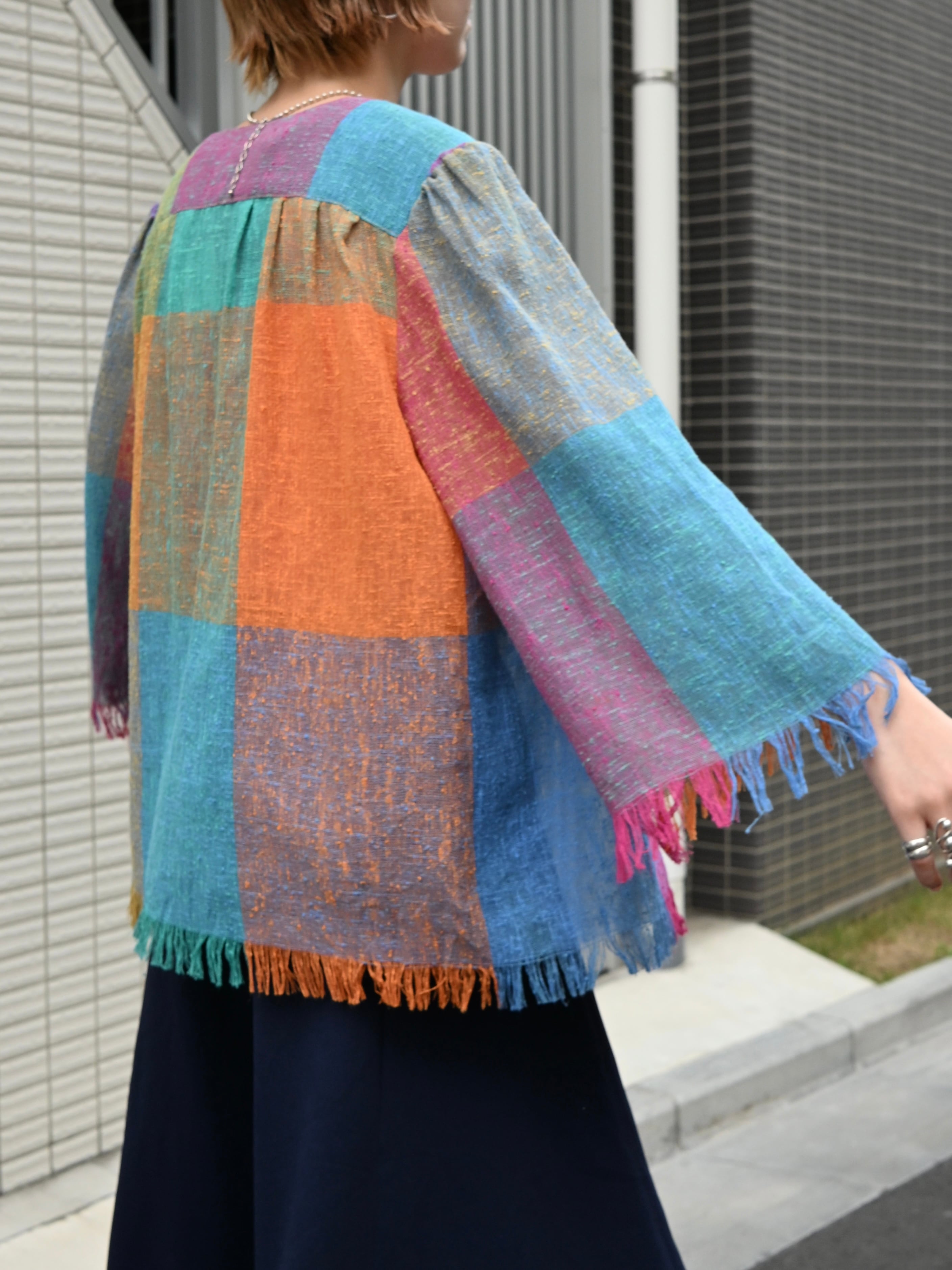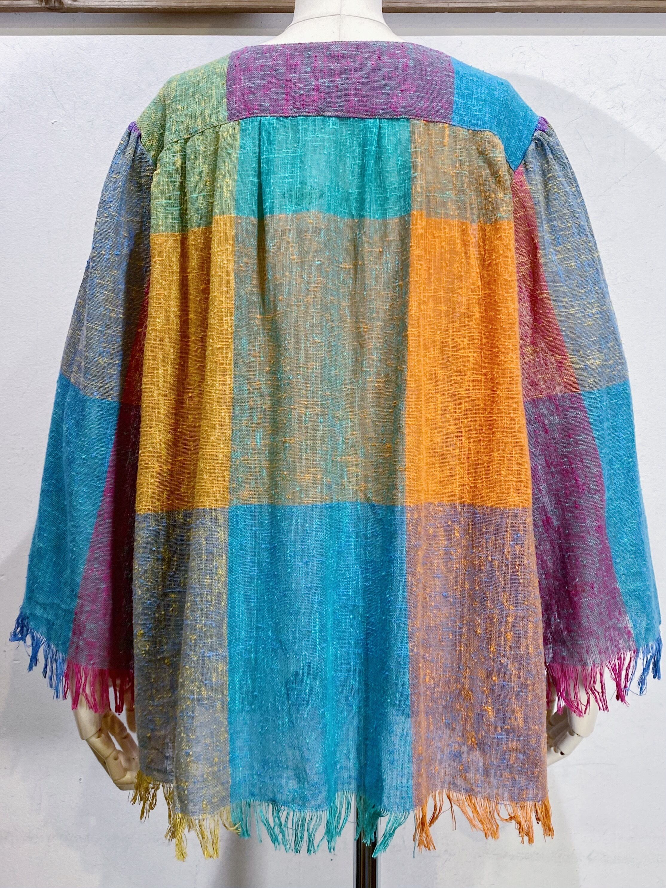 Colorful plaid fringe cardigan【830】