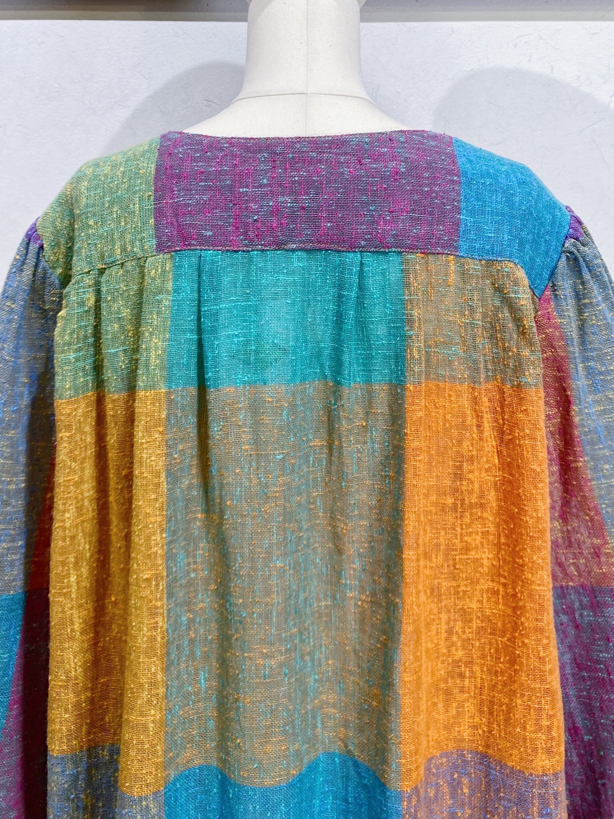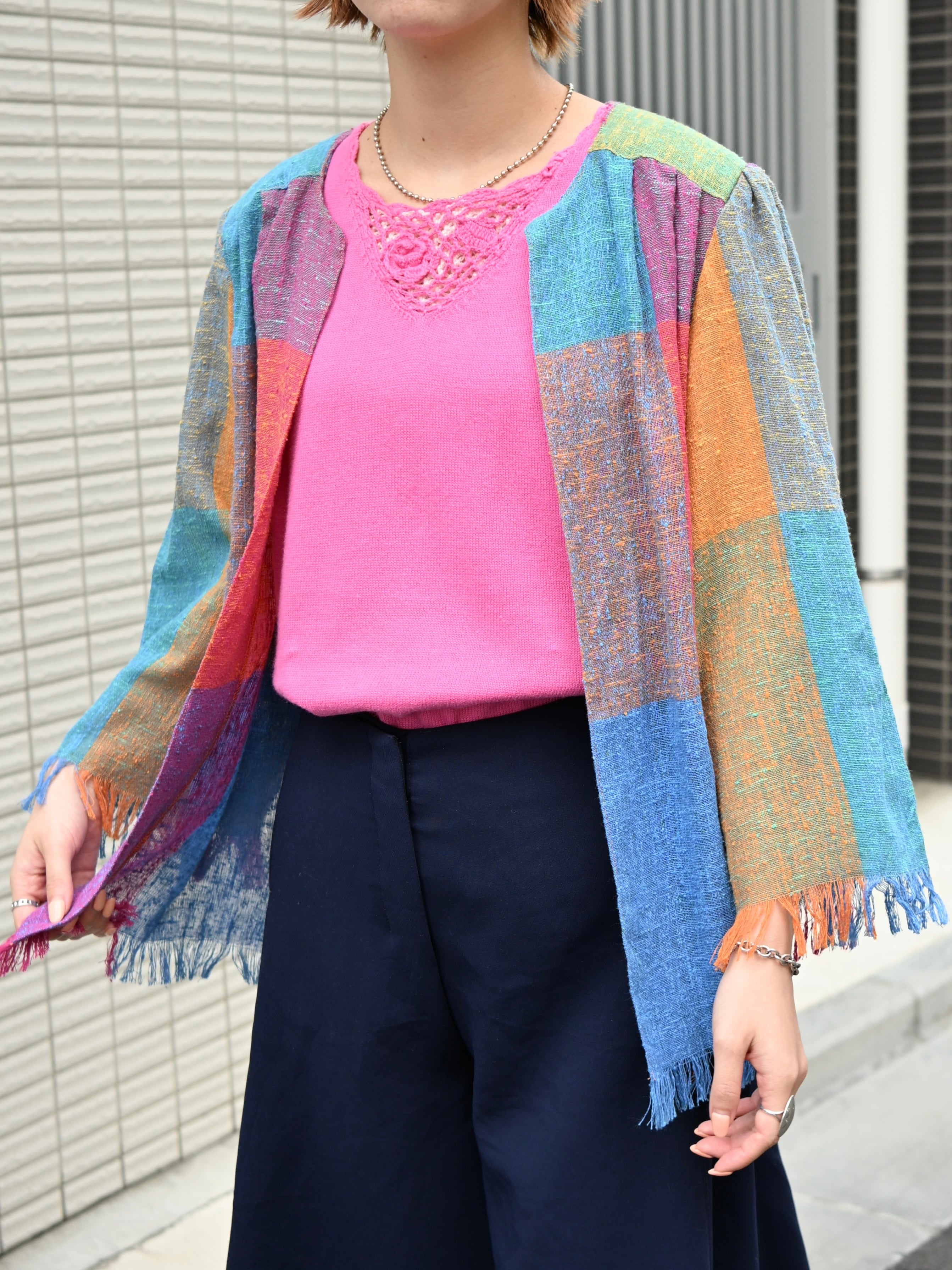 古着らしいカラフルな色合わせのチェックが可愛い、カーディガンです。