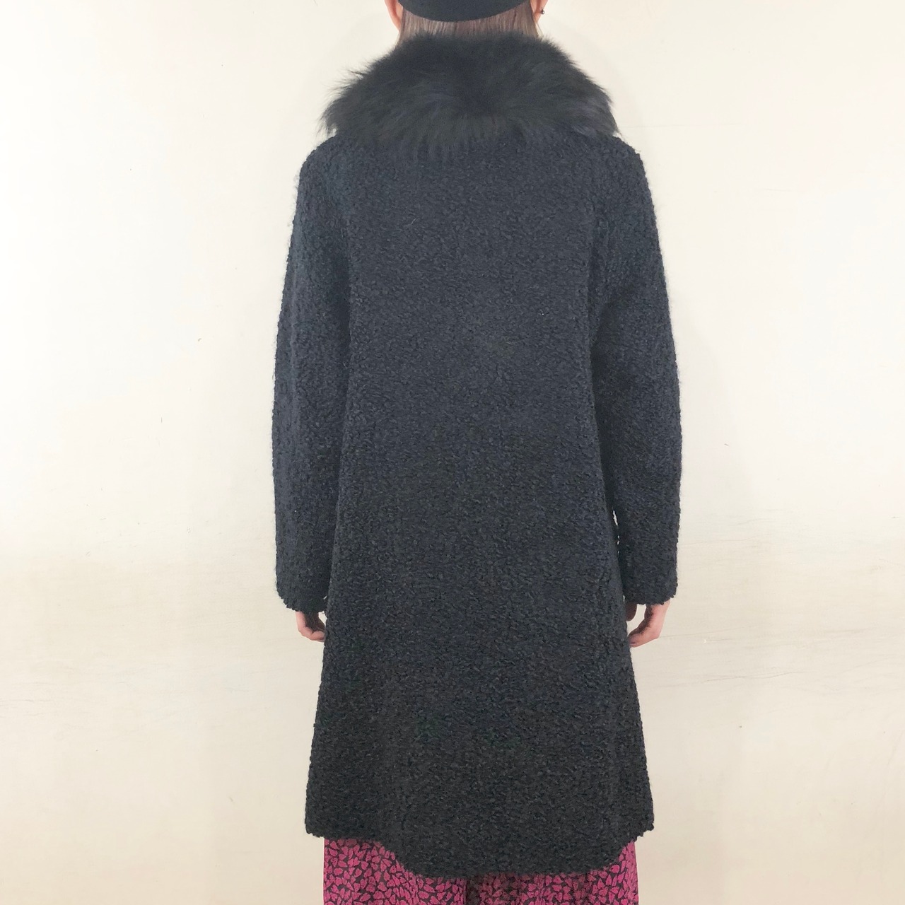 毛足が長い襟が付いていて、上品でクラシックな印象の一枚です。