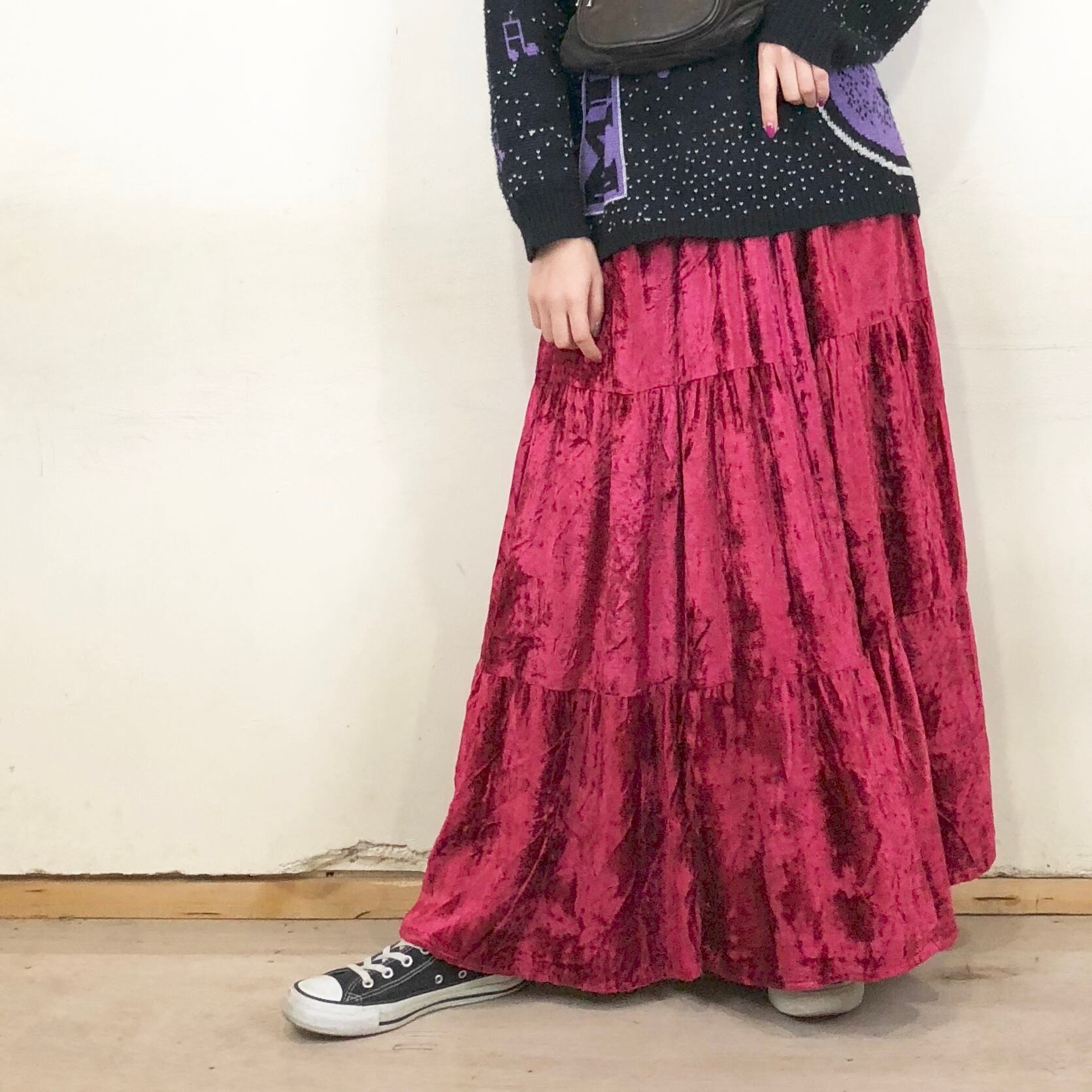ベロア素材にティアードデザインが可愛いロングスカートです。