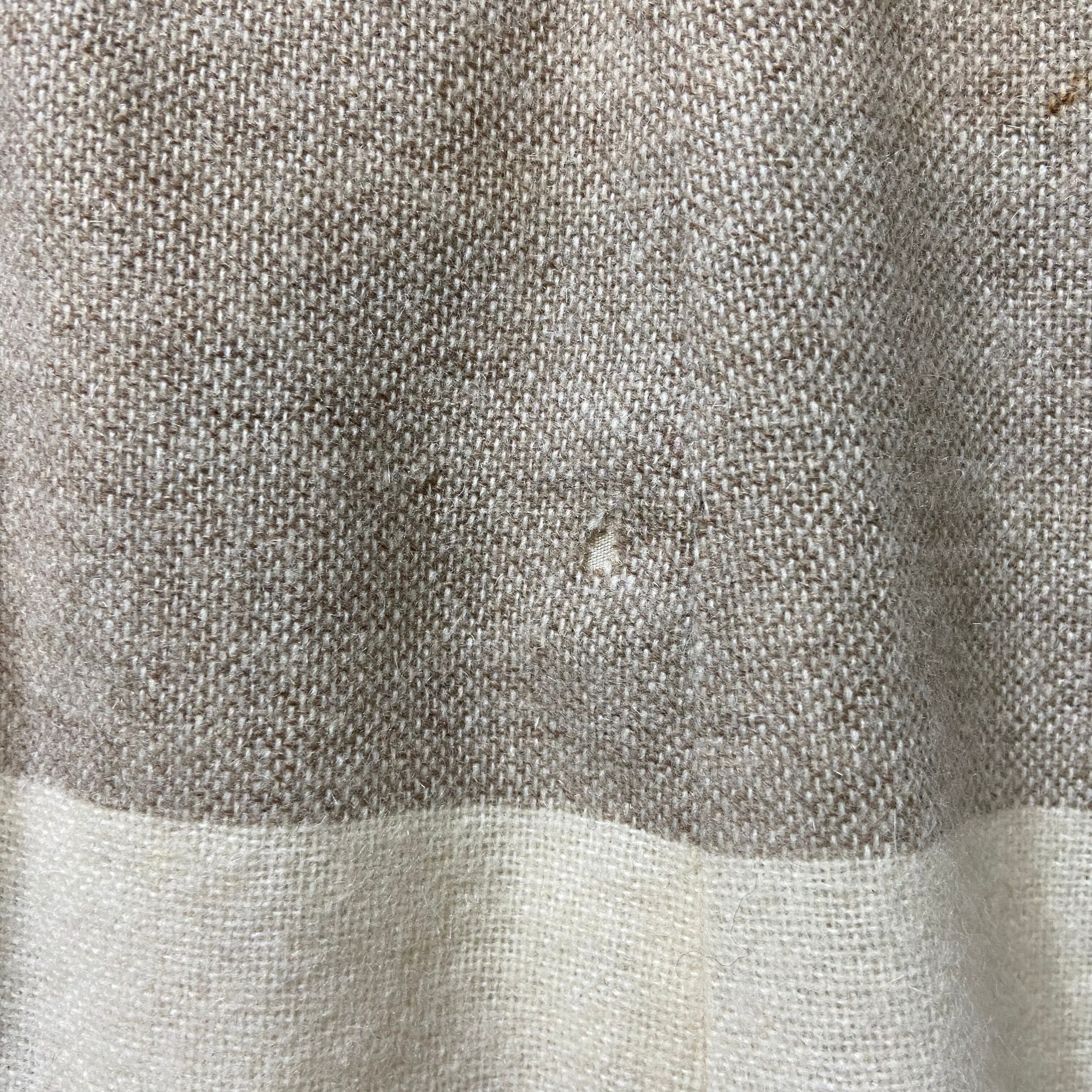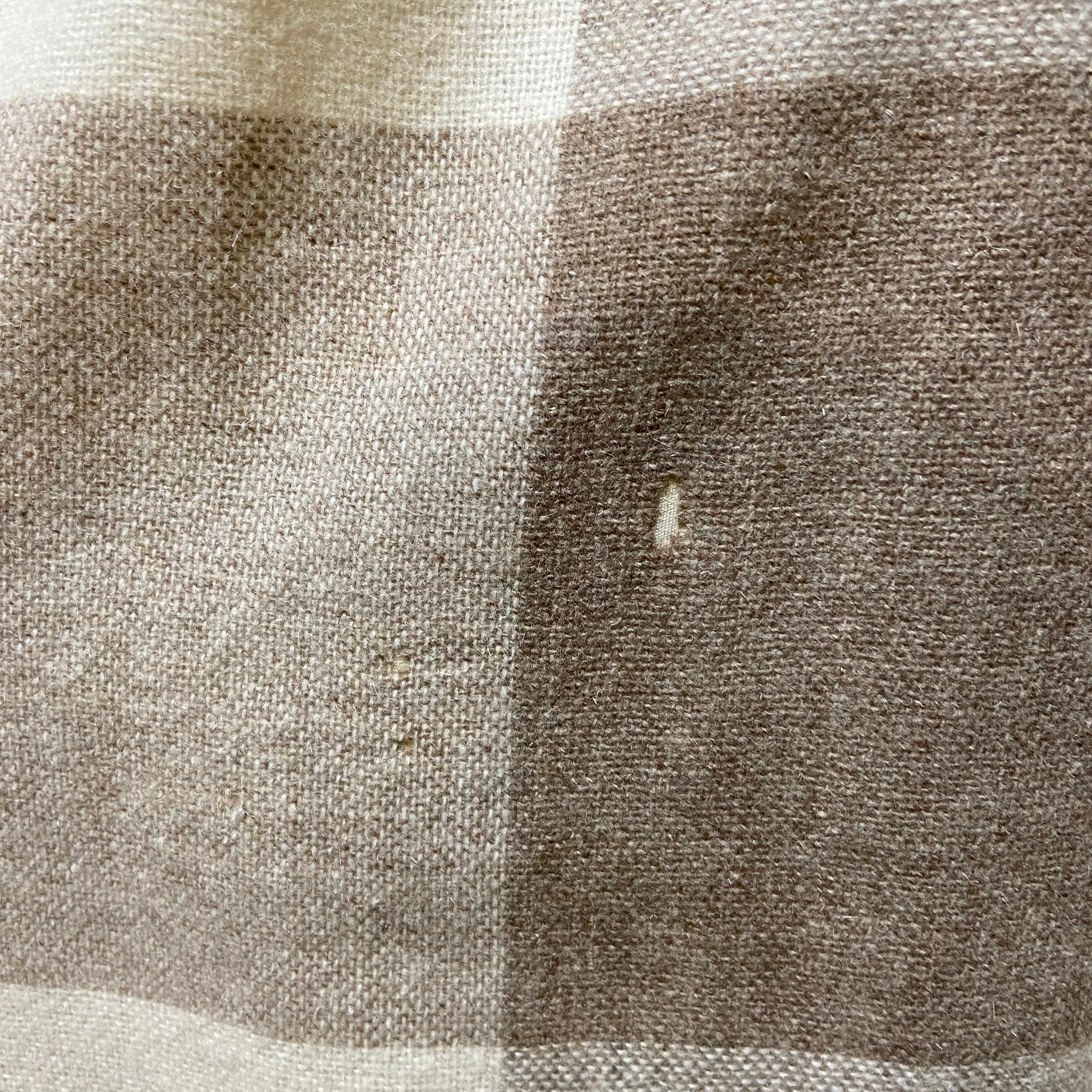 小さな穴を裏から接着芯で塞いだ跡が見受けられますが、あまり目立たないかと思います。