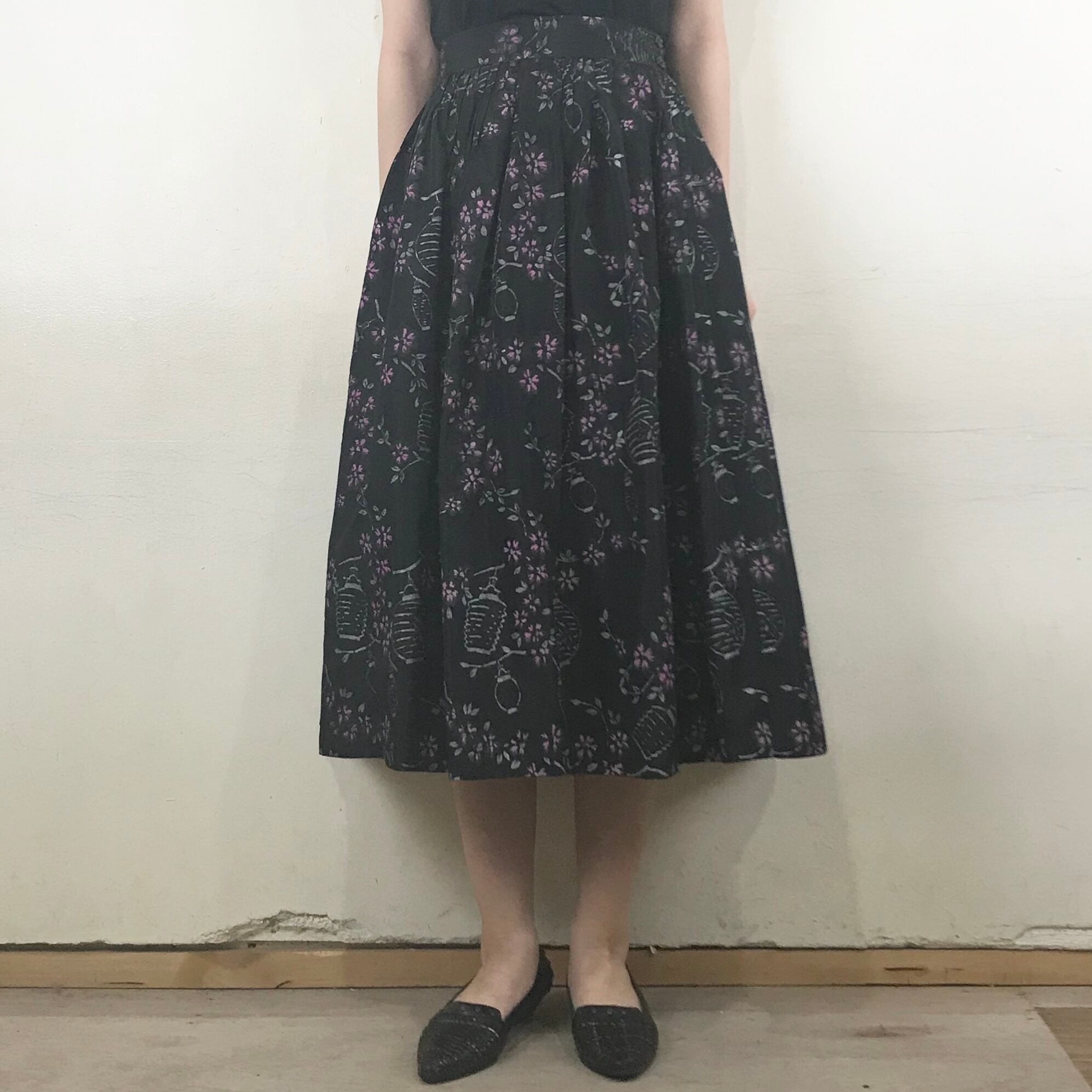 アセテート地に桜や提灯が並ぶ、ジャポニズムが感じられる50年代スカート。