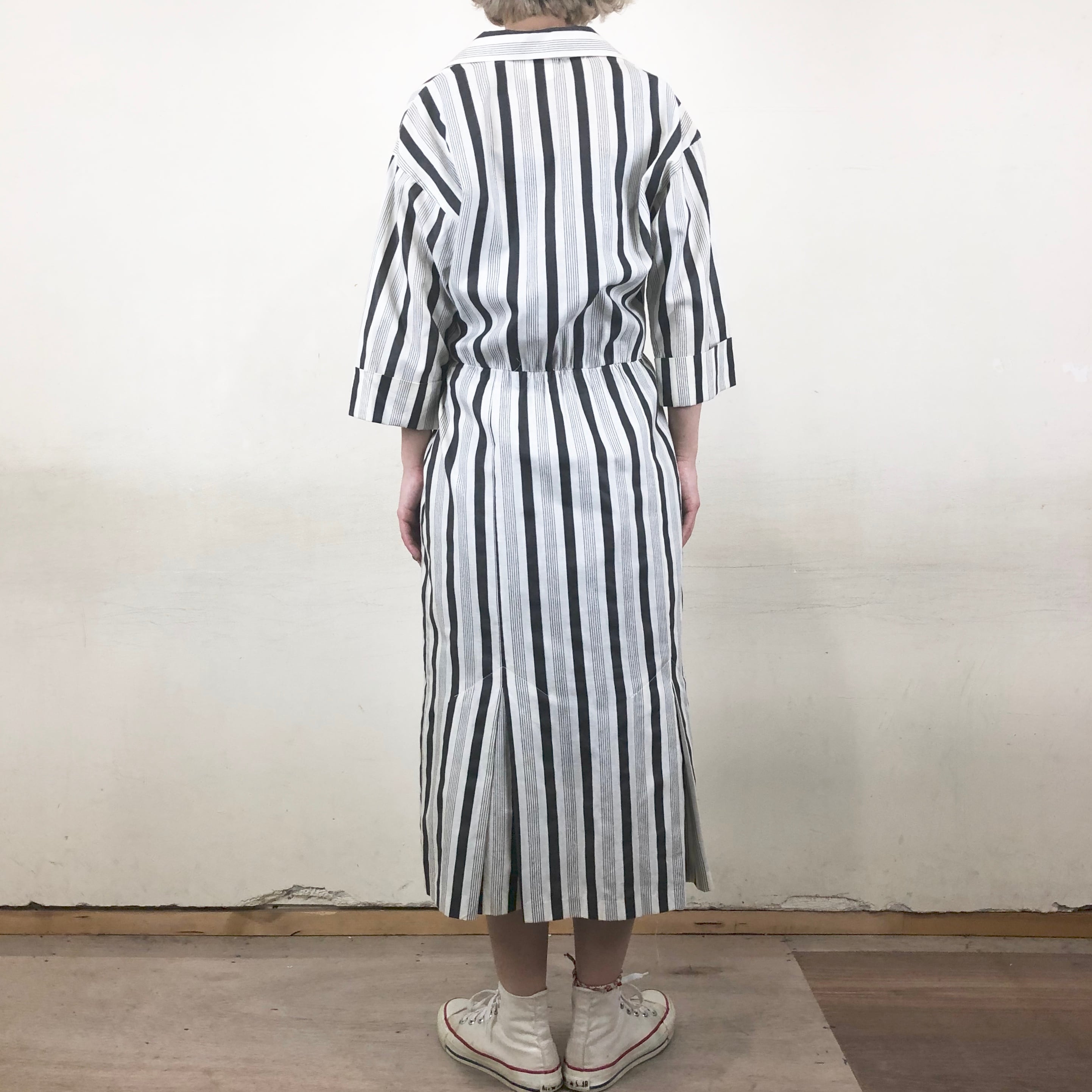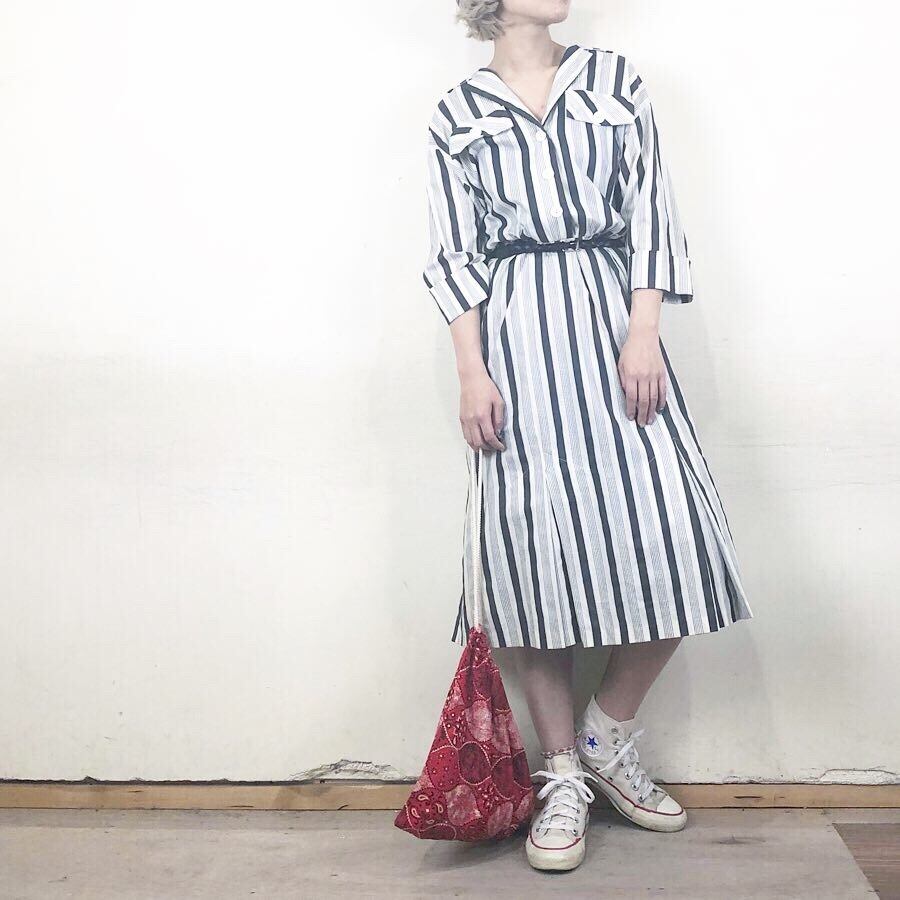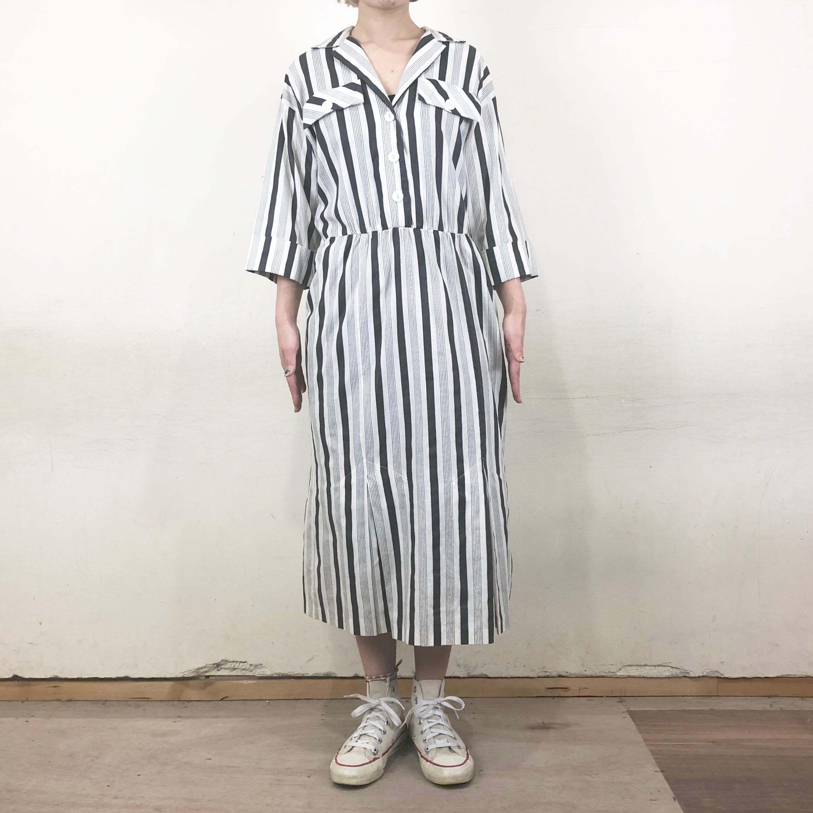 グレーとホワイトのシンプルで着こなしやすそうなシャツワンピースです。