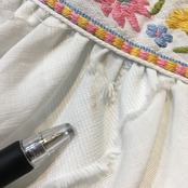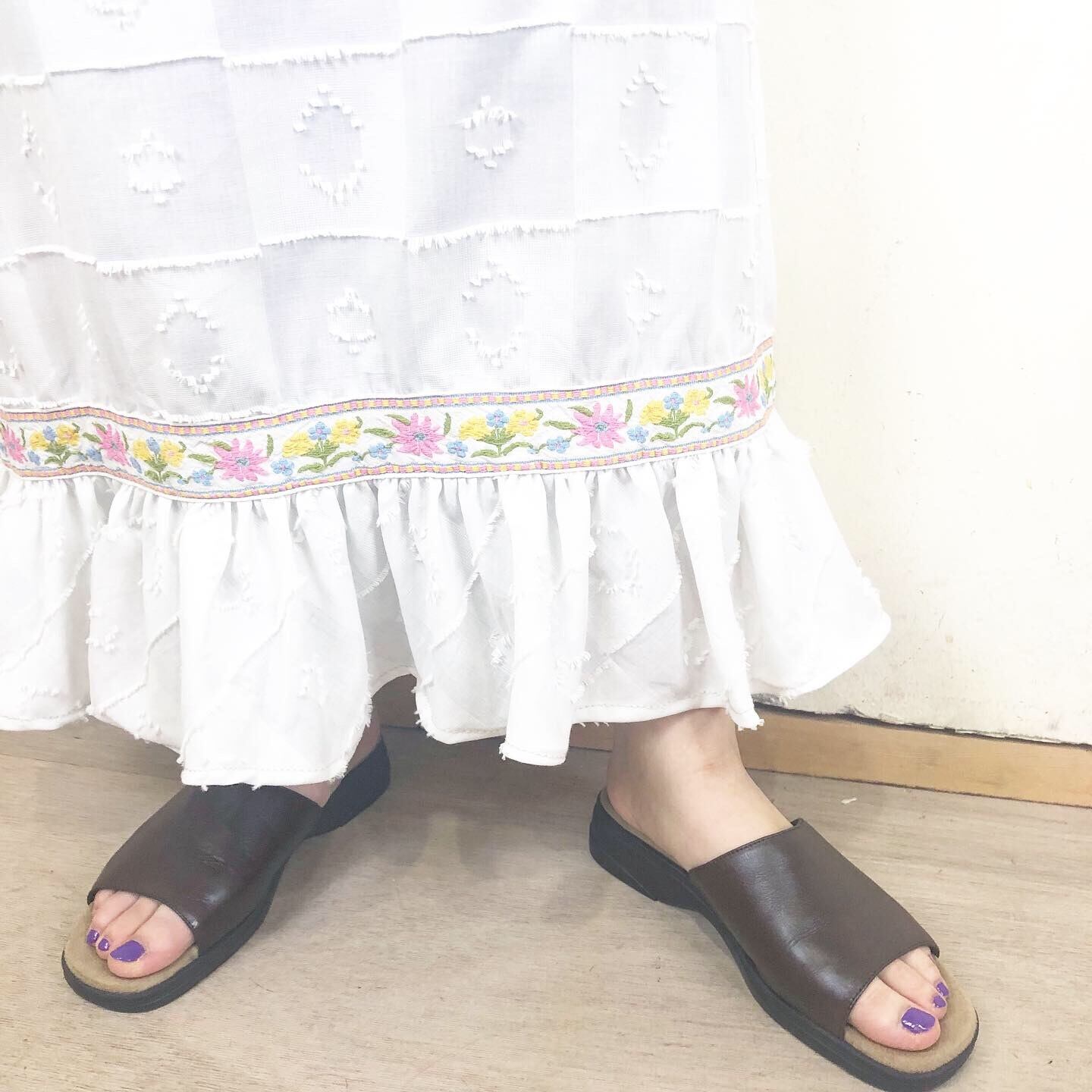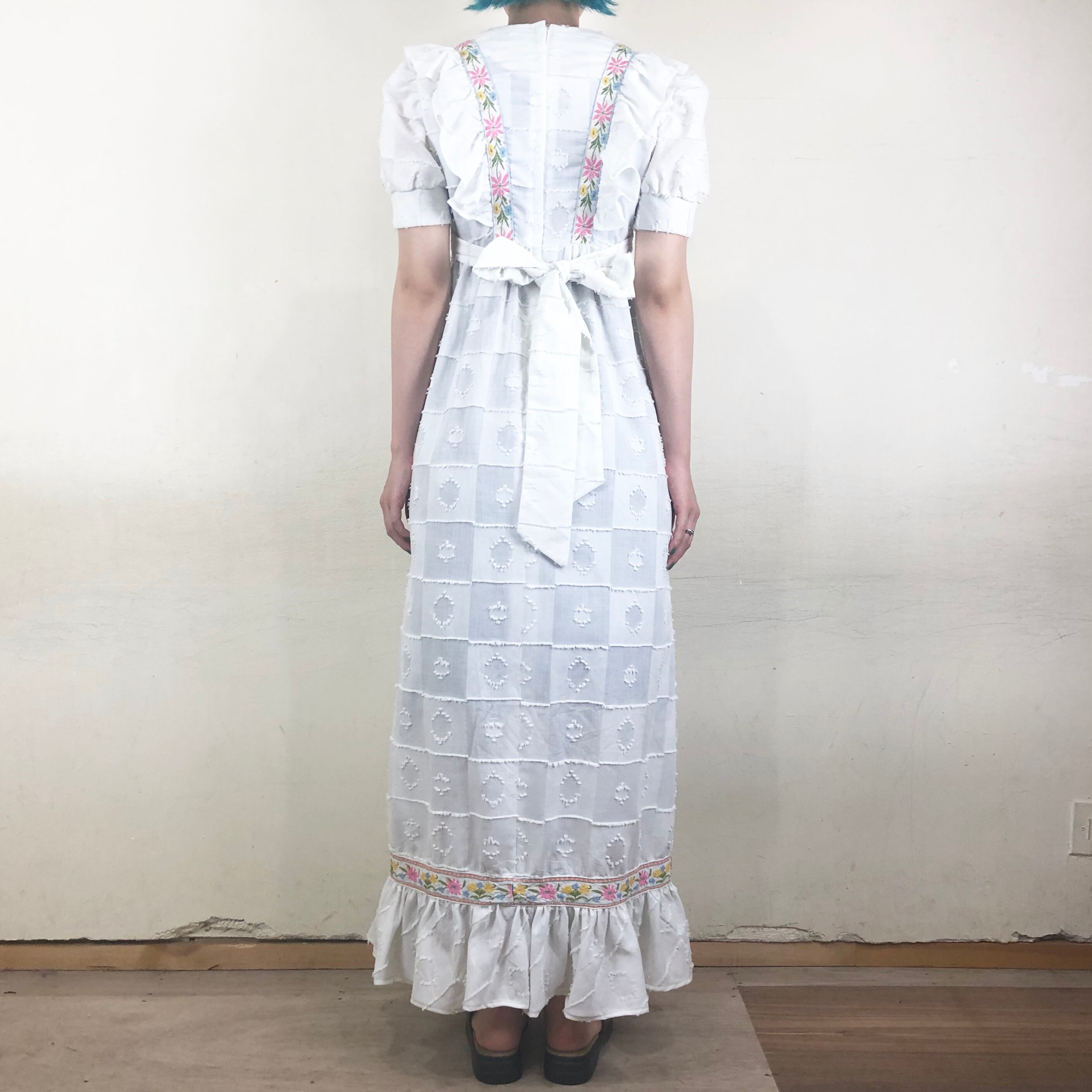 胸元のパステルカラーなお花刺繍が可愛い、70年代ワンピースです。