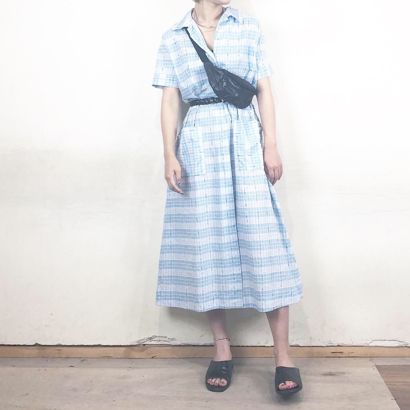 50年代らしい古い雰囲気のチェックパターンが可愛い、シャツワンピースです。