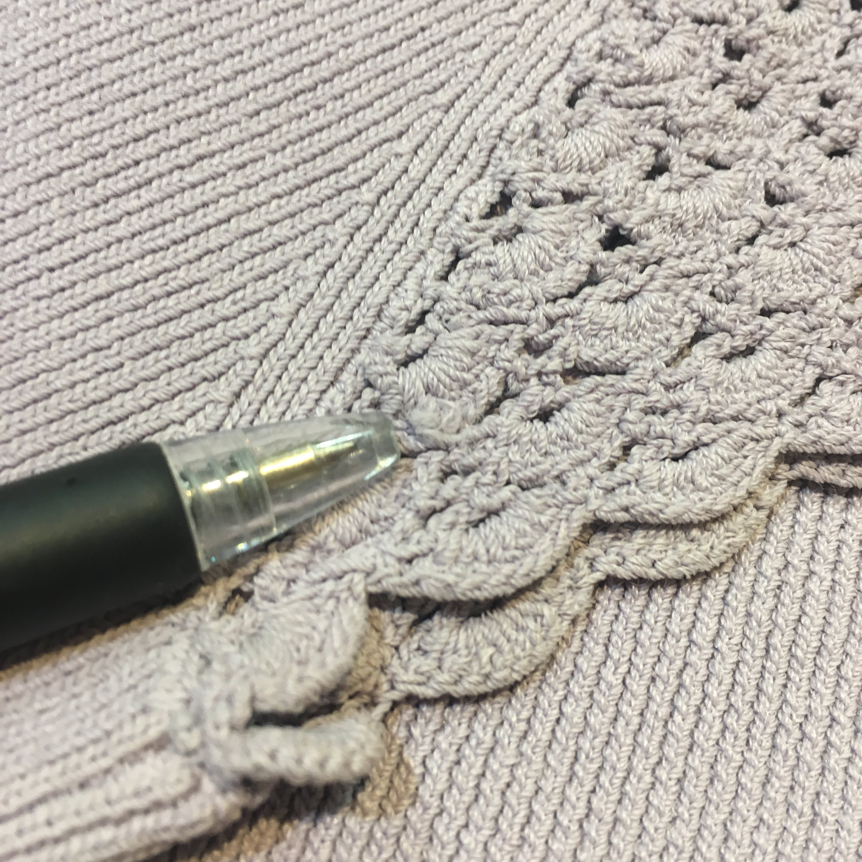 肩のカギ編み部分がほつれている様な跡が見受けられますが、あまり目立たず仕様上特に問題ありません。