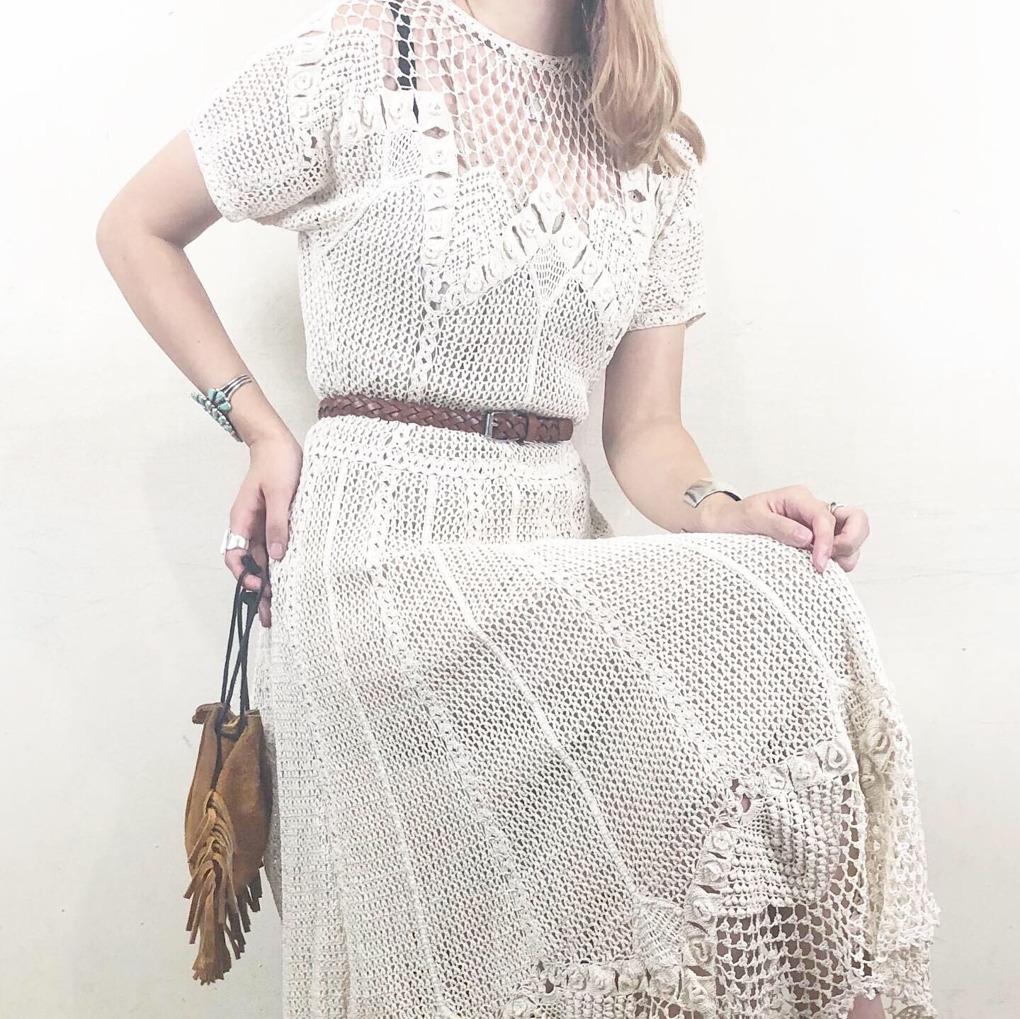 また写真ではインナーにベージュのペチコートを書かせていますが、下にキャミ+デニムなどを着て、クロシェ特有の透け感を楽しむ着こなしもオススメです。