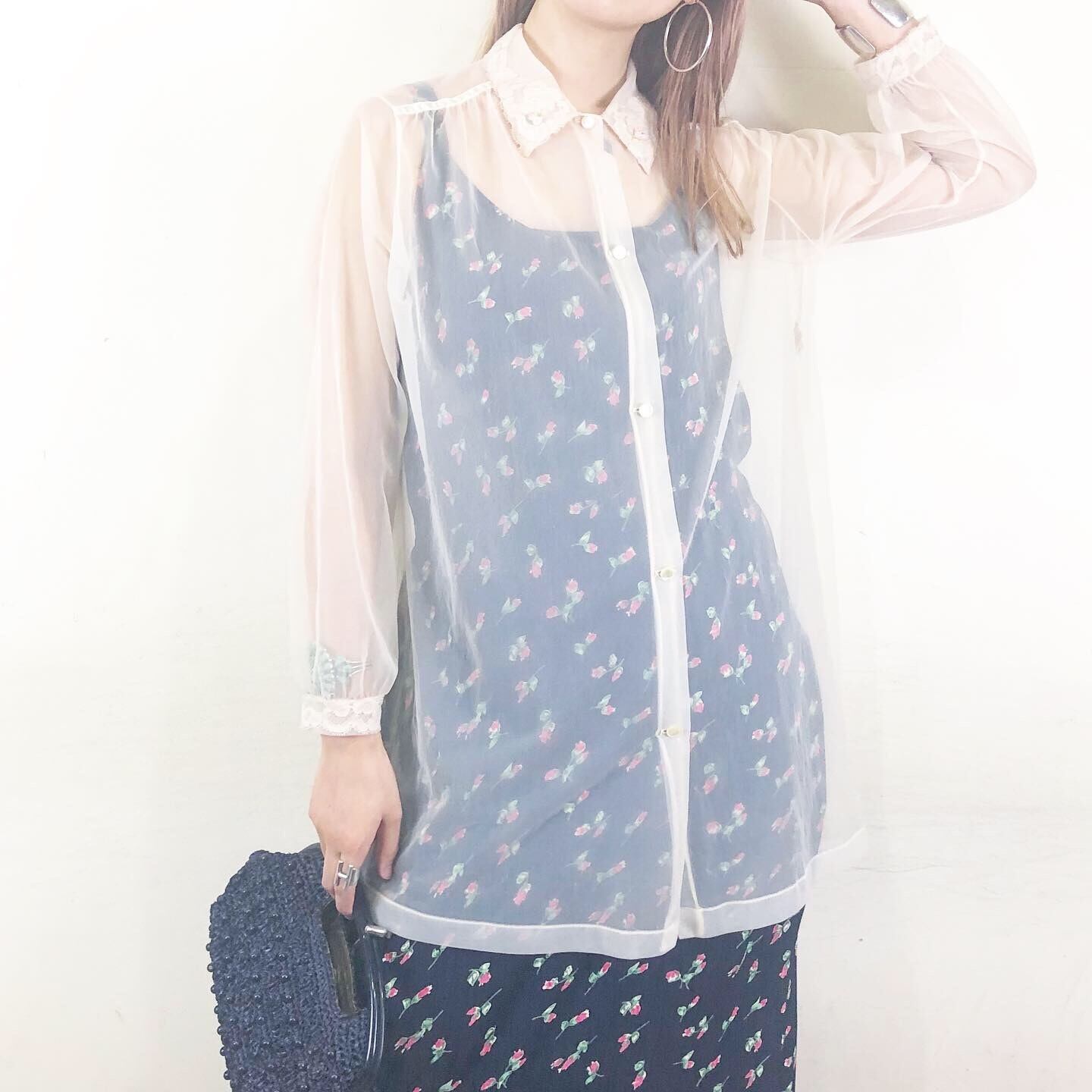 えりの小さなお花が可愛い60年代のシースルーシャツです。