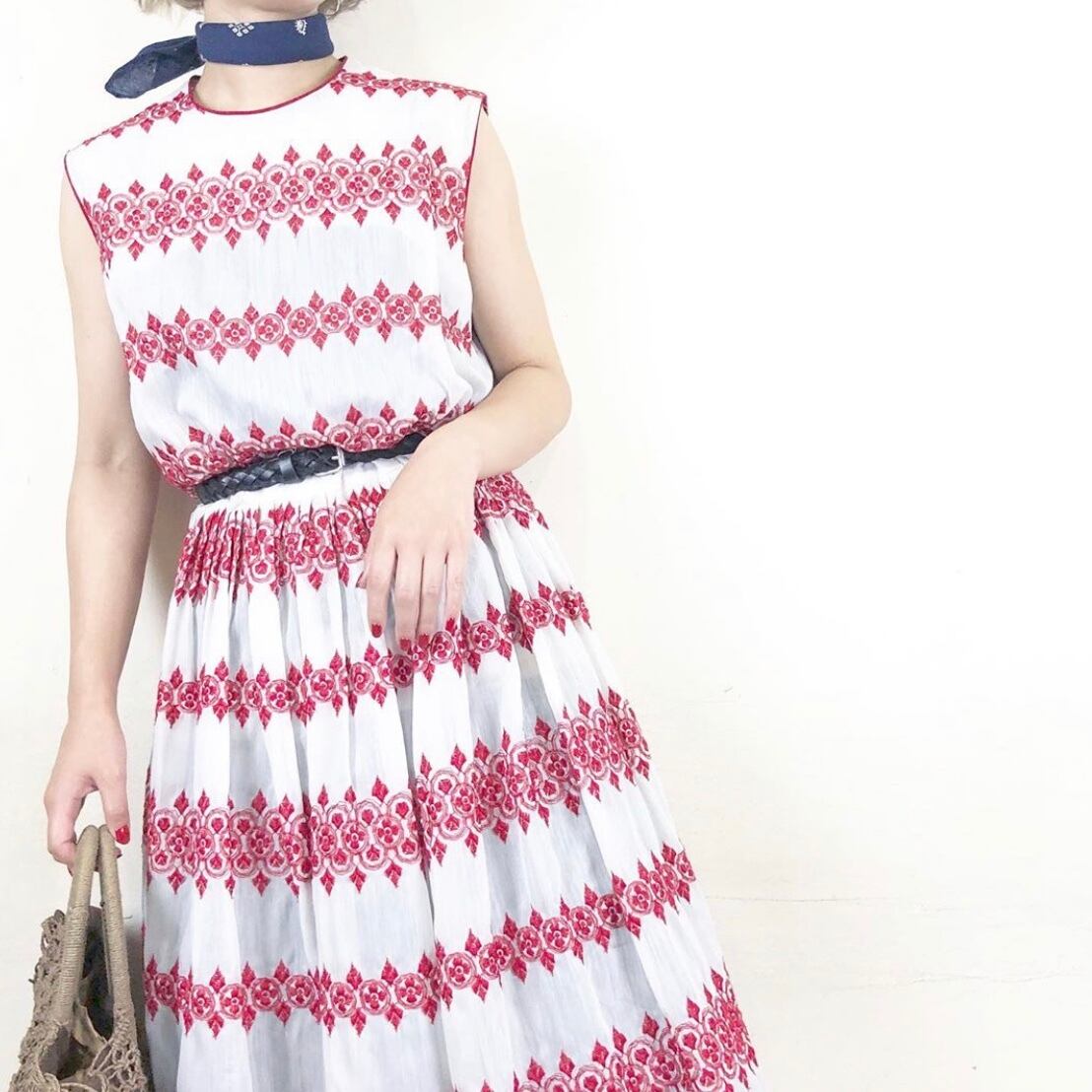 白地に赤い刺繍が可愛い50年代のサマーワンピースです。