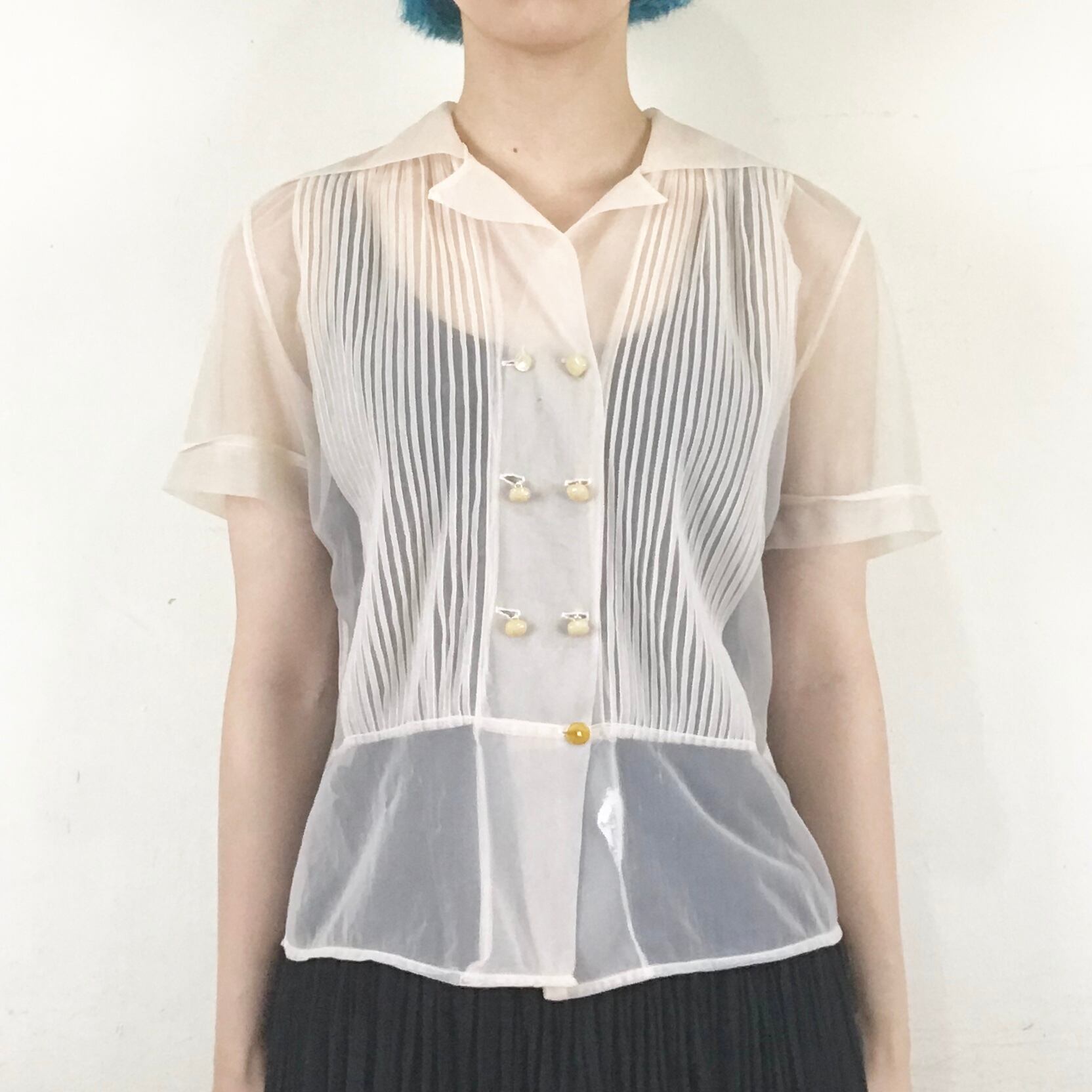 スタンダードなコーディネートはもちろん、下にロゴTや柄物を忍ばせて、透け感を生かした着方もできます。