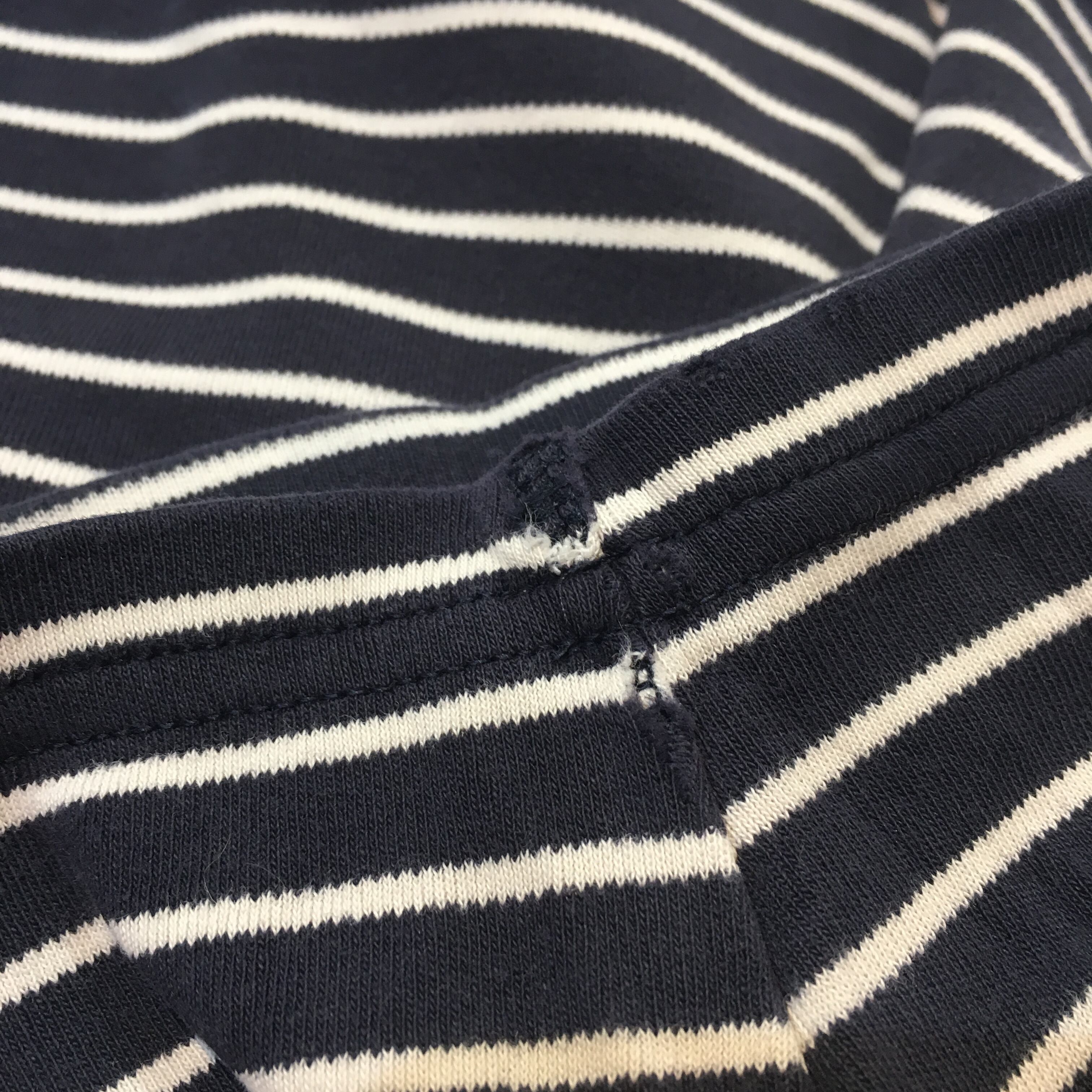 袖口下部分、裾部分に小さな穴のようなものが見受けられますが、貫通しておらずあまり目立たないかと思われます。