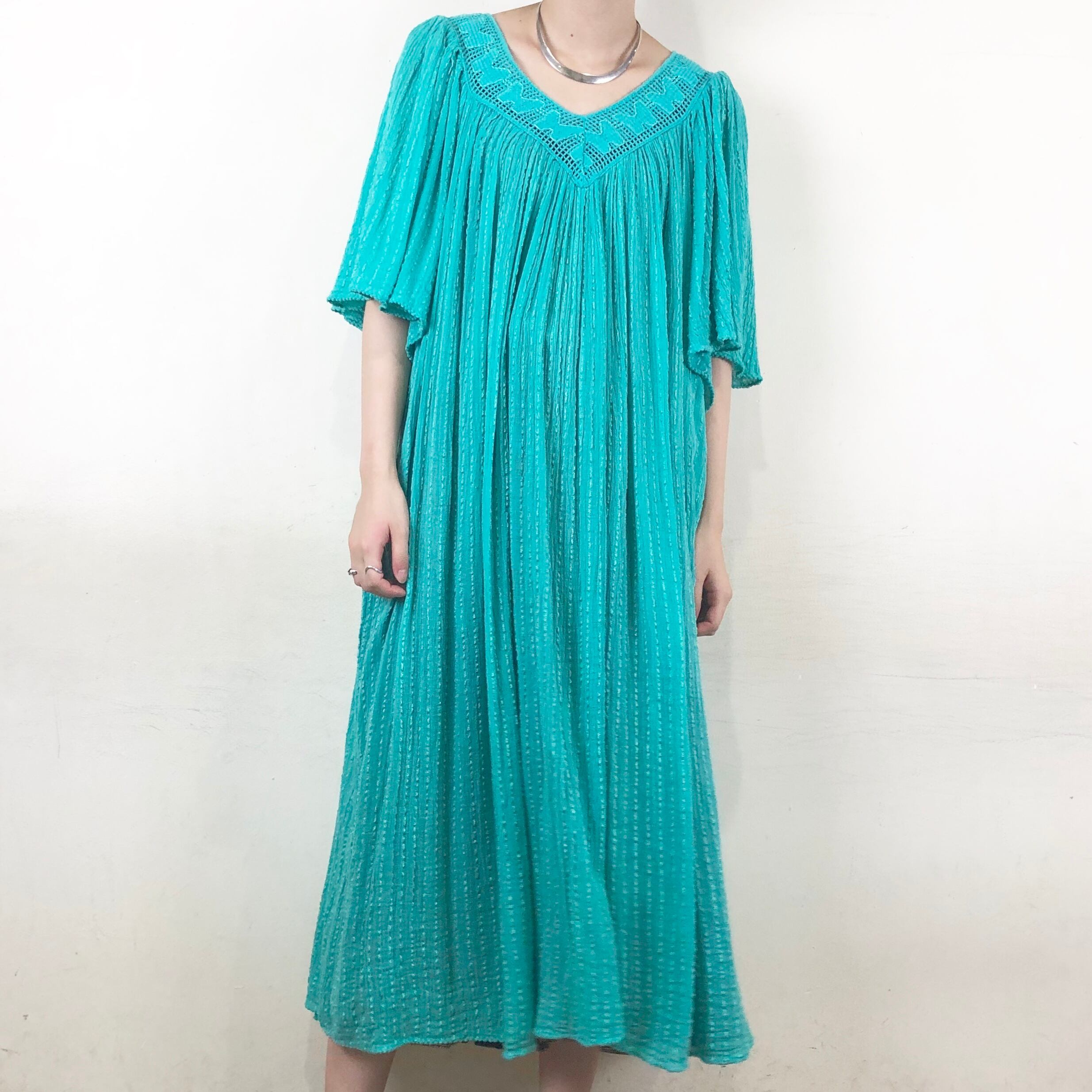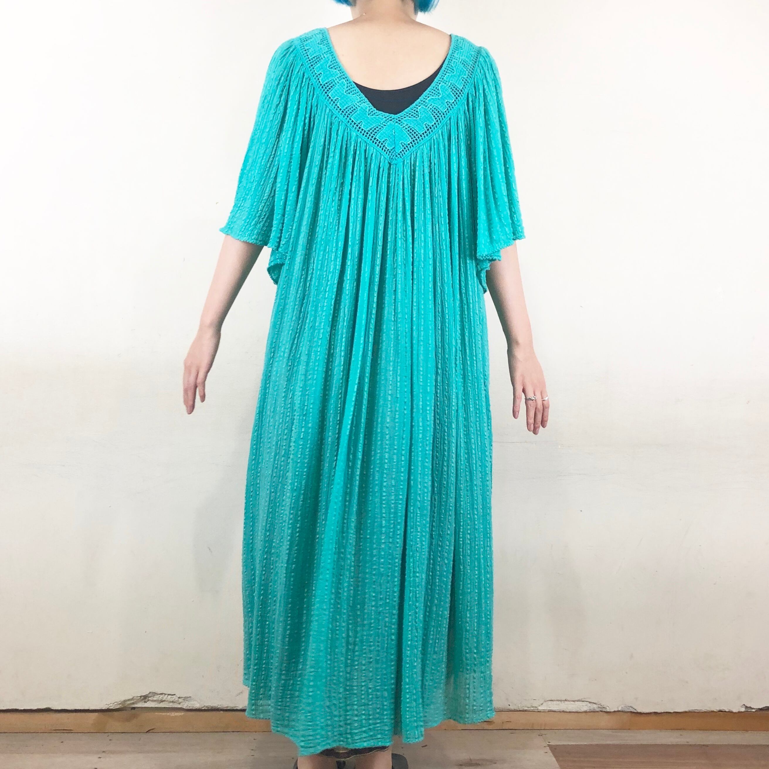 首回りの蝶々のカギ編みが可愛いギリシャワンピースです。