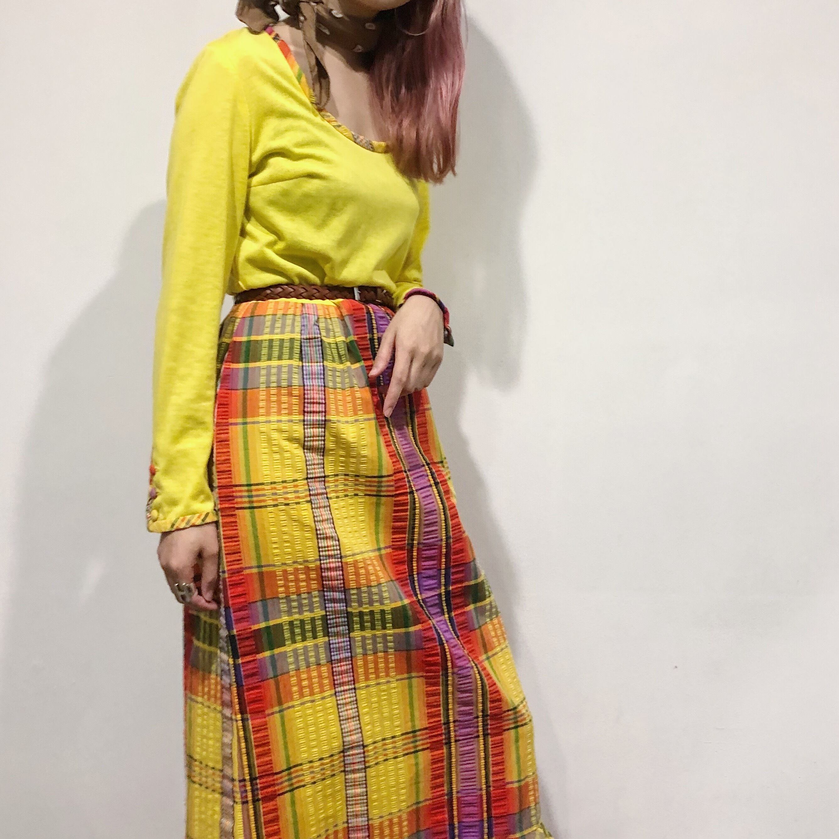 ハッピーなカラーリングがかわいい70年代ワンピースです