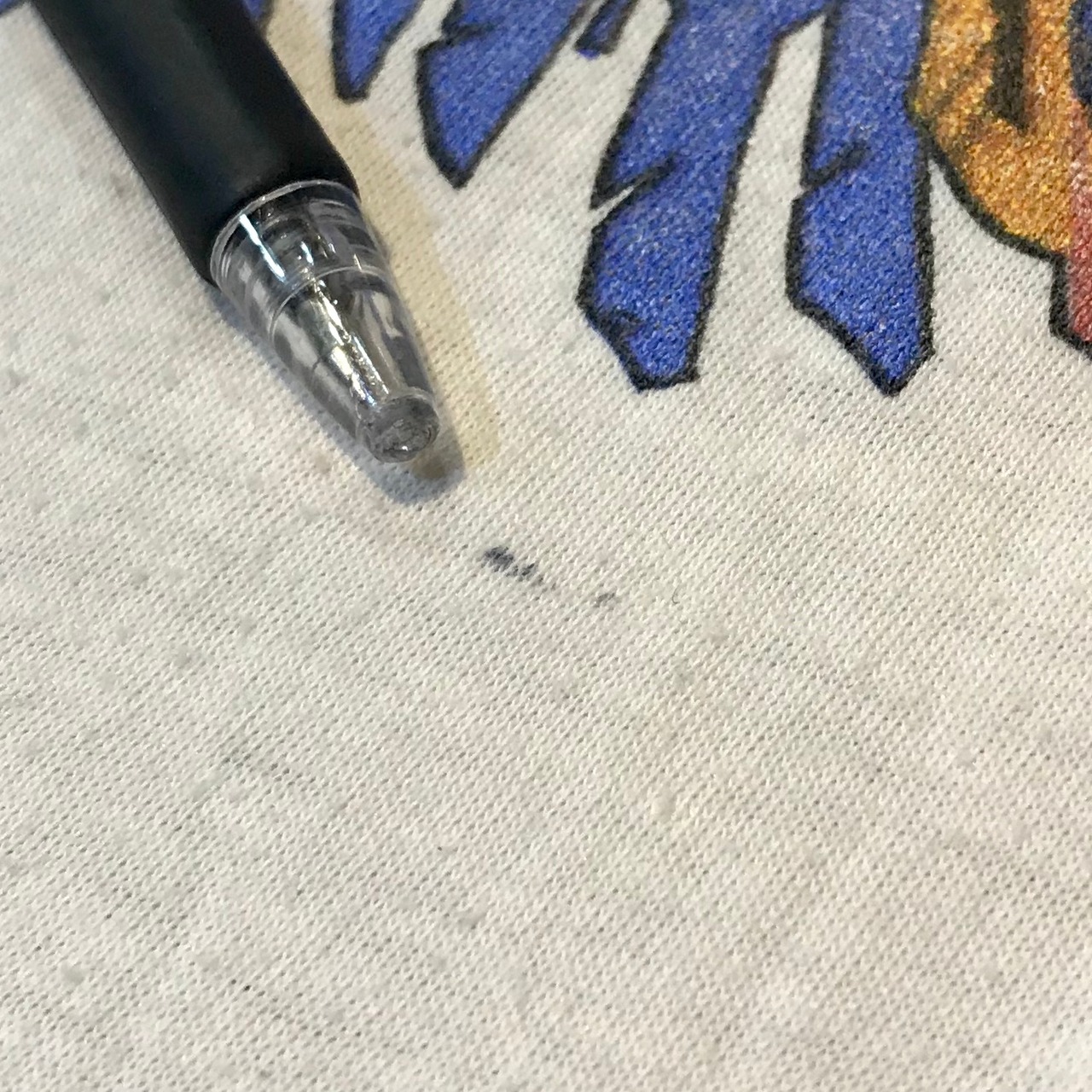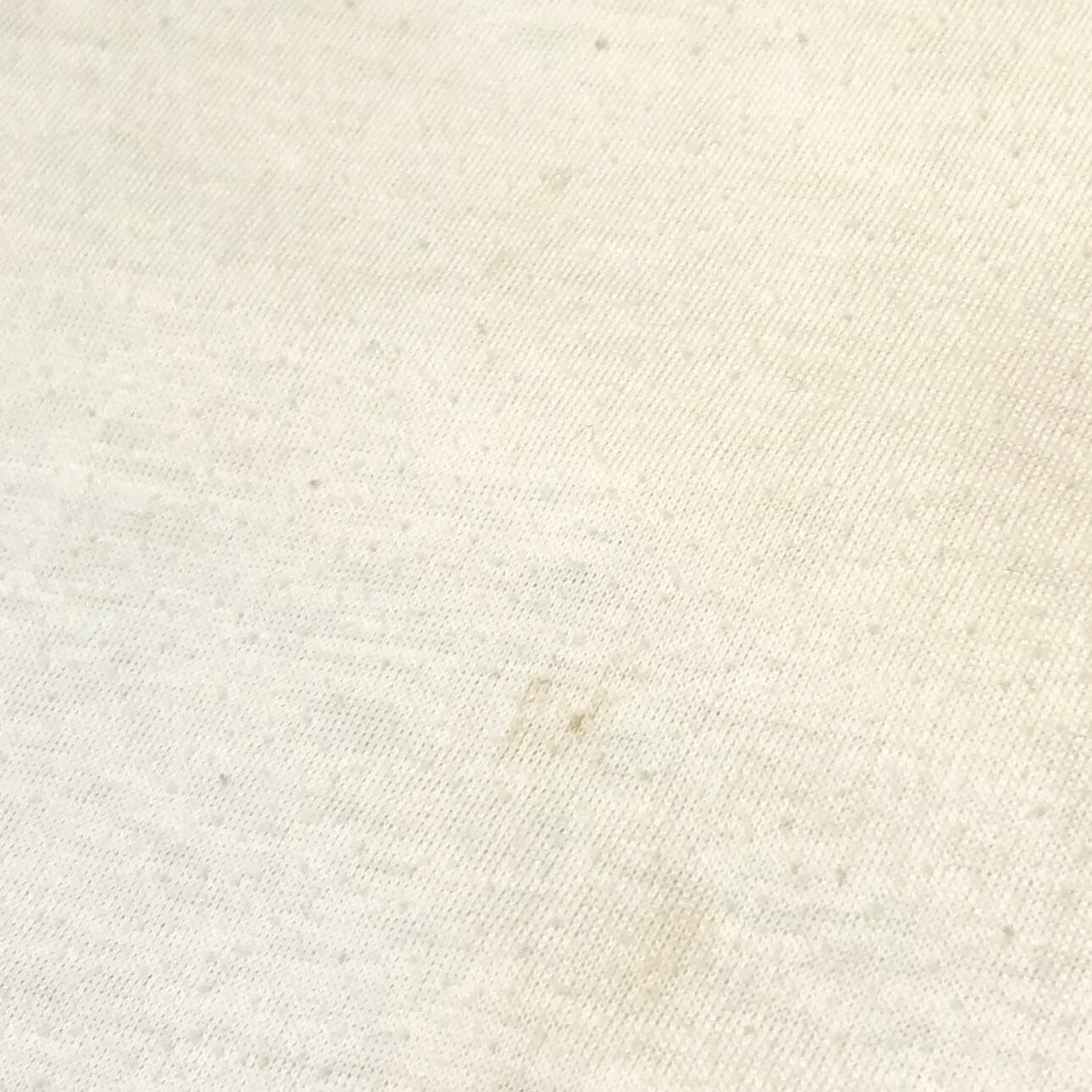 フロントに線で書いたようなシミ、バックにはうっすらとしたシミが見受けられますが、いずれもあまり目立ちません。