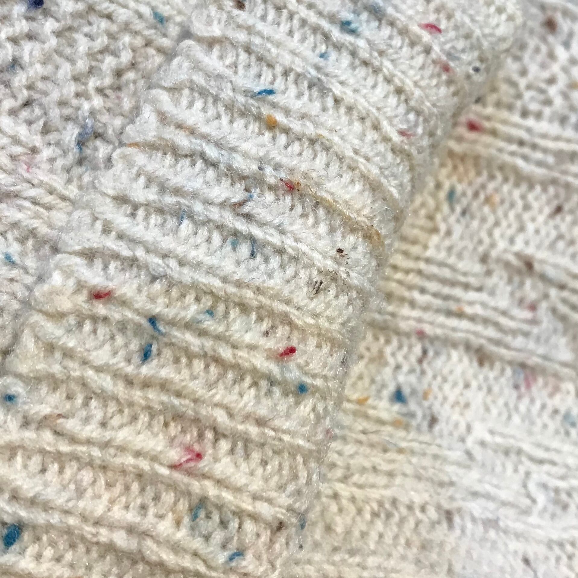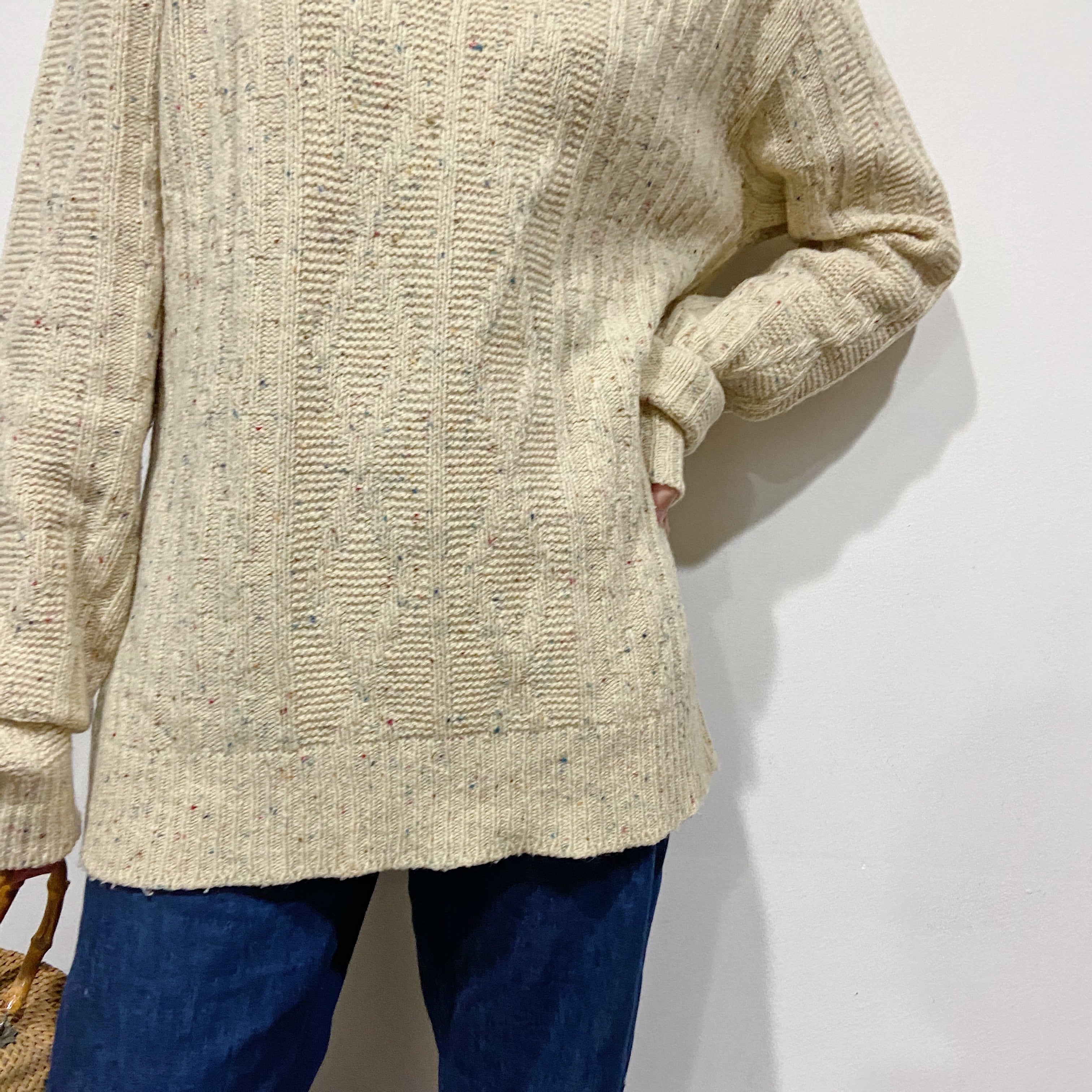 フィッシャーマンセーターよりも肉厚ではないため、アウターなどにも困らずコーディネートができますよ。