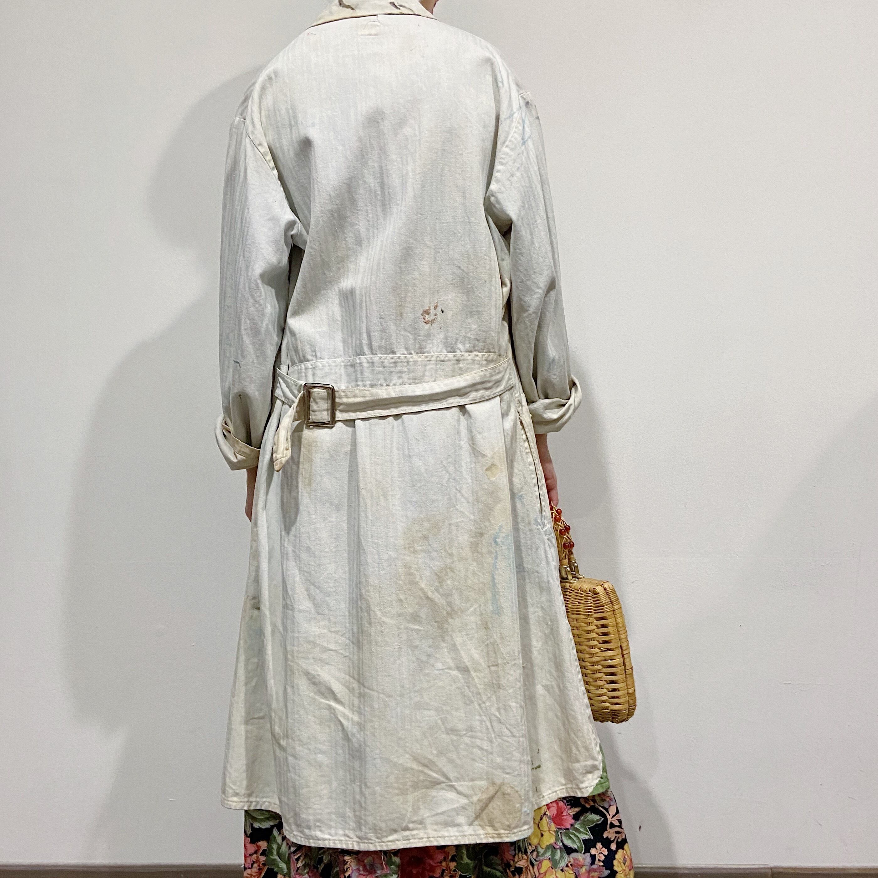 ヴィンテージムードたっぷりのヘリンボーン地がポイントのショップコートです。