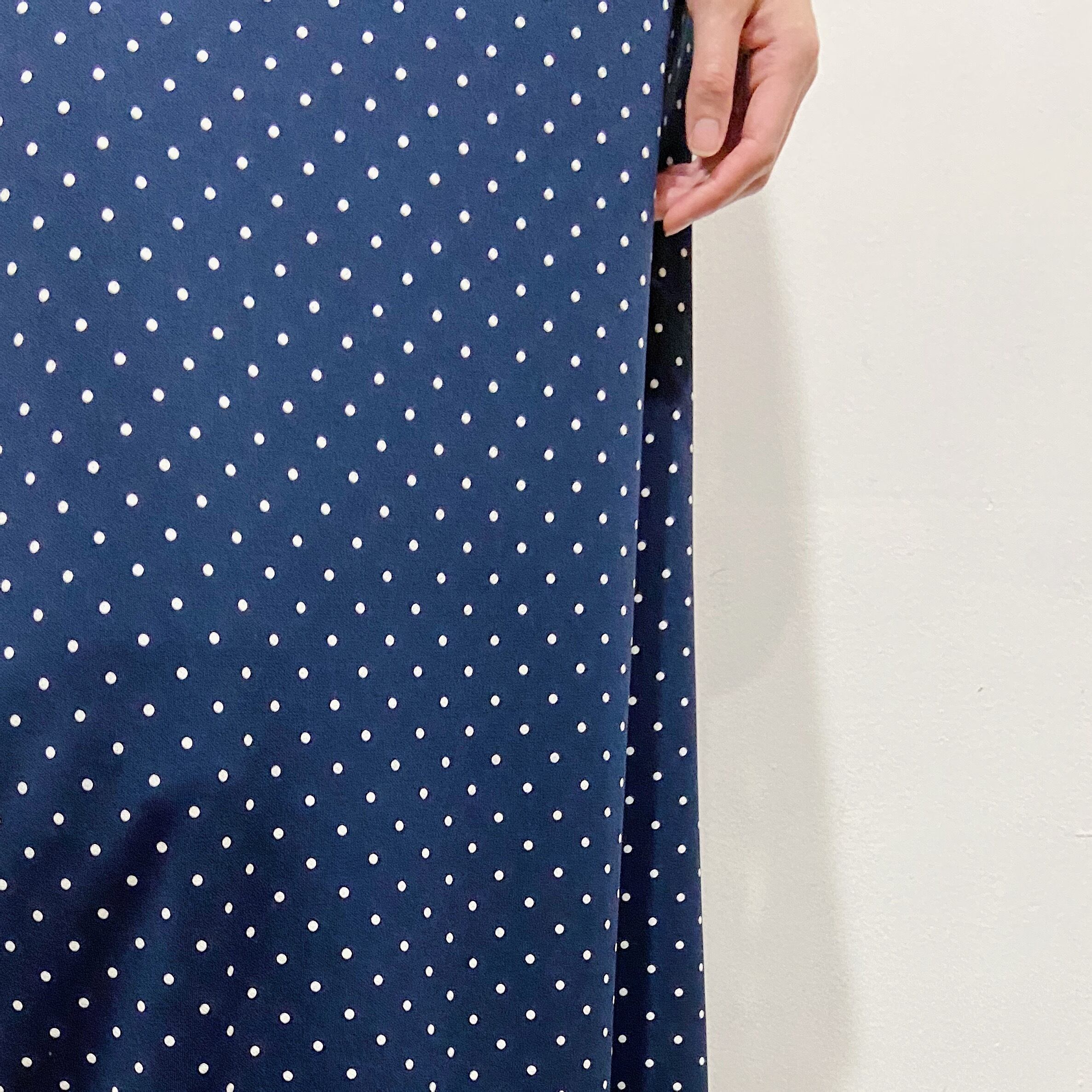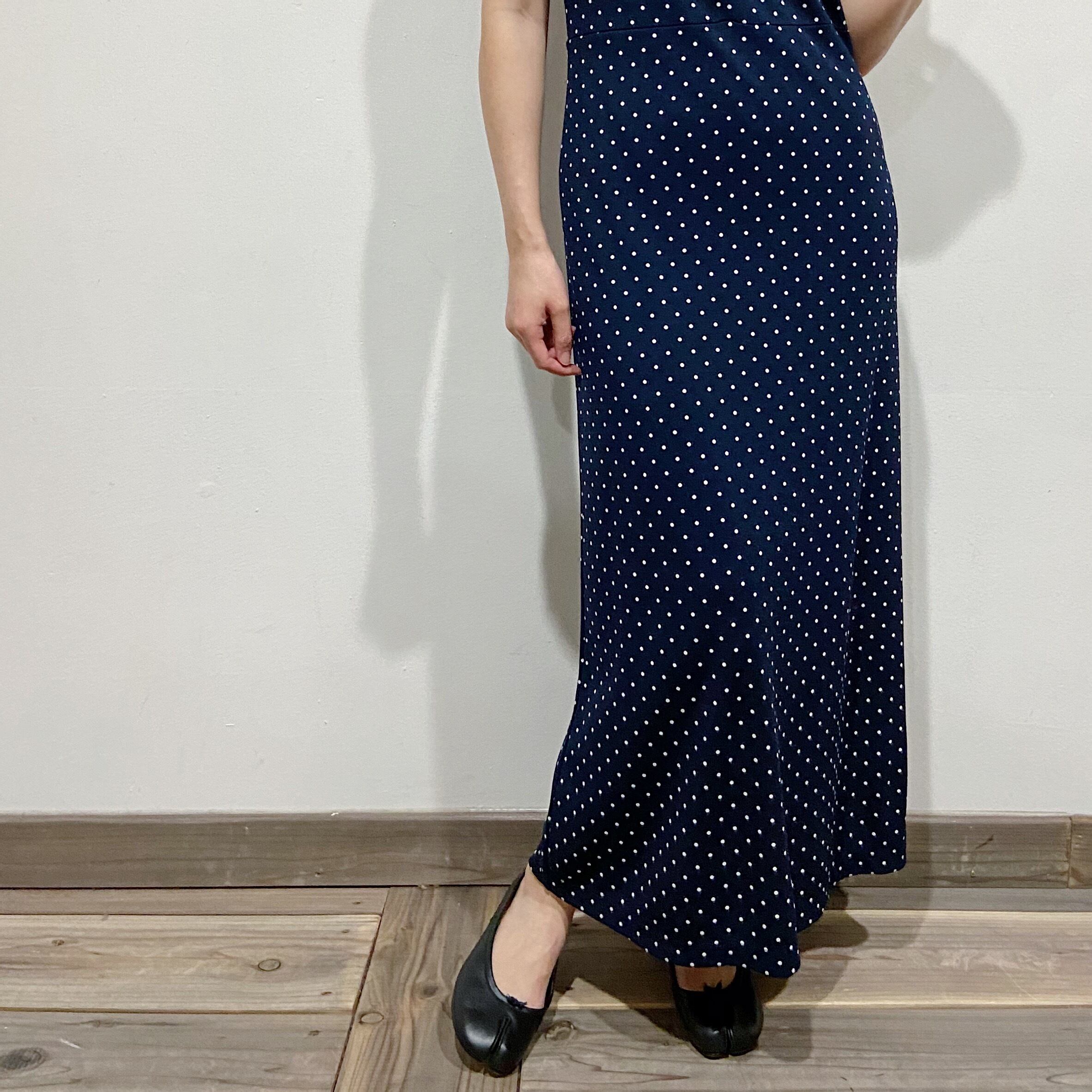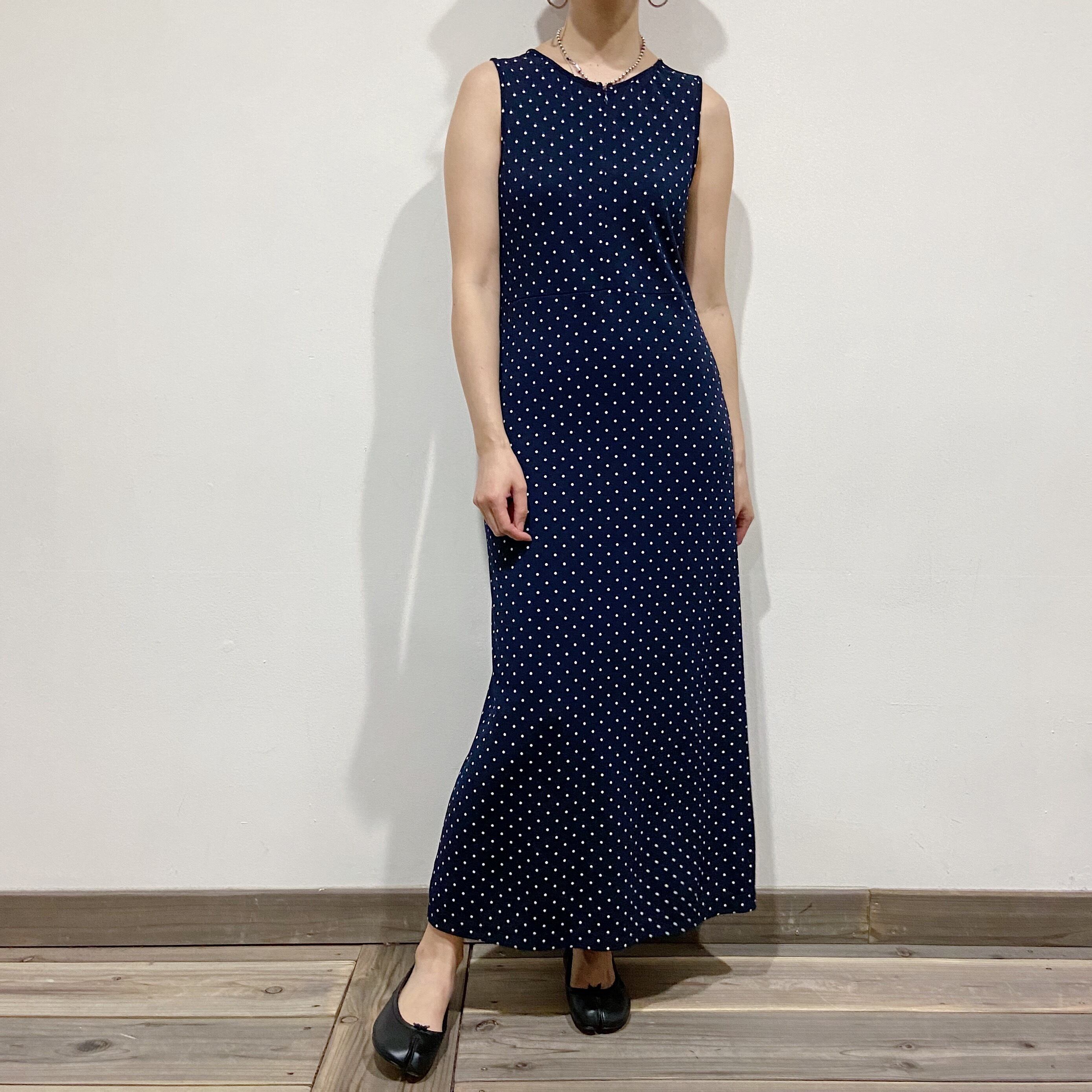 navy pin-dot sleeveless long dress