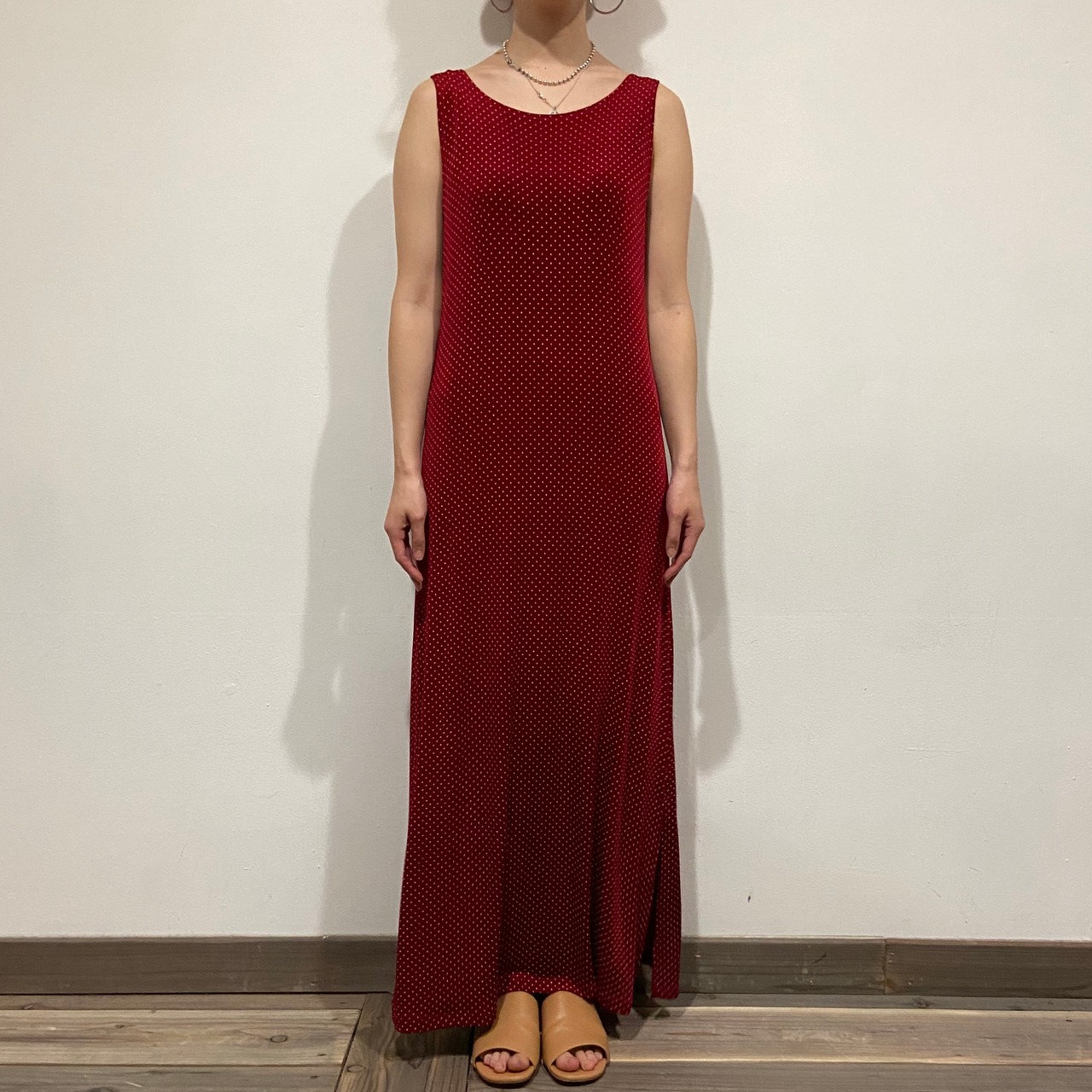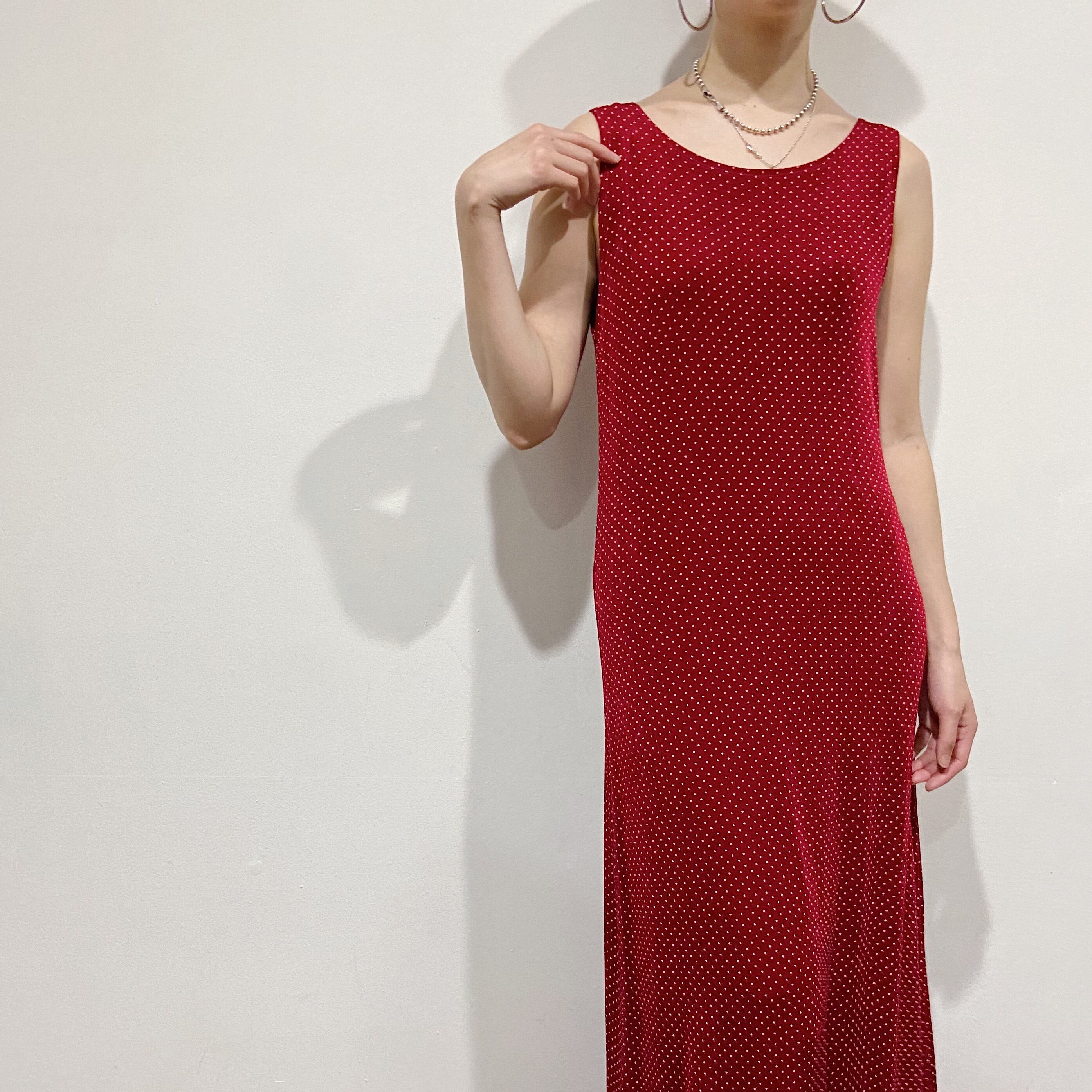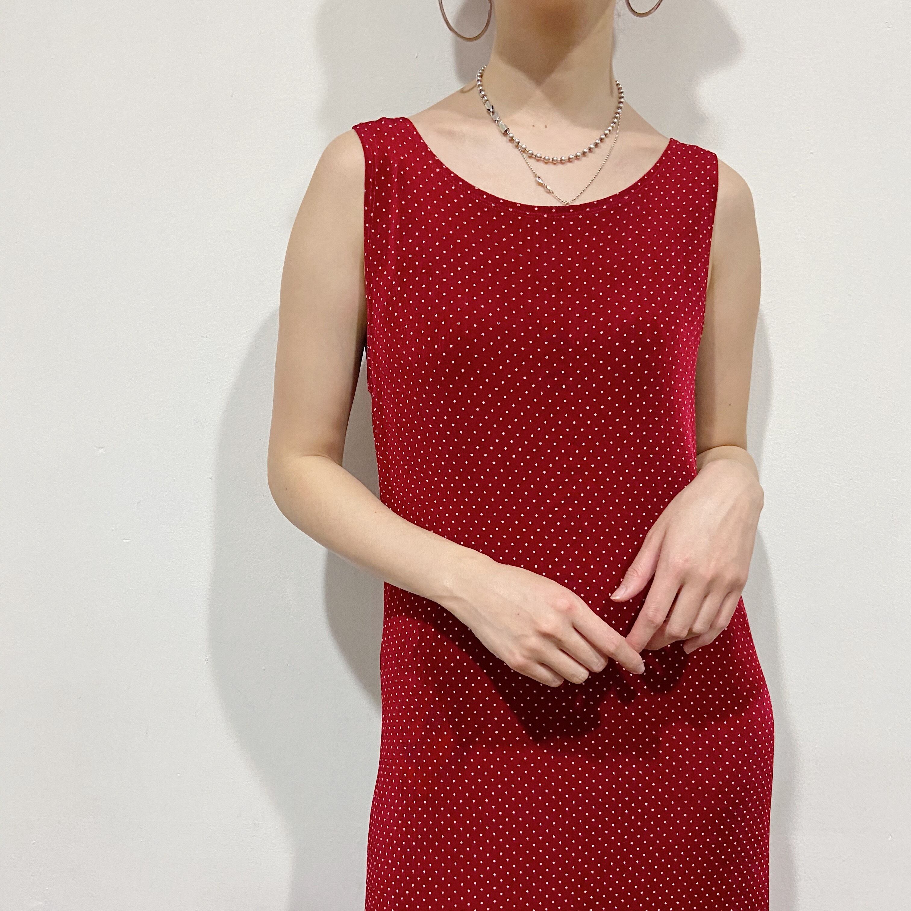 Iラインのシルエットが大人可愛いピンドットのワンピース。