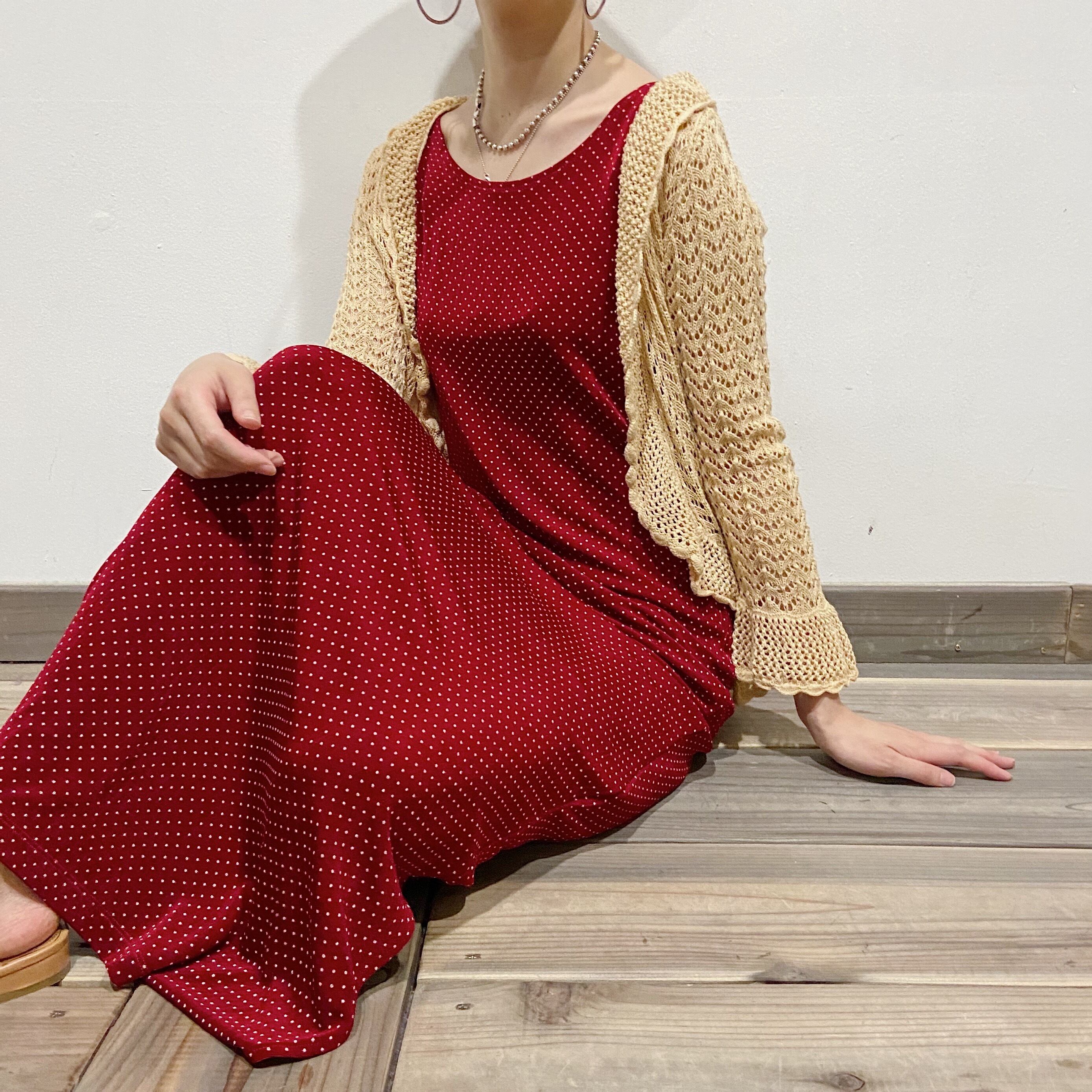 深い赤に白いドットが、なんだかモードな雰囲気をかもしだしています。