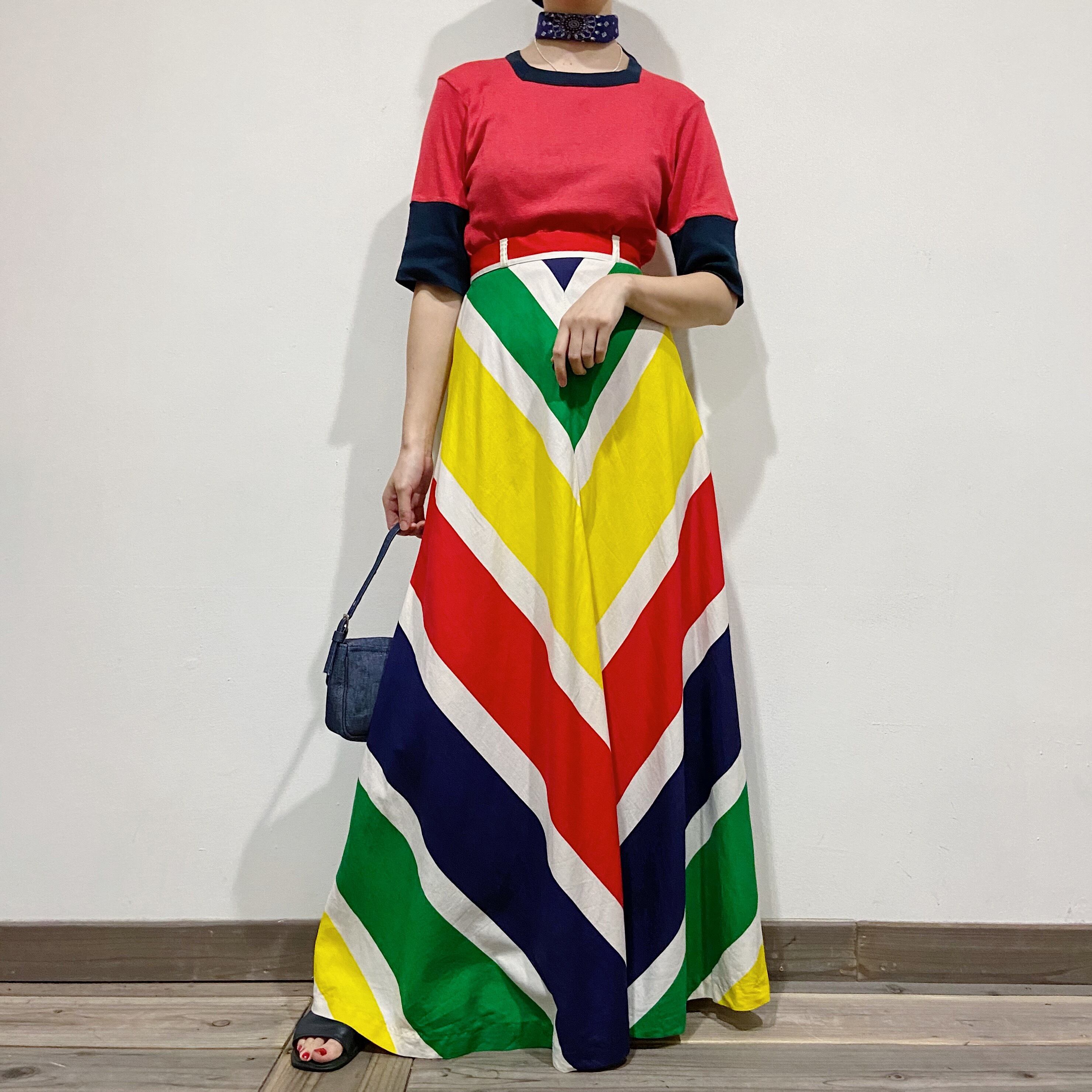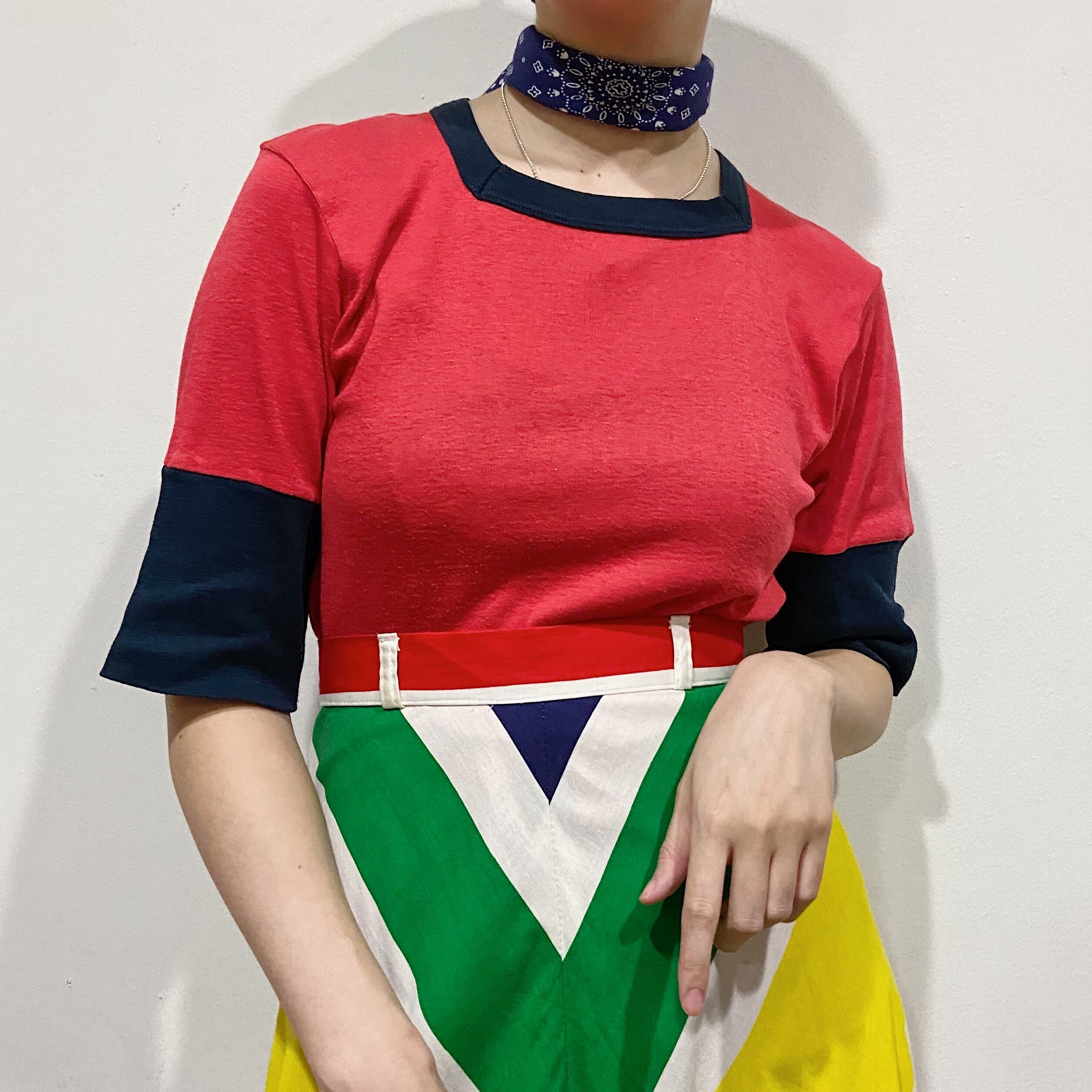 赤とネイビーのバイカラーが可愛い70年代のTシャツ。