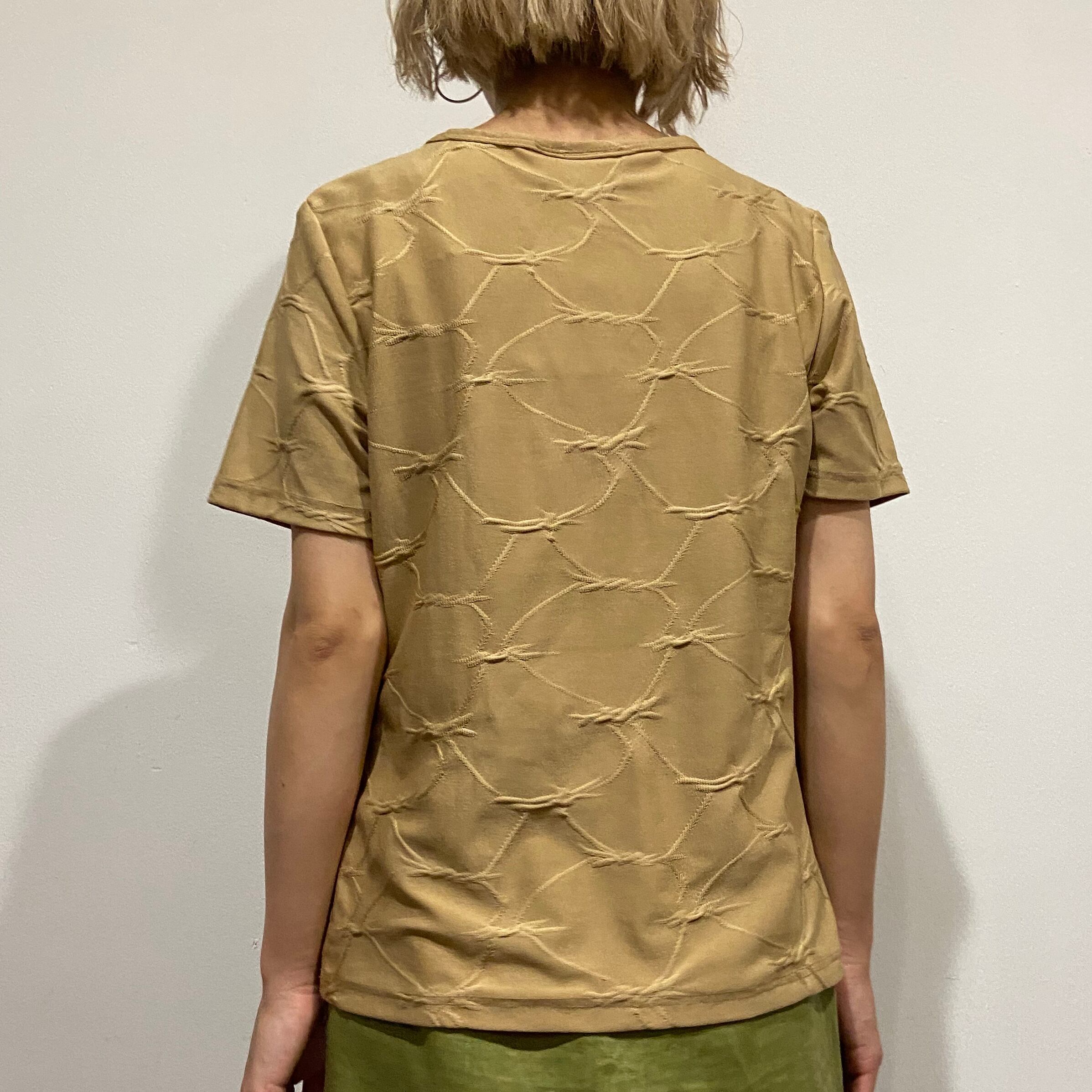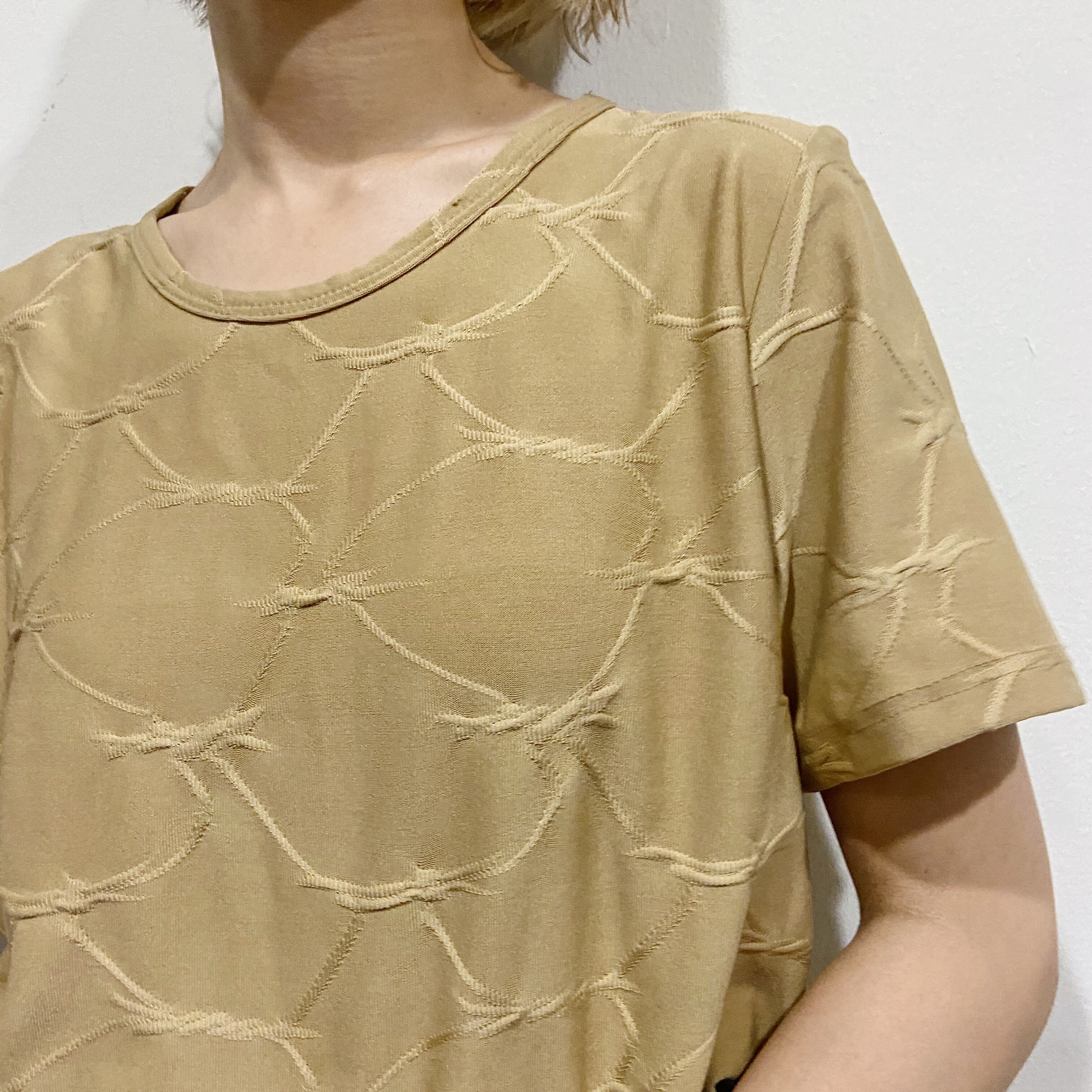 ベージュカラーで合わせやすそうなデザイントップスです。